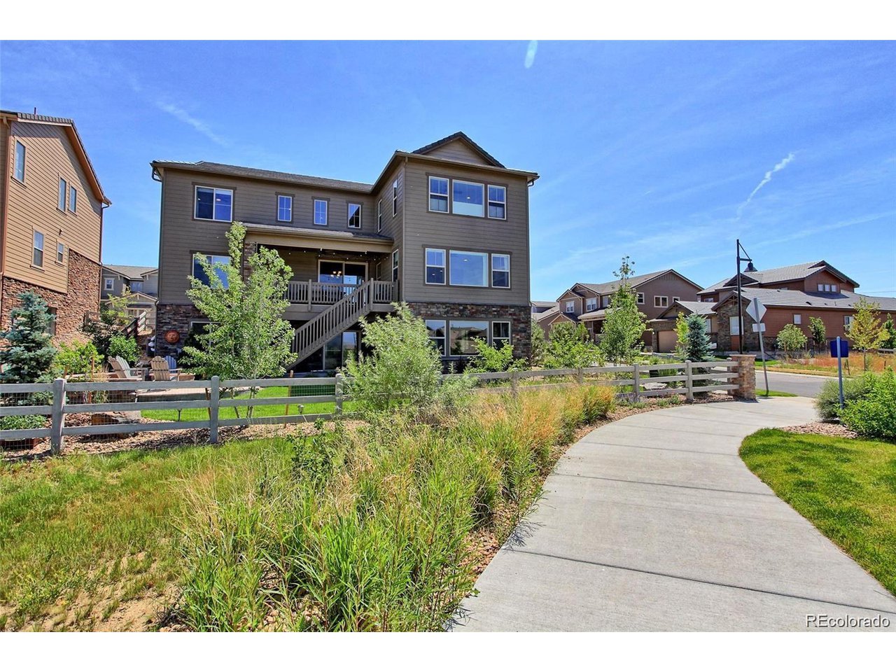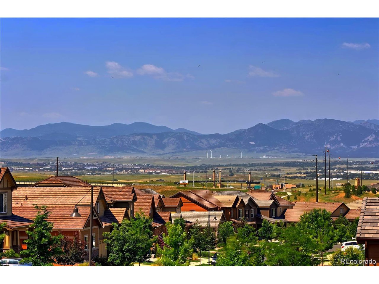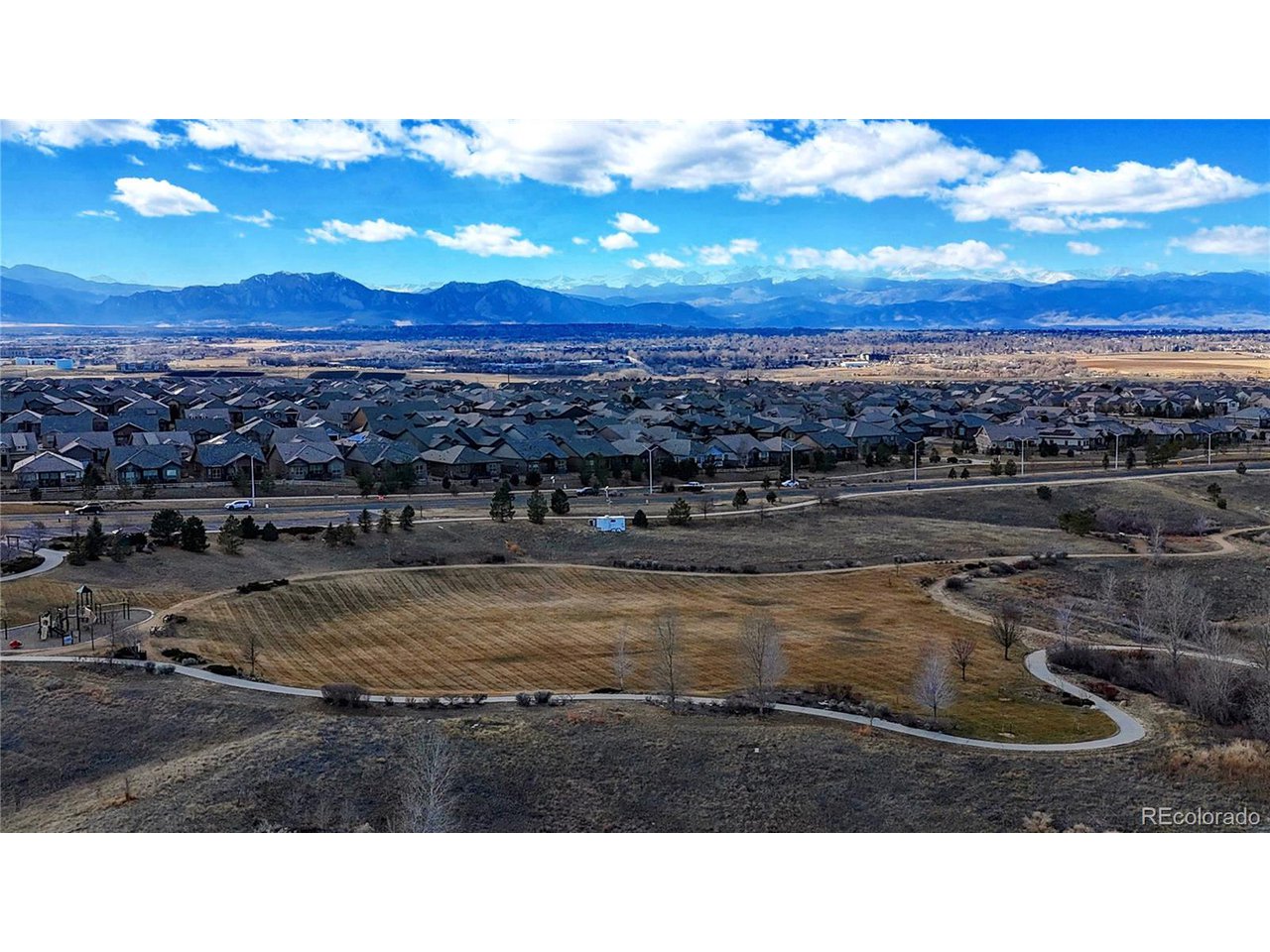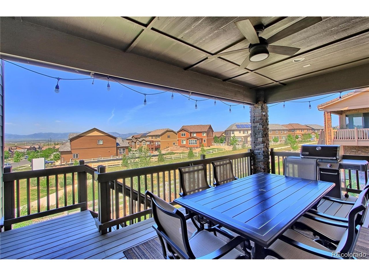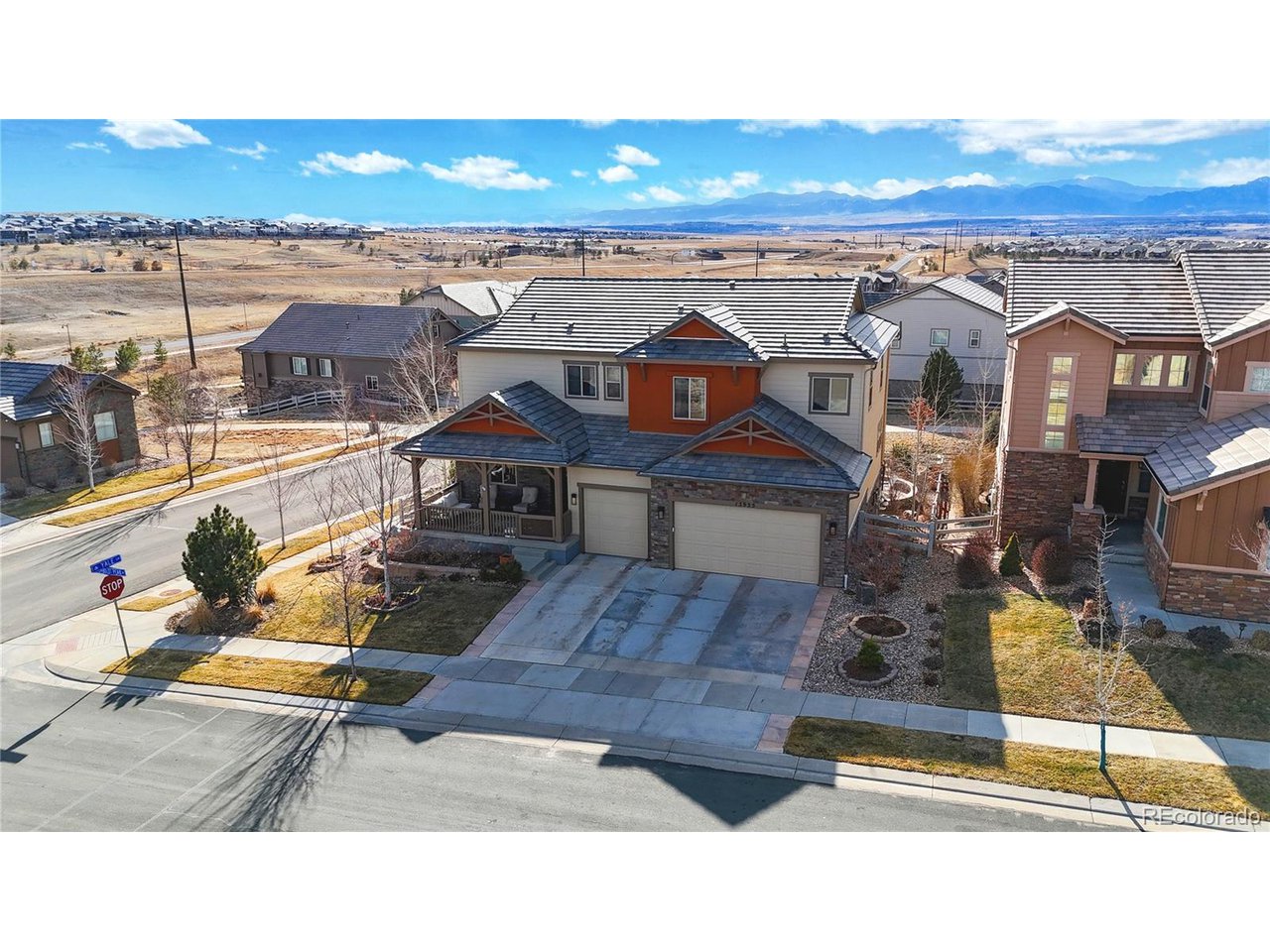 Welcome to 15955 Humboldt Peak Dr, a stunning corner lot home in Broomfield, offering breathtaking mountain views and mature landscaping. This meticulously crafted home combines style and functionality with a thoughtfully designed layout, perfect for entertaining. The gourmet kitchen features slab granite countertops, subway tile backsplash, KitchenAid stainless steel appliances, and a large island with seating. Additional highlights include a walk-in pantry, a butler's pantry, and a cozy breakfast nook. A mudroom with custom-built-ins off the 3-car garage provides organization with a convenient drop zone. The main floor includes a study with barn doors and views. Cozy up in the family room with a Cosmo gas fireplace, great for relaxing or hosting guests. The formal dining room and a keeping room with soaring ceilings offer ample space for gatherings, while the keeping room flows into a covered deck with mountain views, perfect for indoor/outdoor entertaining. A built-in desk with shiplap accents adds charm and functionality. Upstairs, the primary suite boasts a gridded ceiling, mountain views, and a spa-like 4-piece en-suite bath with dual vanities, large shower, and custom his-and-her walk-in closets. A guest suite with a shiplap accent wall and private en-suite bath, plus a loft, laundry room, two additional bedrooms, and another full bathroom complete the upper level. The finished walk-out basement is an entertainer's dream, with a wet bar featuring a beverage fridge, a flex space with views, a gaming area, built-in storage, a bedroom, and a 3/4 bath. The large backyard backs to a walking trail and offers a covered patio with sunshades, hot tub, gas fire pit, and gas grill. A custom gate on both the front and back porches adds convenience. Fresh exterior paint was applied in 2024! Community amenities include parks, walking trails, and a pool/clubhouse. Located with easy access to Boulder, DIA, and Denver, this home is the perfect blend of luxury and convenience.