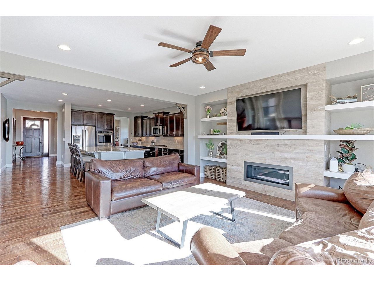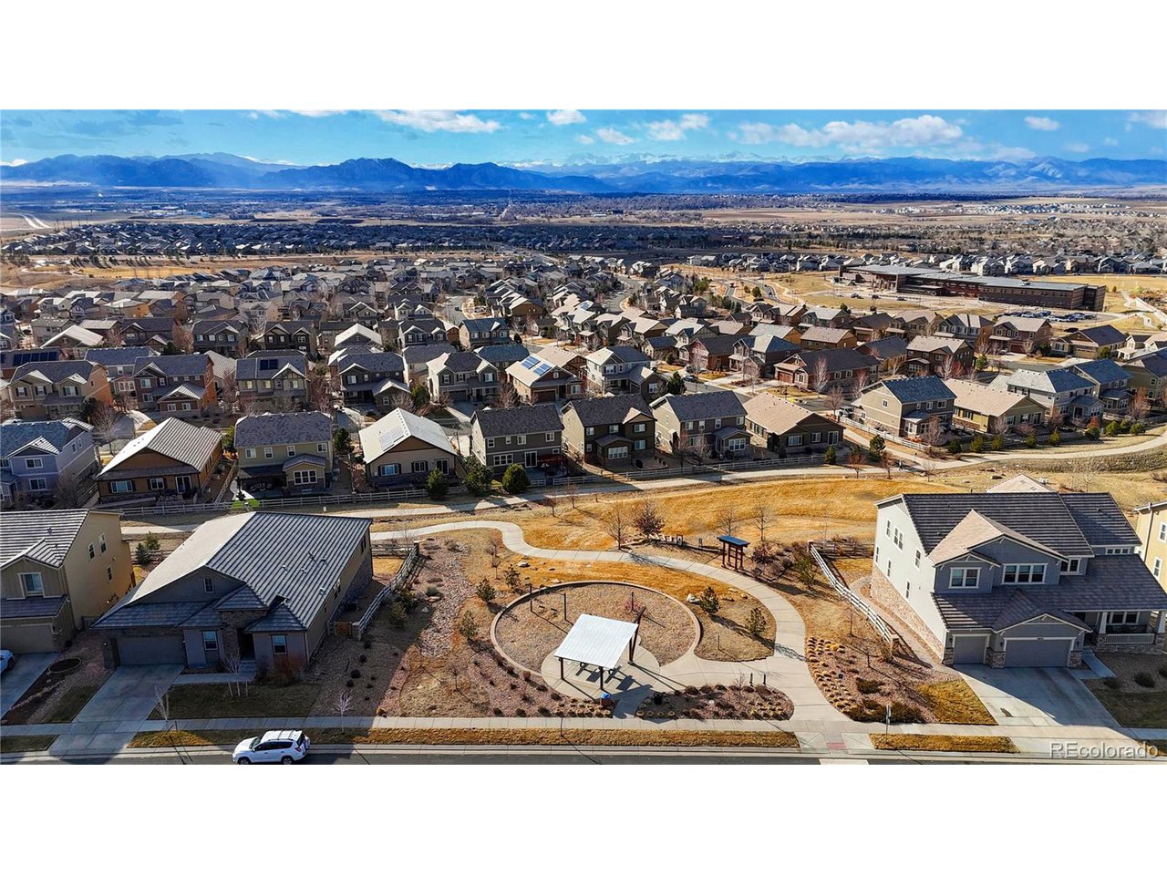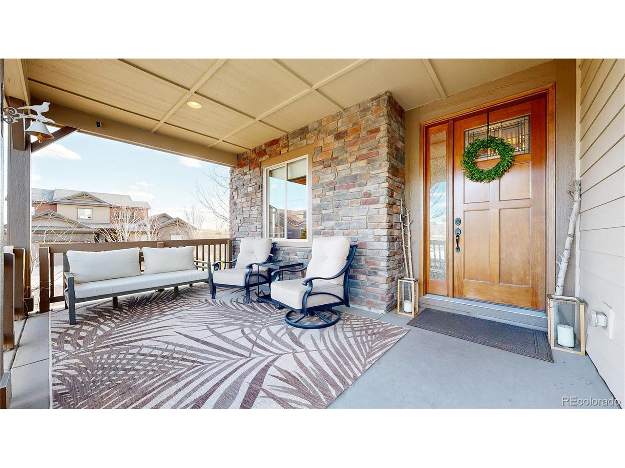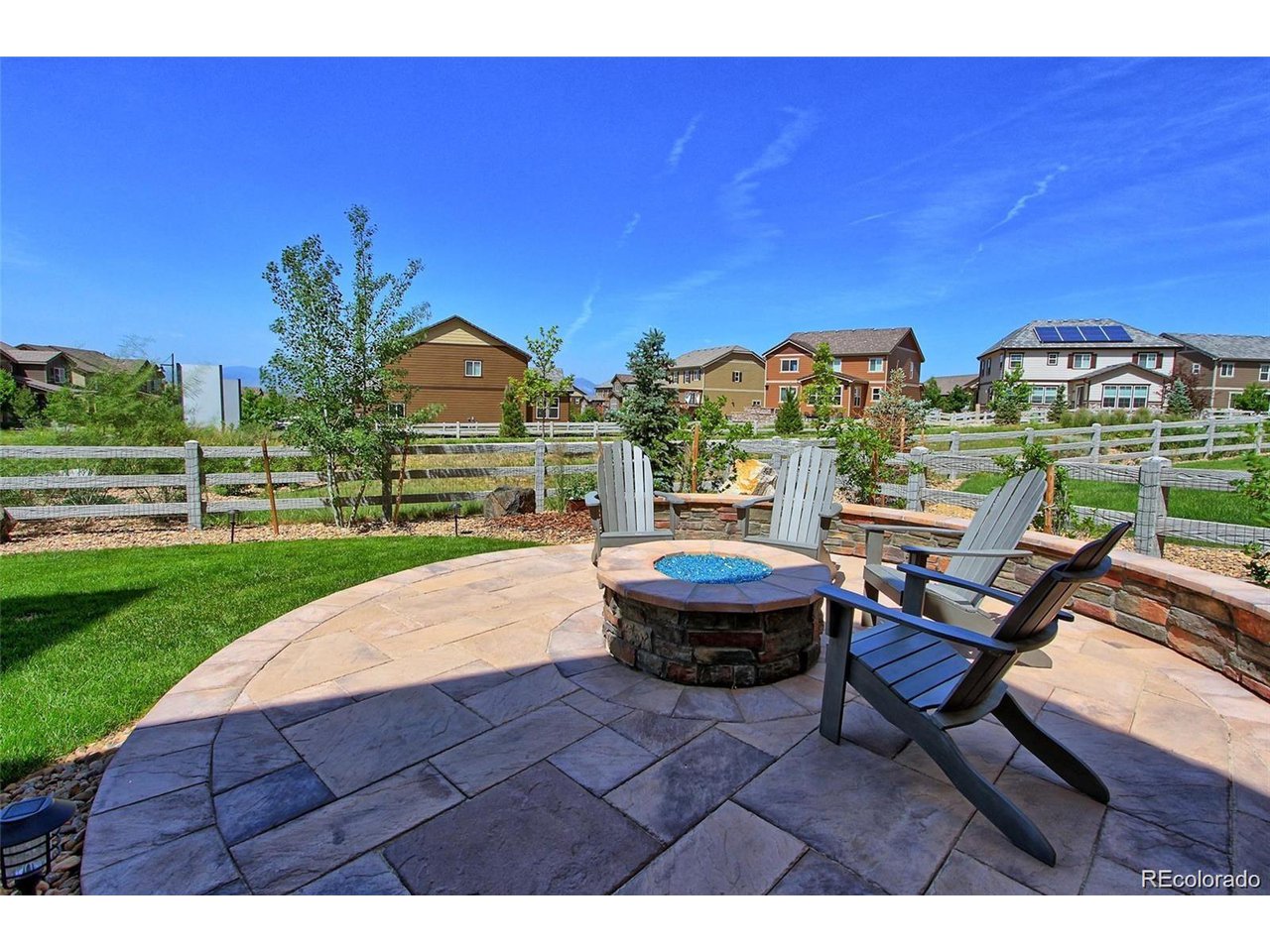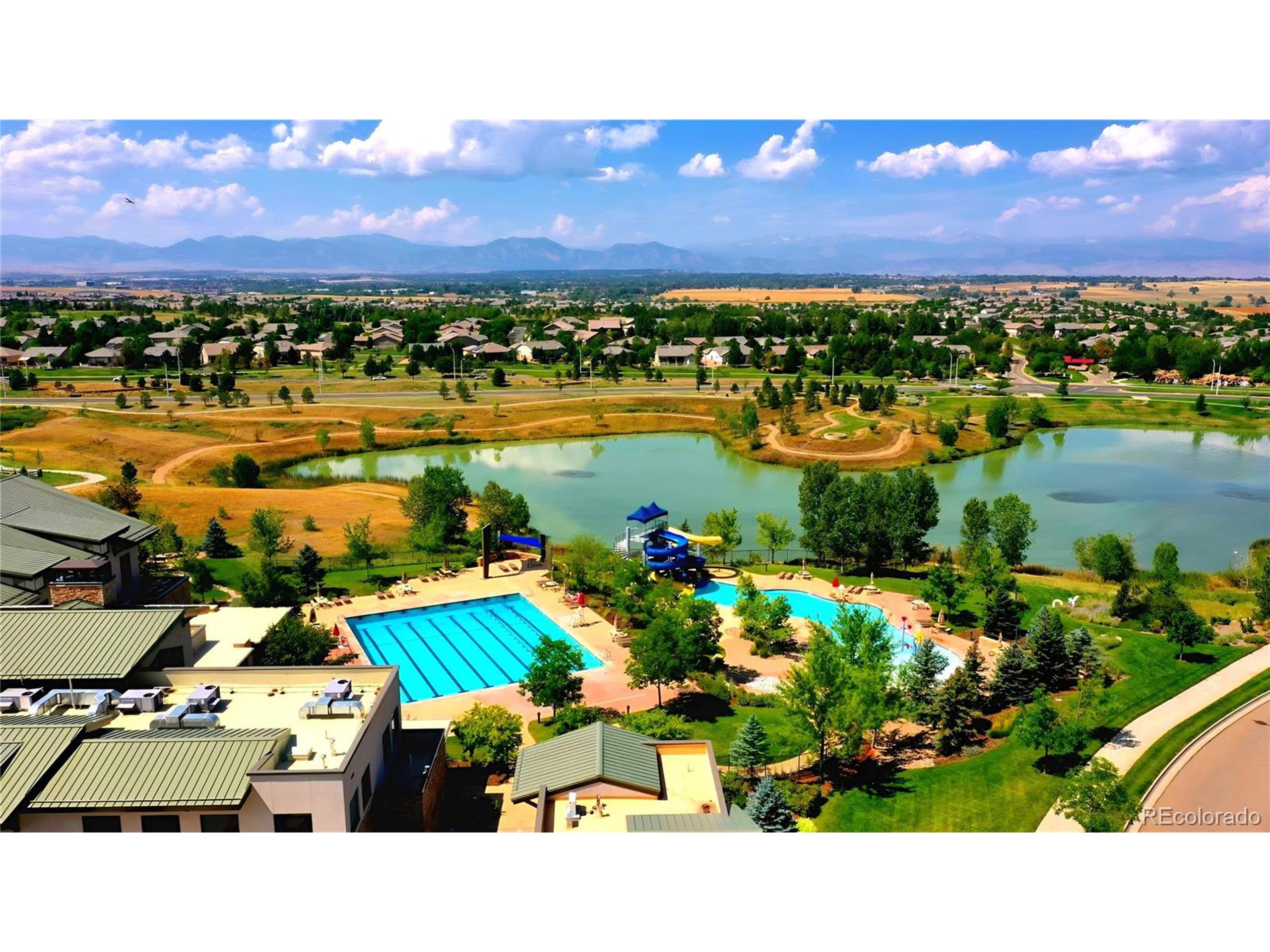 Welcome to 15955 Humboldt Peak Dr, a stunning corner lot home in Broomfield, offering breathtaking mountain views and mature landscaping. This meticulously crafted home combines style and functionality with a thoughtfully designed layout, perfect for entertaining. The gourmet kitchen features slab granite countertops, subway tile backsplash, KitchenAid stainless steel appliances, and a large island with seating. Additional highlights include a walk-in pantry, a butler's pantry, and a cozy breakfast nook. A mudroom with custom-built-ins off the 3-car garage provides organization with a convenient drop zone. The main floor includes a study with barn doors and views. Cozy up in the family room with a Cosmo gas fireplace, great for relaxing or hosting guests. The formal dining room and a keeping room with soaring ceilings offer ample space for gatherings, while the keeping room flows into a covered deck with mountain views, perfect for indoor/outdoor entertaining. A built-in desk with shiplap accents adds charm and functionality. Upstairs, the primary suite boasts a gridded ceiling, mountain views, and a spa-like 4-piece en-suite bath with dual vanities, large shower, and custom his-and-her walk-in closets. A guest suite with a shiplap accent wall and private en-suite bath, plus a loft, laundry room, two additional bedrooms, and another full bathroom complete the upper level. The finished walk-out basement is an entertainer's dream, with a wet bar featuring a beverage fridge, a flex space with views, a gaming area, built-in storage, a bedroom, and a 3/4 bath. The large backyard backs to a walking trail and offers a covered patio with sunshades, hot tub, gas fire pit, and gas grill. A custom gate on both the front and back porches adds convenience. Fresh exterior paint was applied in 2024! Community amenities include parks, walking trails, and a pool/clubhouse. Located with easy access to Boulder, DIA, and Denver, this home is the perfect blend of luxury and convenience.