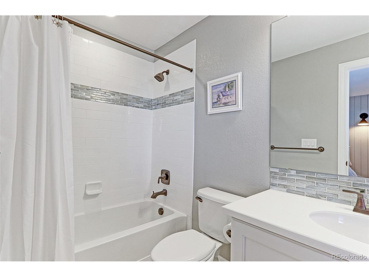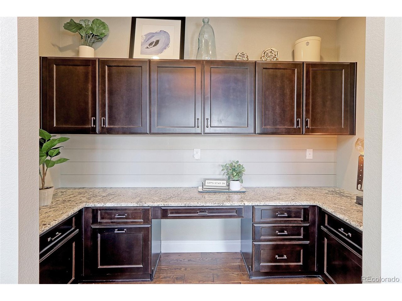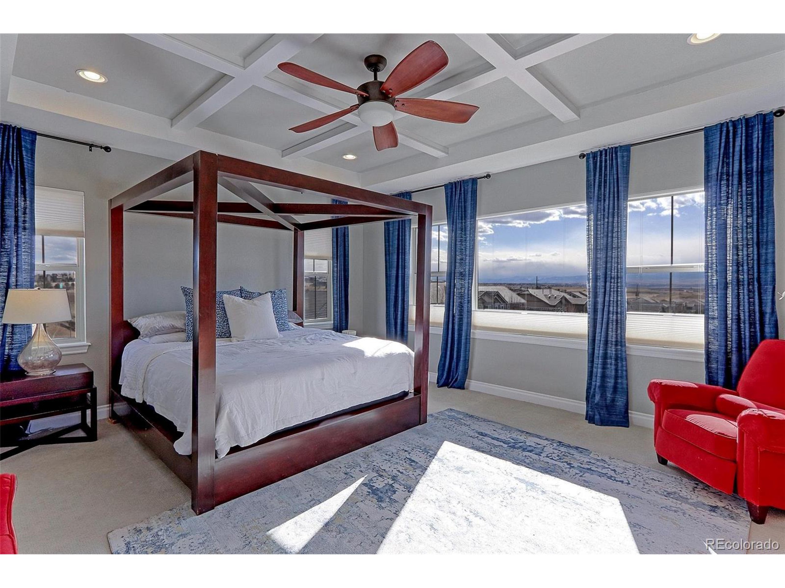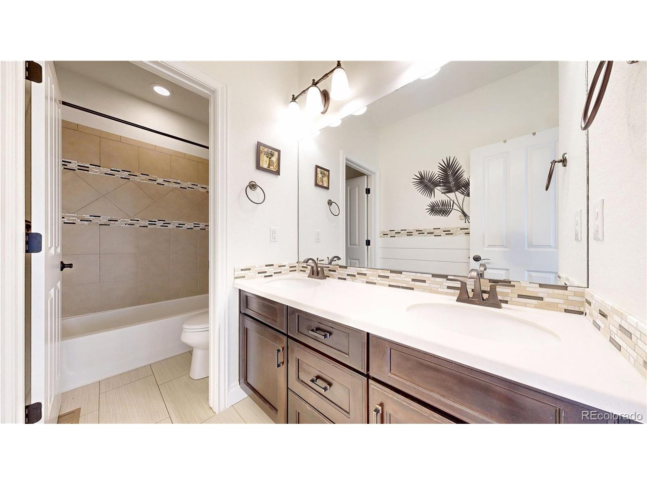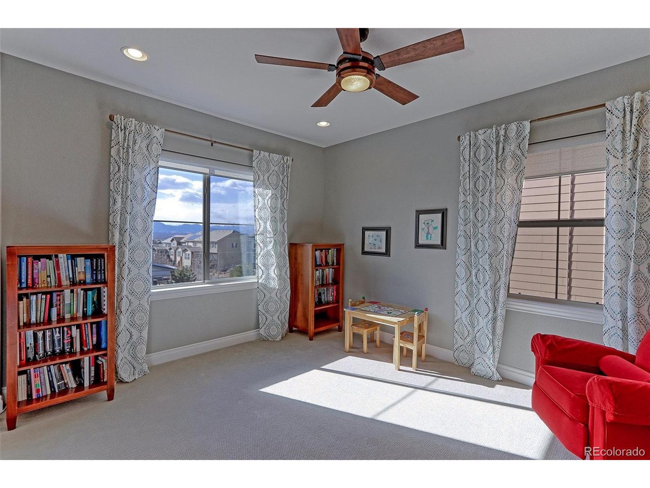 Welcome to 15955 Humboldt Peak Dr, a stunning corner lot home in Broomfield, offering breathtaking mountain views and mature landscaping. This meticulously crafted home combines style and functionality with a thoughtfully designed layout, perfect for entertaining. The gourmet kitchen features slab granite countertops, subway tile backsplash, KitchenAid stainless steel appliances, and a large island with seating. Additional highlights include a walk-in pantry, a butler's pantry, and a cozy breakfast nook. A mudroom with custom-built-ins off the 3-car garage provides organization with a convenient drop zone. The main floor includes a study with barn doors and views. Cozy up in the family room with a Cosmo gas fireplace, great for relaxing or hosting guests. The formal dining room and a keeping room with soaring ceilings offer ample space for gatherings, while the keeping room flows into a covered deck with mountain views, perfect for indoor/outdoor entertaining. A built-in desk with shiplap accents adds charm and functionality. Upstairs, the primary suite boasts a gridded ceiling, mountain views, and a spa-like 4-piece en-suite bath with dual vanities, large shower, and custom his-and-her walk-in closets. A guest suite with a shiplap accent wall and private en-suite bath, plus a loft, laundry room, two additional bedrooms, and another full bathroom complete the upper level. The finished walk-out basement is an entertainer's dream, with a wet bar featuring a beverage fridge, a flex space with views, a gaming area, built-in storage, a bedroom, and a 3/4 bath. The large backyard backs to a walking trail and offers a covered patio with sunshades, hot tub, gas fire pit, and gas grill. A custom gate on both the front and back porches adds convenience. Fresh exterior paint was applied in 2024! Community amenities include parks, walking trails, and a pool/clubhouse. Located with easy access to Boulder, DIA, and Denver, this home is the perfect blend of luxury and convenience.