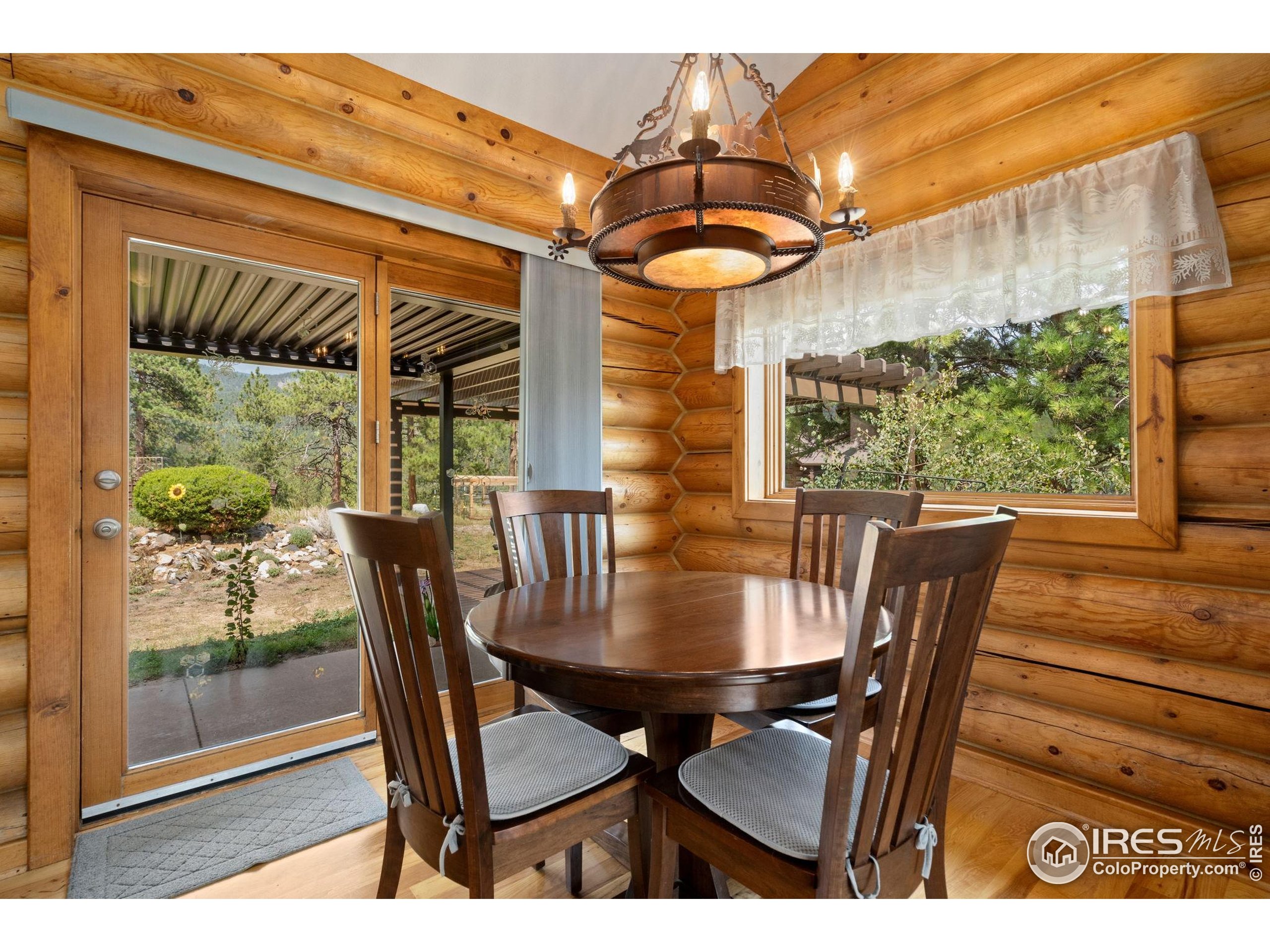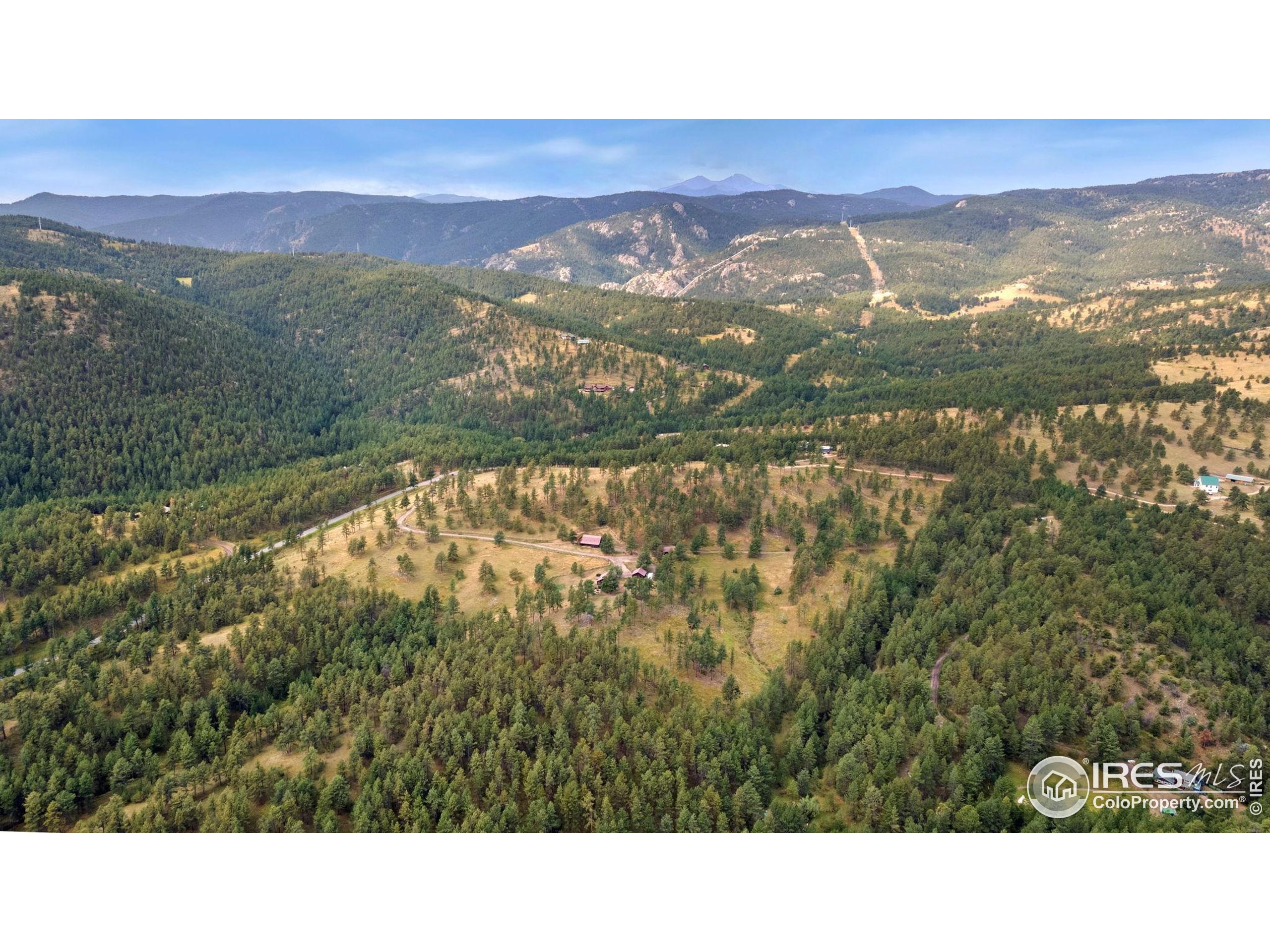 Welcome to 16235 County Road 18E - a truly unbelievable 31-acre mountain horse property known as "Back Home Acres." Just 20 minutes from Mariana Butte Golf Course and only 5 minutes from Pinewood Reservoir, this private retreat offers unparalleled access to wakeless water sports, fishing, hiking, and camping, while providing all the peace and seclusion of mountain living. Enter through the electronic gate to find three horse-safe, fully fenced pastures, a hay barn, and a horse barn with a beautifully finished 675 sq ft upstairs great room complete with a 3/4 bath-ideal for guests, a studio, or entertaining. The main log home features 3 bedrooms and 2 baths, a durable metal roof, and a walkout basement. Inside, you'll find a vaulted, open-concept kitchen and living area centered around a cozy stone fireplace, a sunlit primary suite with vaulted ceilings, and a spacious mudroom outfitted with a dog bath and exercise space. The walkout basement adds two additional bedrooms, another full bath, and a bright area perfect for a home office or family room. The property also includes a charming ~400 sq ft studio cabin with a partial kitchenette, a full bath, and a gas heat stove-making it ideal as guest quarters, a creative retreat, or a private home office. Additional amenities include a detached two-car garage and a large dog run currently housing beehives. Surrounded by gently rolling terrain, fire-mitigated trees, and sweeping views, the property is alive with abundant wildlife, birds, and native flora. Located near Ramsey-Shockey Open Space and thoughtfully maintained, this one-of-a-kind mountain estate offers both serenity and versatility-perfectly blending nature, comfort, and convenience.
