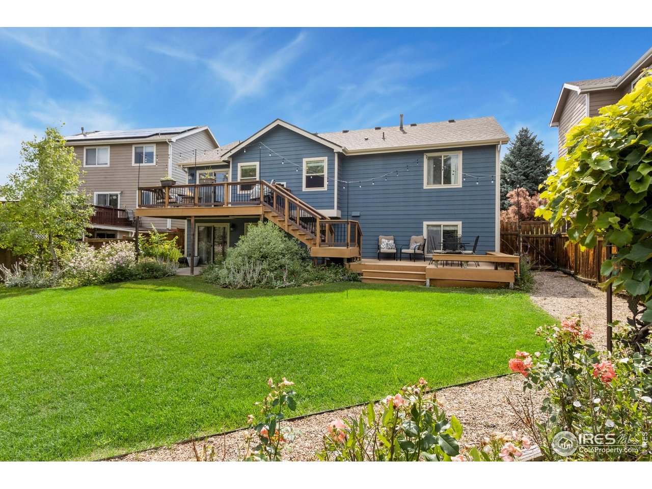 Welcome to 1786 Somerville Dr, a beautifully maintained ranch home with a walkout basement on a premium lot in one of Fort Collins' most desirable west-side neighborhoods. This is a rare opportunity to own a home that seamlessly blends comfort, style, and outdoor living-backing to a peaceful canal with no neighbors behind and featuring a huge backyard oasis with perennial flowers and a sprawling lawn, perfect for relaxing, entertaining, or play. Inside, you'll find a spacious main floor featuring a large living room with gleaming wood floors, an upgraded kitchen, and a dining area that flows beautifully for everyday living or hosting. The primary suite includes a private bath and a walk-in closet, while two additional bedrooms and an updated full bathroom complete the main level. Enjoy outdoor living from two expansive decks-one off the main floor and a lower deck with built-in seating-perfect for gatherings or quiet evenings outdoors. Downstairs, the walkout basement features brand-new carpet, a rec room that opens to the covered patio, a fourth bedroom, a study or non-conforming fifth bedroom, and a 3/4 bathroom-ideal for guests, remote work, or additional living space. With its standout lot, thoughtful updates, and versatile floor plan, this home is a truly special find in West Fort Collins.