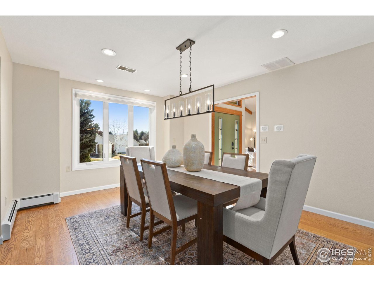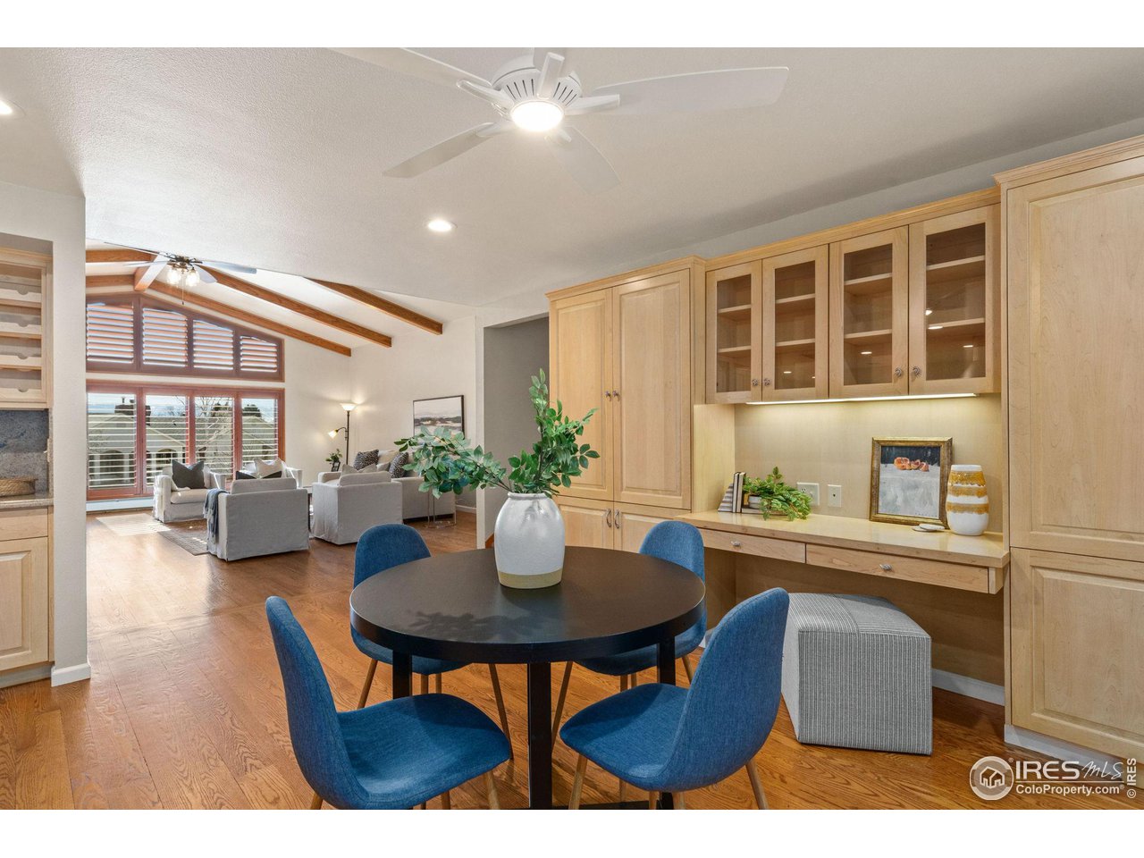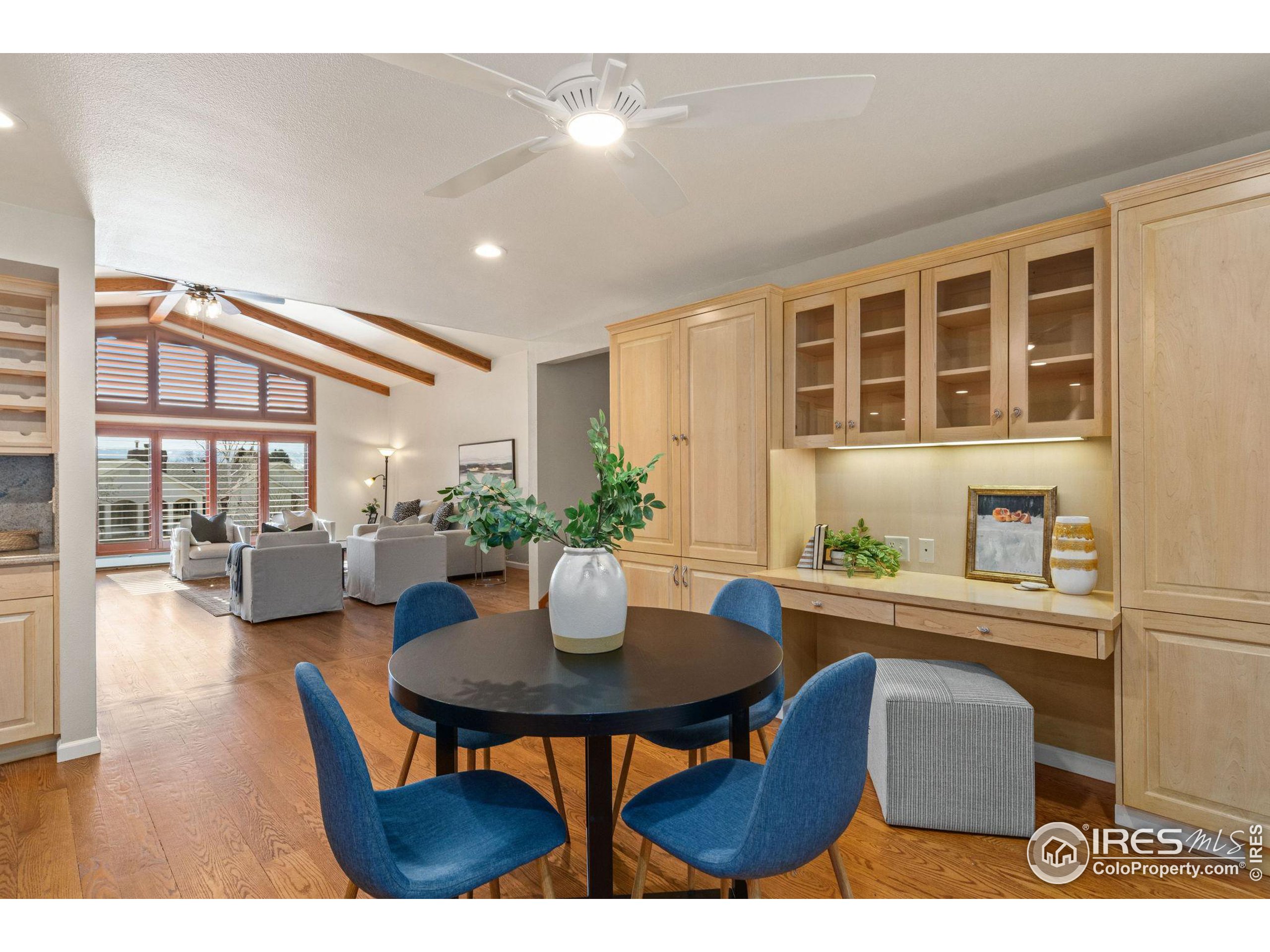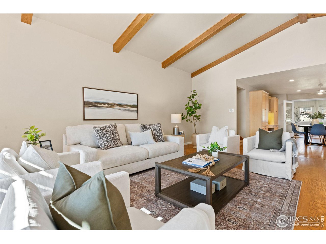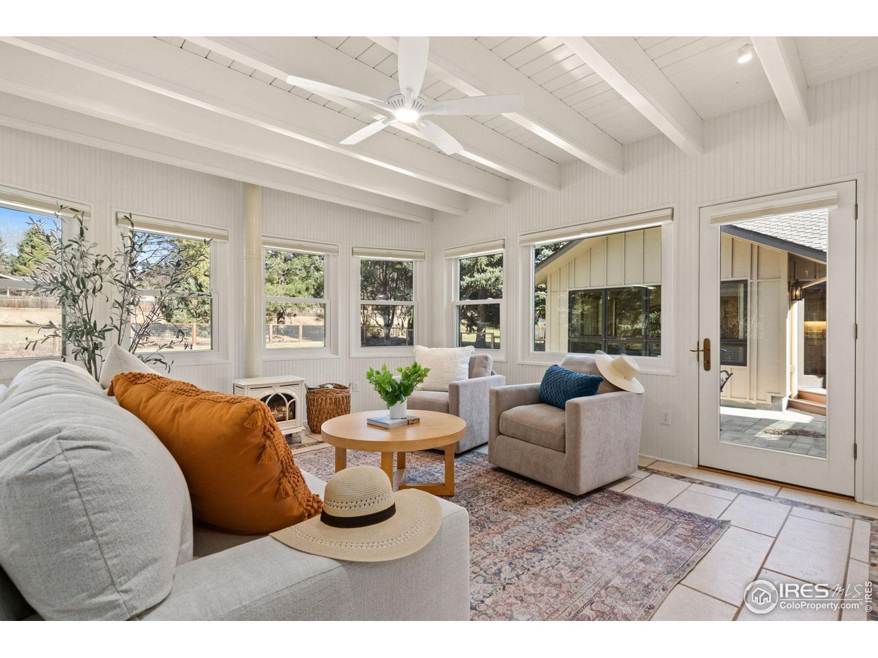 Beautifully updated & fabulously improved home in the heart of the desirable Linden Lake with views of Longs Peak, Horsetooth, and a little bit of the lake too! This charming home backs to green space and the canal and offers peaceful privacy for not only the primary residents but anyone that is fortunate enough to occupy the newly built connected apartment home w/private entrance for your family. From the moment you enter the circular drive & pass the courtyard you'll be welcomed into an open & inviting home featuring vaulted beamed ceilings, rich wood flrs, large windows to let you take in the views of the mountains and lake, and a private dining rm that makes entertaining a breeze. Huge kitchen complete w/an oversized island, professional appliances including a SubZero refrigerator, Wolf oven, Wolf microwave, Wolf warming drawer & Viking Cooktop. Endless cabinet space, wine storage, desk area, & large walk-in pantry. Adorable sunroom that you'll never want to leave complete w/gas stove & white paneled walls. The primary retreat offers a sitting area, fully remodeled spa bath complete w/4 shower heads, and a large private office or workout room. Rounding out the main floor you'll have direct access to the beautifully built ranch style apartment which shares a generous mud room & separate laundry area complete w/sink and storage. The apartment offers a separate parking area, radiant heat, efficient kitchen w/custom cabinetry, granite counters, wide plank wood floors, generous living room surrounded by windows and double doors to the patio. Finished garden level basement offers a rec room w/stone fireplace & wet bar, 2 spacious bdrms, a full bath w/double sinks, lg bonus room w/double doors and Murphy bed and 2-large storage rooms. Large yard w/new fence offers lush landscaping, mature trees, paver patio & composite deck, private hot tub area w/direct access into the primary suite, and a storage shed. Situated directly across from a neighborhood lake access point.