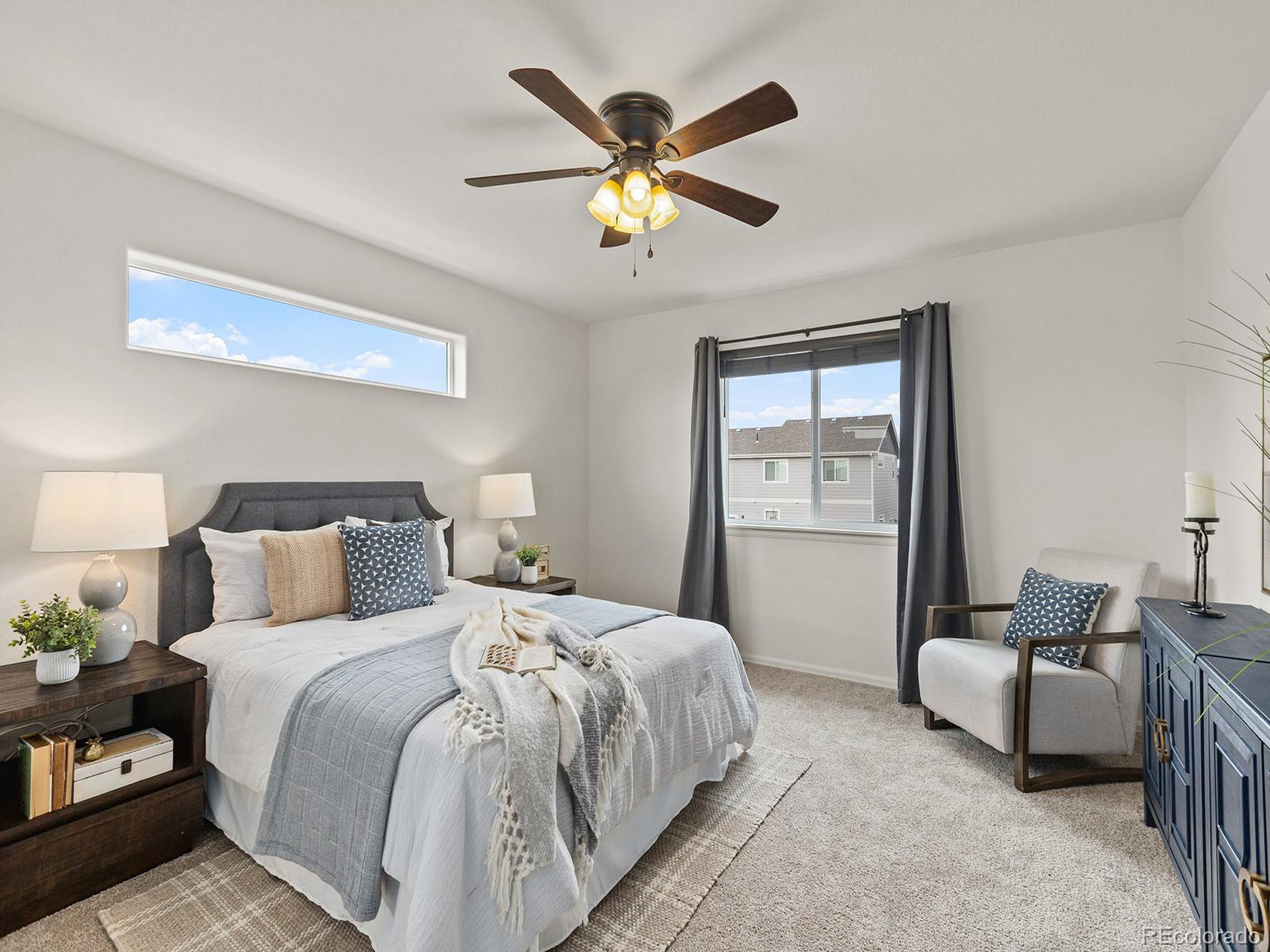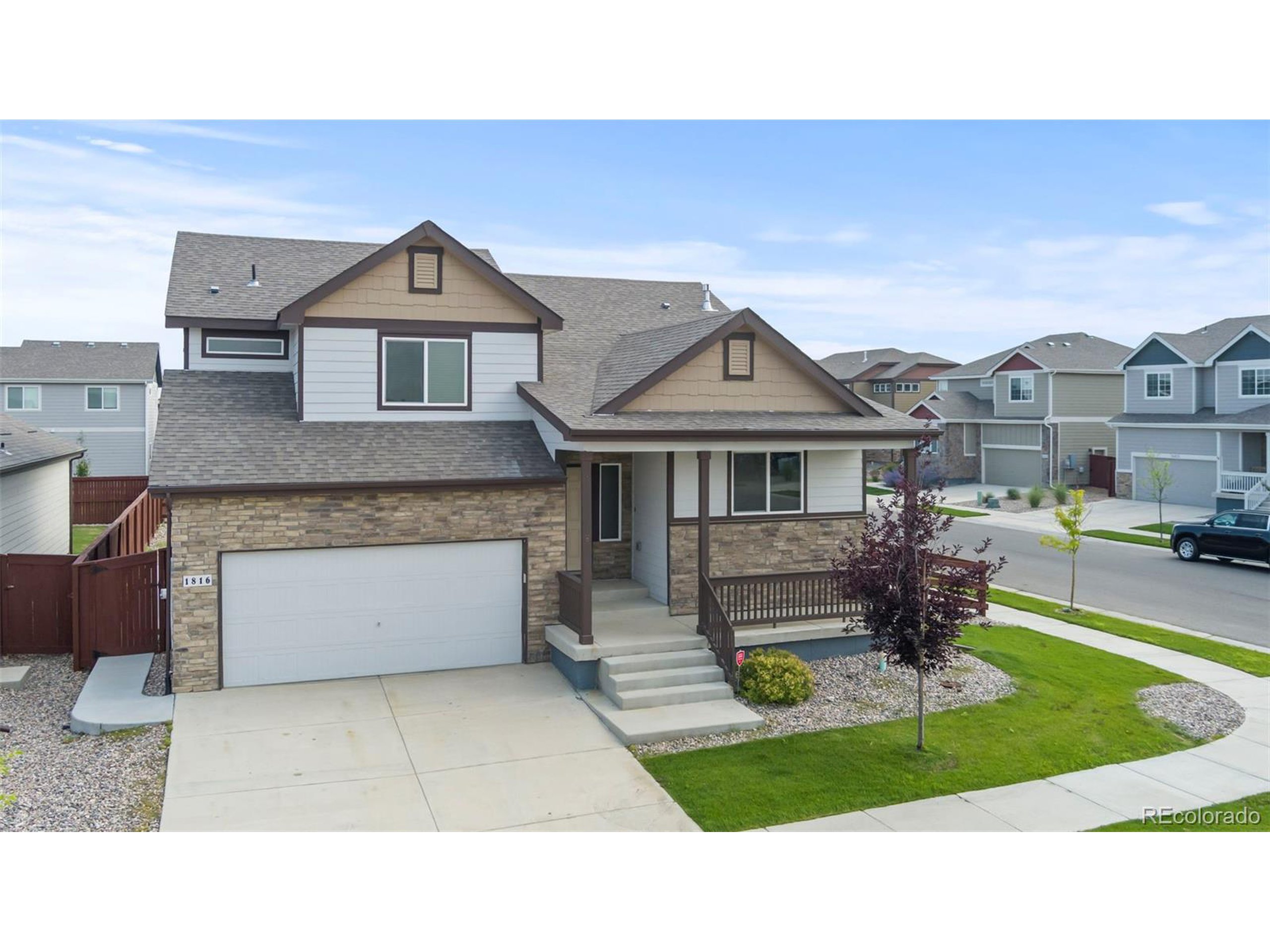 Don't miss this rare chance to own a home in the highly sought-after RainDance neighborhood in Windsor! This home is less than 3 years old and situated on an oversized corner lot. It features 4 bedrooms, 3 baths, and a 3-car garage, and is move-in ready. The home has brand new carpets and laminate floors throughout. All bedrooms, including the primary suite, are located upstairs, with a convenient main floor laundry room. The rear of the home has a 10'x10' concrete pad to enjoy the amazing location and beautiful mountain views!