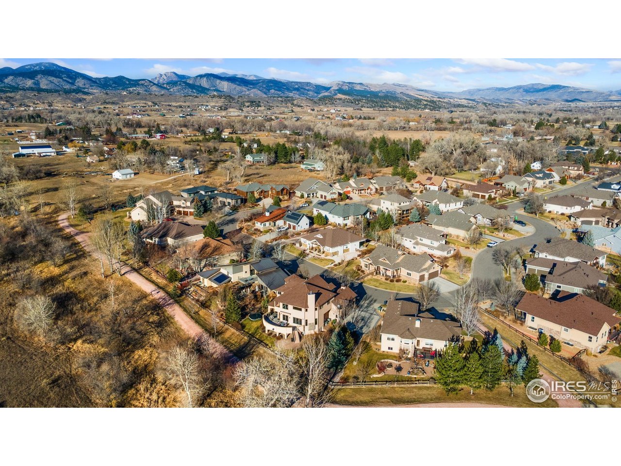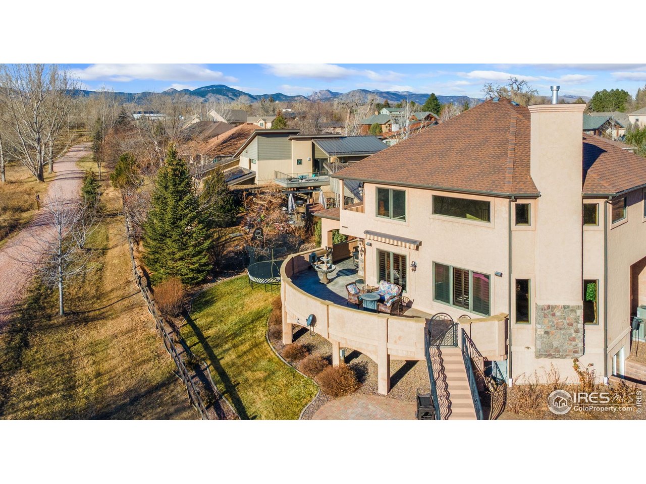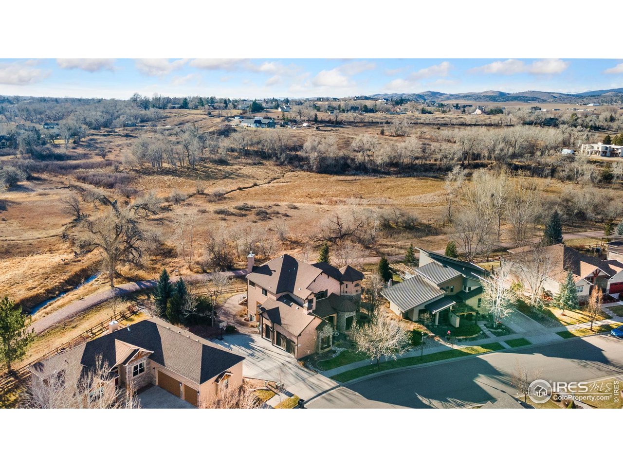 A rare offering in the secluded enclave of The Springs at Mariana, this exceptional property delivers true country living in the city. Situated on over a 1/4-acre lot, the home backs to wildlife-preserved trails and open space, with the rear deck overlooking a protected sanctuary that has hosted elk, wild turkeys, bald eagles, osprey, and deer. Just steps from Boedecker Reservoir, Mariana Butte Golf Course, and the Devil's Backbone trail system, this West Loveland location is unmatched. The HOA enhances the lifestyle with irrigated open space, a pond, gazebo, and firepit. This sprawling two-story home welcomes you through a grand gated entry and showcases Tuscany-inspired, high-end finishes throughout. The gourmet kitchen is a showpiece, featuring slabs of exotic level granite, knotty cherry cabinetry, an alder wood island, and premium appliances including double ovens, a gas cooktop, and a double-drawer dishwasher. The hearth room and dining area share a cozy fireplace, while the great room stuns with 20-foot ceilings and a second fireplace, flooding the home with natural light. Designed for both luxury and function, the home offers a private office with a separate exterior entrance, brand-new carpet, gleaming wood and tile floors, two laundry areas (one in the owner's suite closet and one in the mudroom), an expansive driveway and a 3-car side-load garage that is wired 240v and even includes a rock-climbing wall. Three bedrooms are located upstairs, each with its own en-suite bathroom. The finished basement adds a fourth bedroom, also with a private bathroom, and impresses with abundant natural light, a beautifully crafted wine cellar, wet bar, and recreation space. Additional highlights include a new 70-gallon water heater, stucco and stone exterior, and expansive brick patios that blend seamlessly into the breathtaking natural setting. This is a home defined by unique craftsmanship, architectural detail, outstanding finishes, and a truly mind-blowing location.