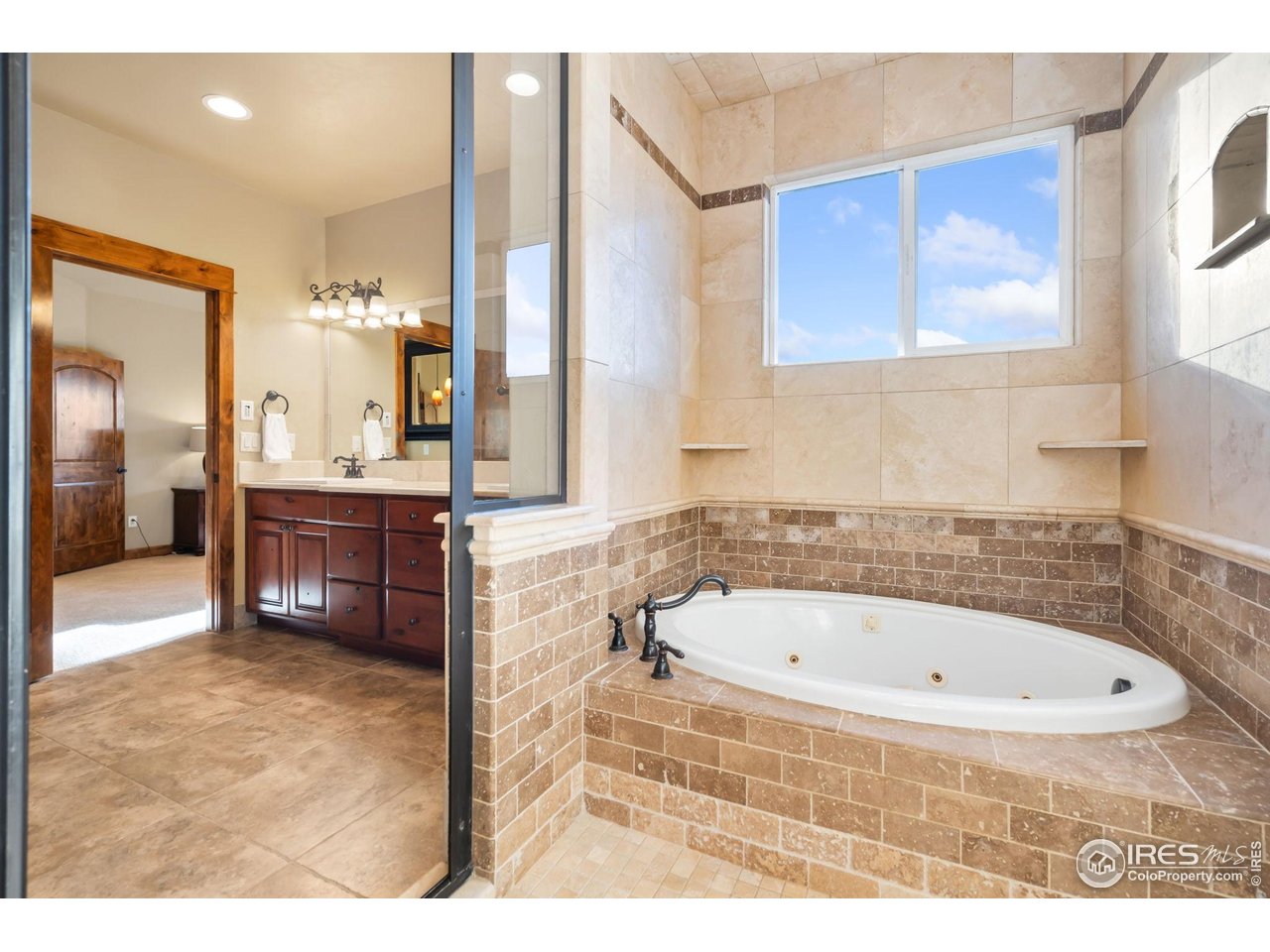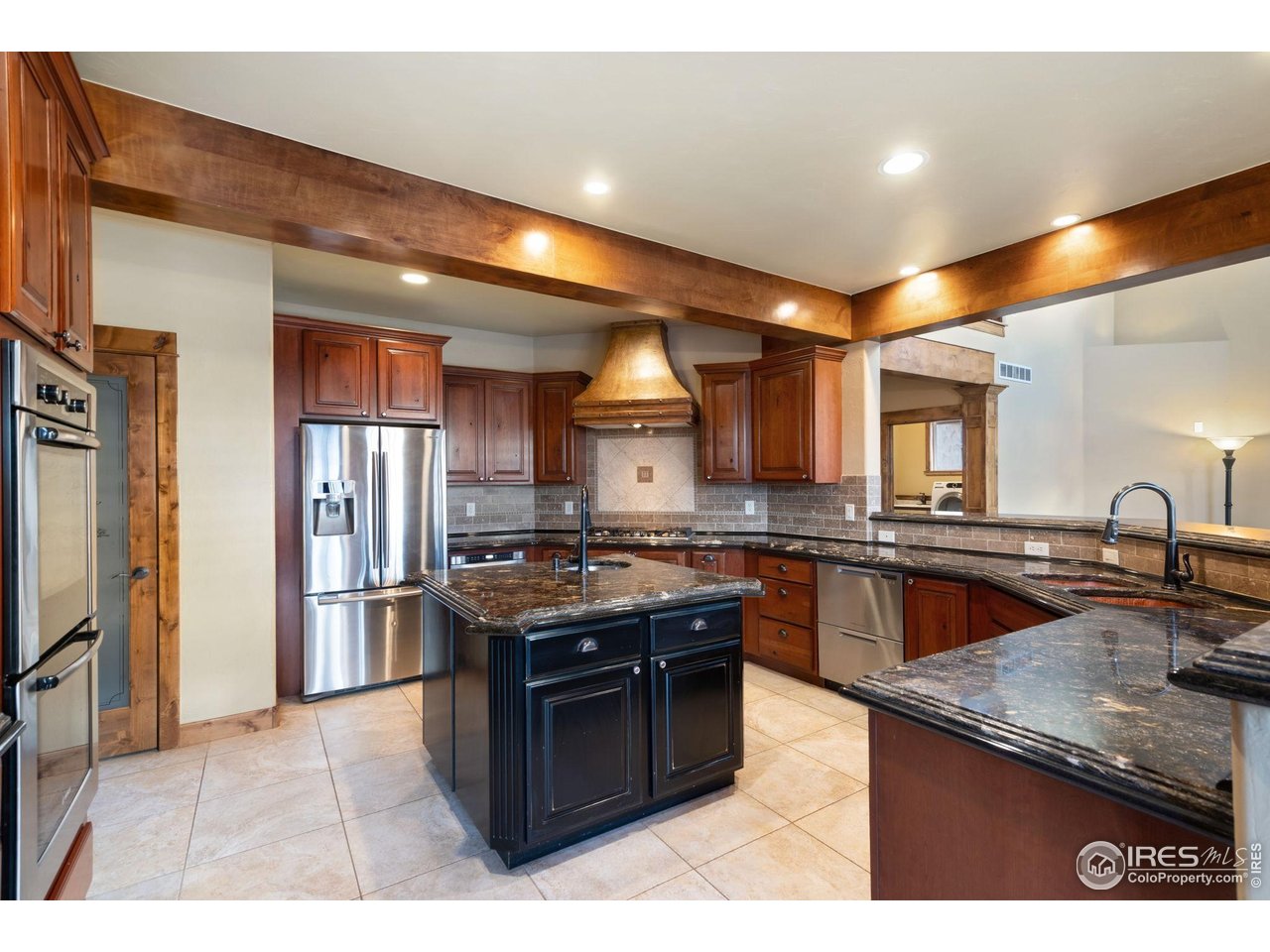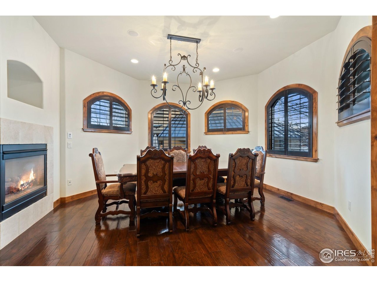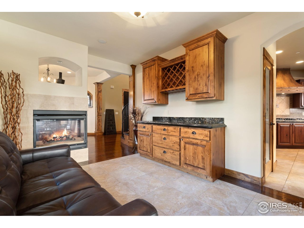 A rare offering in the secluded enclave of The Springs at Mariana, this exceptional property delivers true country living in the city. Situated on over a 1/4-acre lot, the home backs to wildlife-preserved trails and open space, with the rear deck overlooking a protected sanctuary that has hosted elk, wild turkeys, bald eagles, osprey, and deer. Just steps from Boedecker Reservoir, Mariana Butte Golf Course, and the Devil's Backbone trail system, this West Loveland location is unmatched. The HOA enhances the lifestyle with irrigated open space, a pond, gazebo, and firepit. This sprawling two-story home welcomes you through a grand gated entry and showcases Tuscany-inspired, high-end finishes throughout. The gourmet kitchen is a showpiece, featuring slabs of exotic level granite, knotty cherry cabinetry, an alder wood island, and premium appliances including double ovens, a gas cooktop, and a double-drawer dishwasher. The hearth room and dining area share a cozy fireplace, while the great room stuns with 20-foot ceilings and a second fireplace, flooding the home with natural light. Designed for both luxury and function, the home offers a private office with a separate exterior entrance, brand-new carpet, gleaming wood and tile floors, two laundry areas (one in the owner's suite closet and one in the mudroom), an expansive driveway and a 3-car side-load garage that is wired 240v and even includes a rock-climbing wall. Three bedrooms are located upstairs, each with its own en-suite bathroom. The finished basement adds a fourth bedroom, also with a private bathroom, and impresses with abundant natural light, a beautifully crafted wine cellar, wet bar, and recreation space. Additional highlights include a new 70-gallon water heater, stucco and stone exterior, and expansive brick patios that blend seamlessly into the breathtaking natural setting. This is a home defined by unique craftsmanship, architectural detail, outstanding finishes, and a truly mind-blowing location.