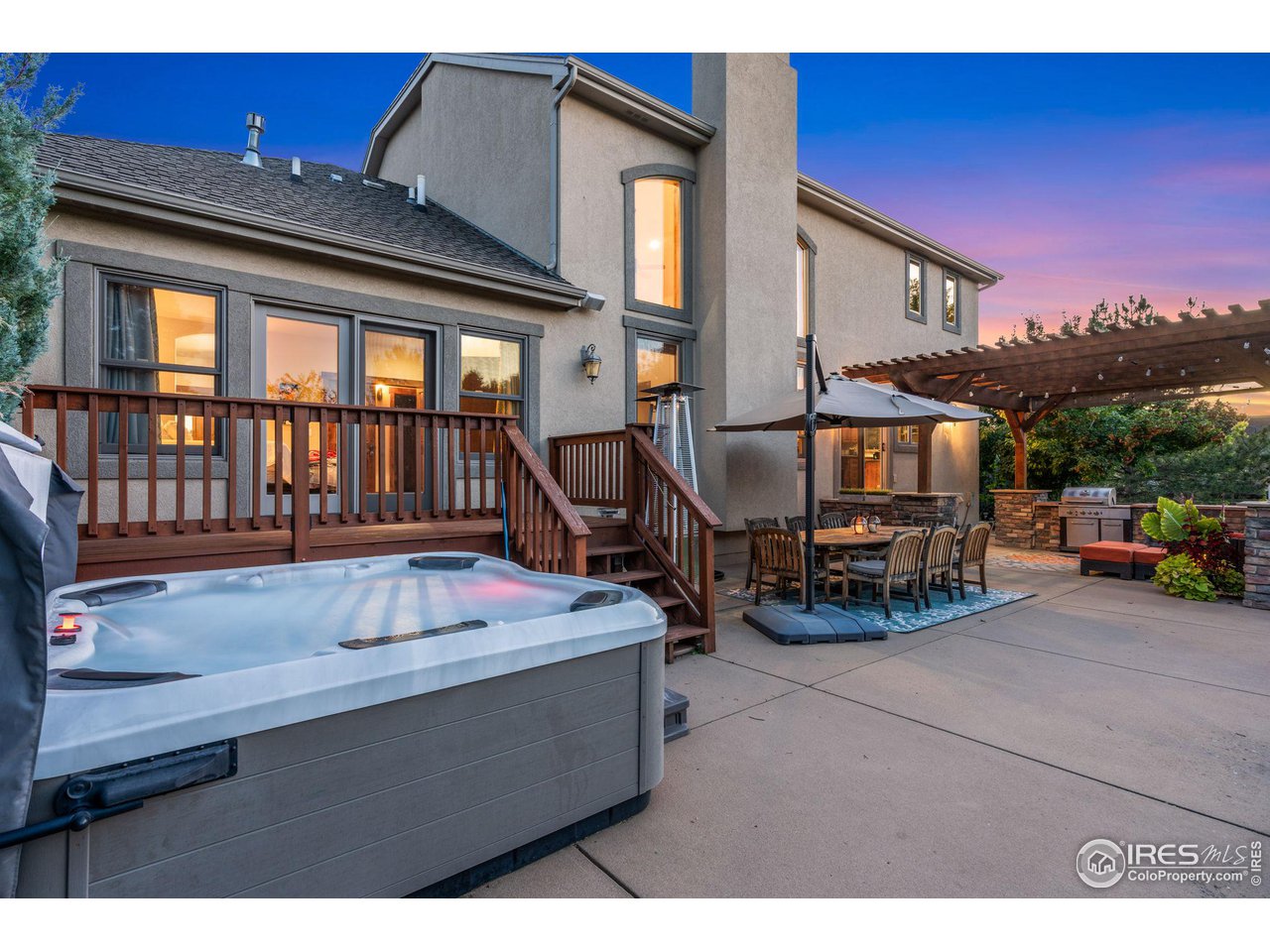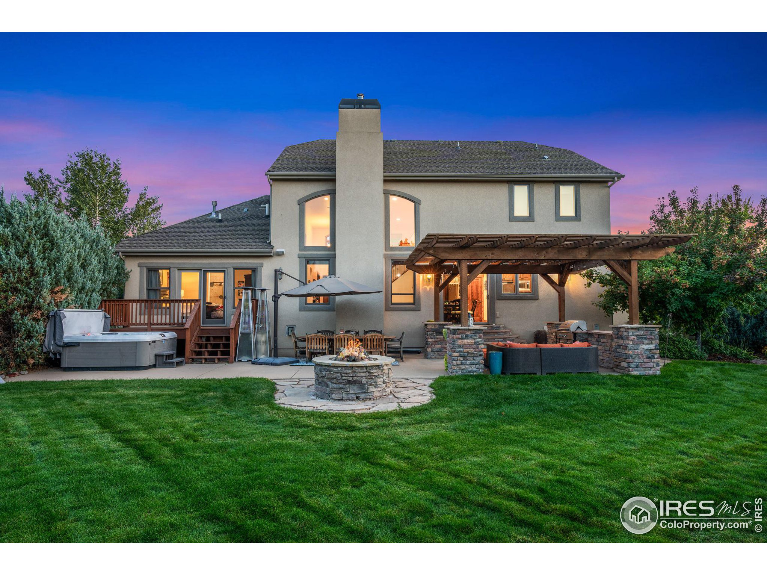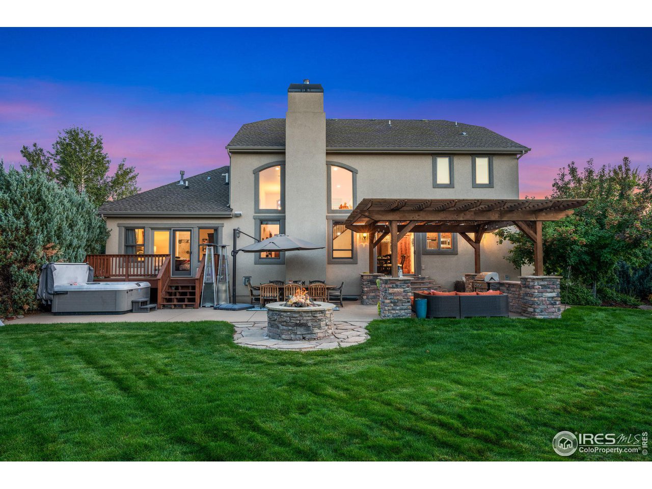 Nestled in the prestigious Fossil Lake Ranch, this exquisite home at 3602 Rocky Stream Dr sits on a sprawling half-acre lot, offering an unmatched blend of elegance and comfort. The main-floor primary suite boasts vaulted ceilings and a ceiling fan, creating a serene retreat. Hardwood floors flow throughout, leading to a stunning open-plan kitchen and dining area, featuring wooden cabinetry, sparkling countertops, and a central island. The double-height windows in the living room flood the space with natural light. The finished basement provides additional room to entertain in the family and rec room along with two bedrooms and two bathrooms. Upstairs, the open loft adds to the home's versatility along with two bedrooms joined by a jack and jill style bathroom. Step outside to your private backyard oasis, complete with a pergola, built-in bar, firepit, and hot tub-perfect for year-round entertaining. This is a rare opportunity to own a slice of luxury in one of the area's most sought-after neighborhoods.