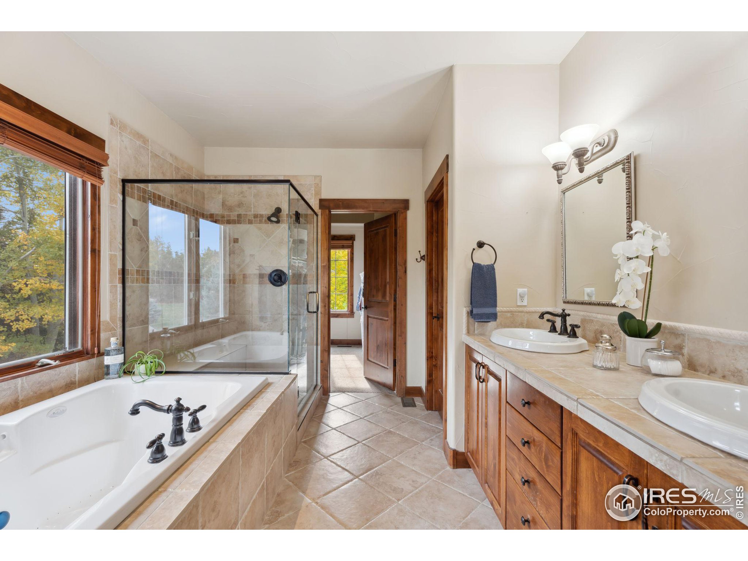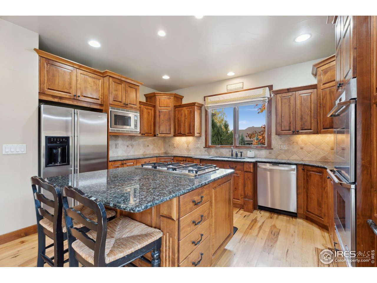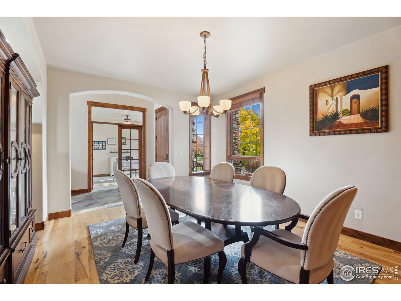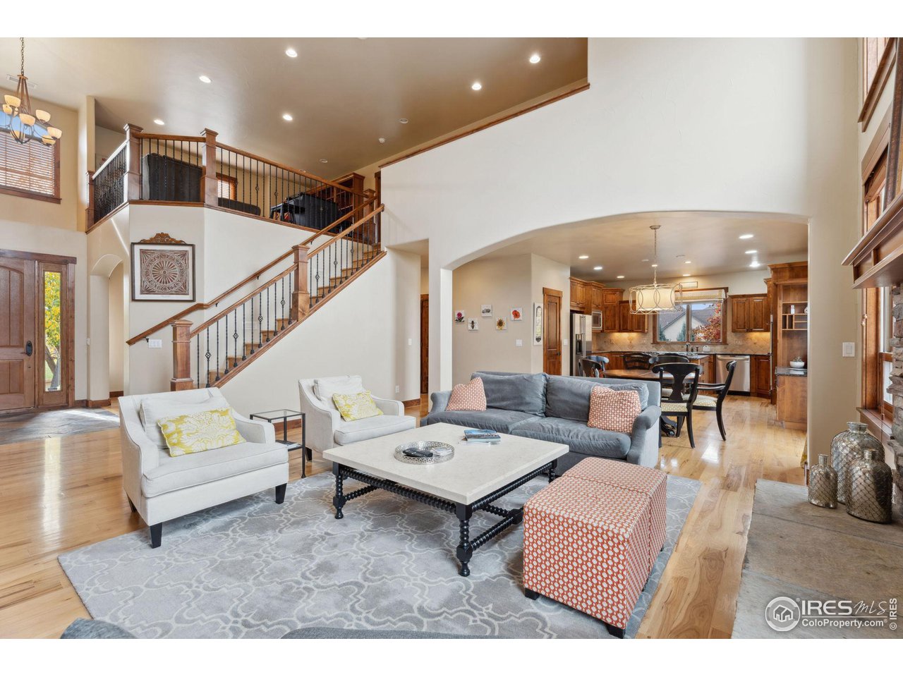 Nestled in the prestigious Fossil Lake Ranch, this exquisite home at 3602 Rocky Stream Dr sits on a sprawling half-acre lot, offering an unmatched blend of elegance and comfort. The main-floor primary suite boasts vaulted ceilings and a ceiling fan, creating a serene retreat. Hardwood floors flow throughout, leading to a stunning open-plan kitchen and dining area, featuring wooden cabinetry, sparkling countertops, and a central island. The double-height windows in the living room flood the space with natural light. The finished basement provides additional room to entertain in the family and rec room along with two bedrooms and two bathrooms. Upstairs, the open loft adds to the home's versatility along with two bedrooms joined by a jack and jill style bathroom. Step outside to your private backyard oasis, complete with a pergola, built-in bar, firepit, and hot tub-perfect for year-round entertaining. This is a rare opportunity to own a slice of luxury in one of the area's most sought-after neighborhoods.