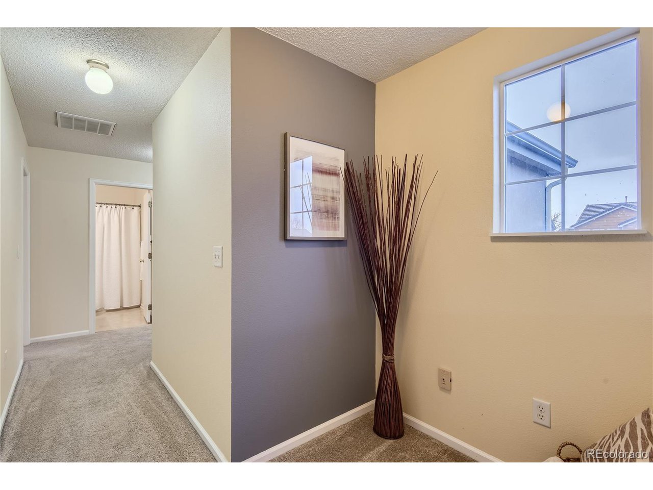 The upper level has a small creative nook perfect for a writing desk or reading area and access to all three bedrooms. The primary bedroom features an ensuite bathroom with double sinks and a large soaking tub/shower and a walk-in closet. The other two bedrooms share a full bath with a hallway linen closet. The Ring doorbell and Brinks security system ensure peace of mind, while a sprinkler system keeps the landscape lush and green, and the air conditioning system is ready for even the warmest days.