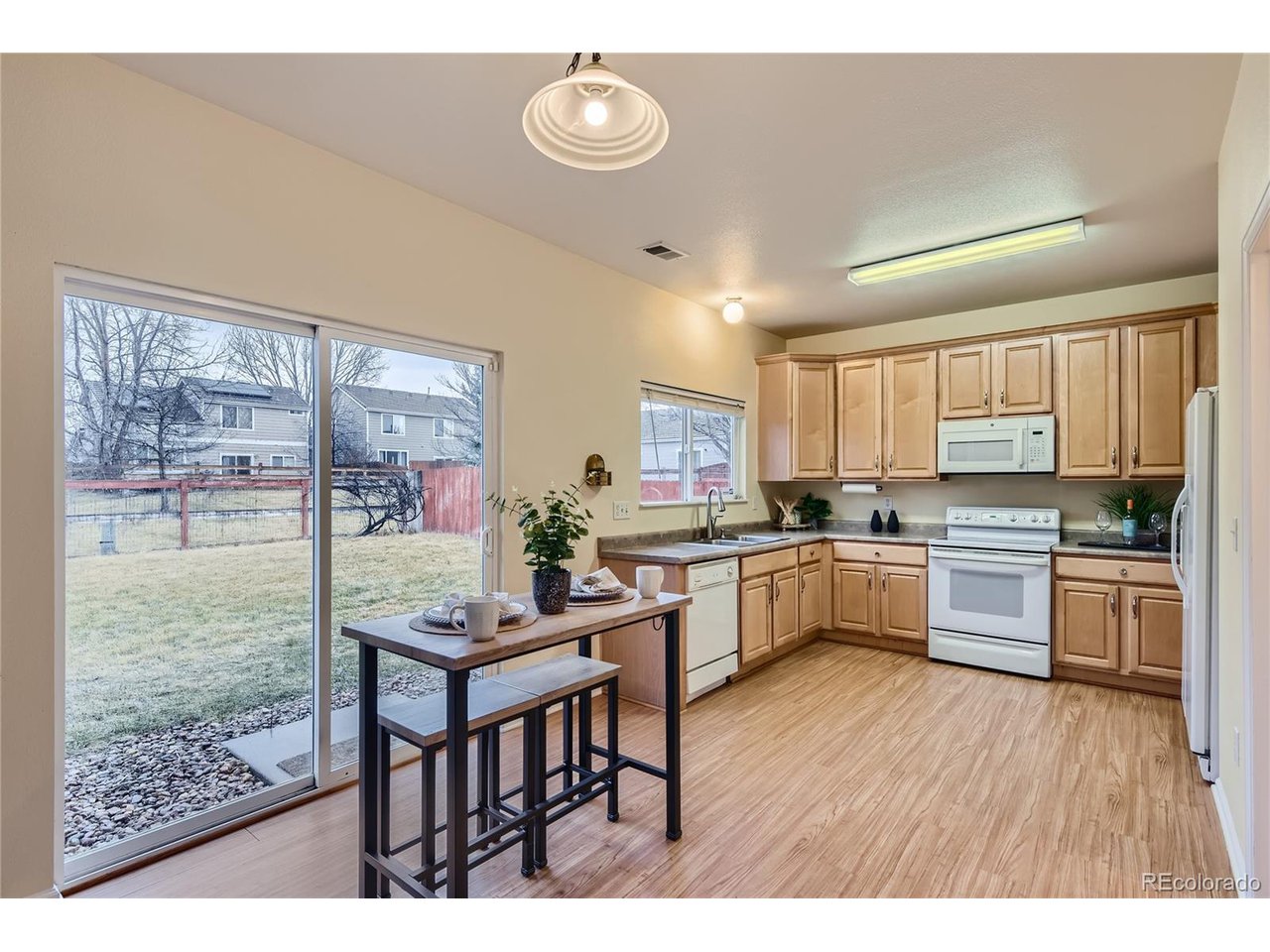 Welcome to this beautiful two-story home in the quiet Waterglen neighborhood. This home features 3 cozy bedrooms, 3 well-appointed bathrooms, and a spacious 2-car garage. Inside the front door, a tile entry provides a perfect place to kick off your shoes before walking into the open living room with an impressive 14+ foot ceiling and tons of natural light. The kitchen features a big pantry, plenty of cabinets, and counter space plus an adjacent dining area with access to the fenced backyard for grilling and entertaining! Laundry is located conveniently right off the garage.