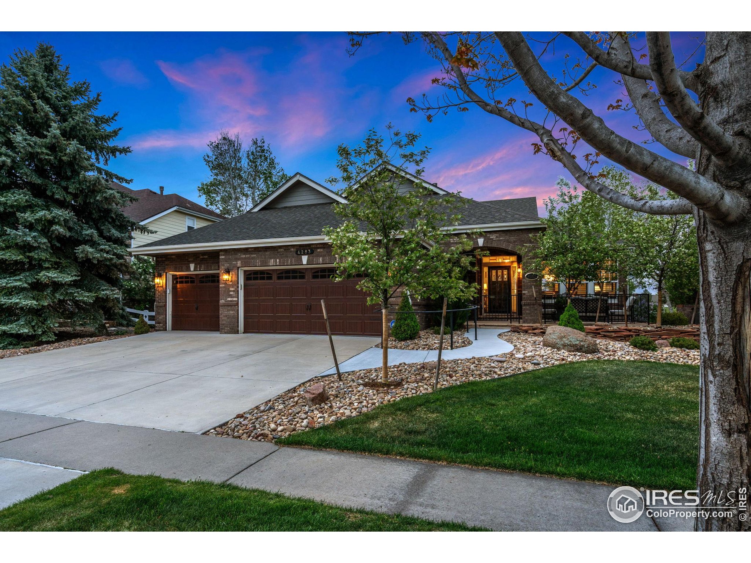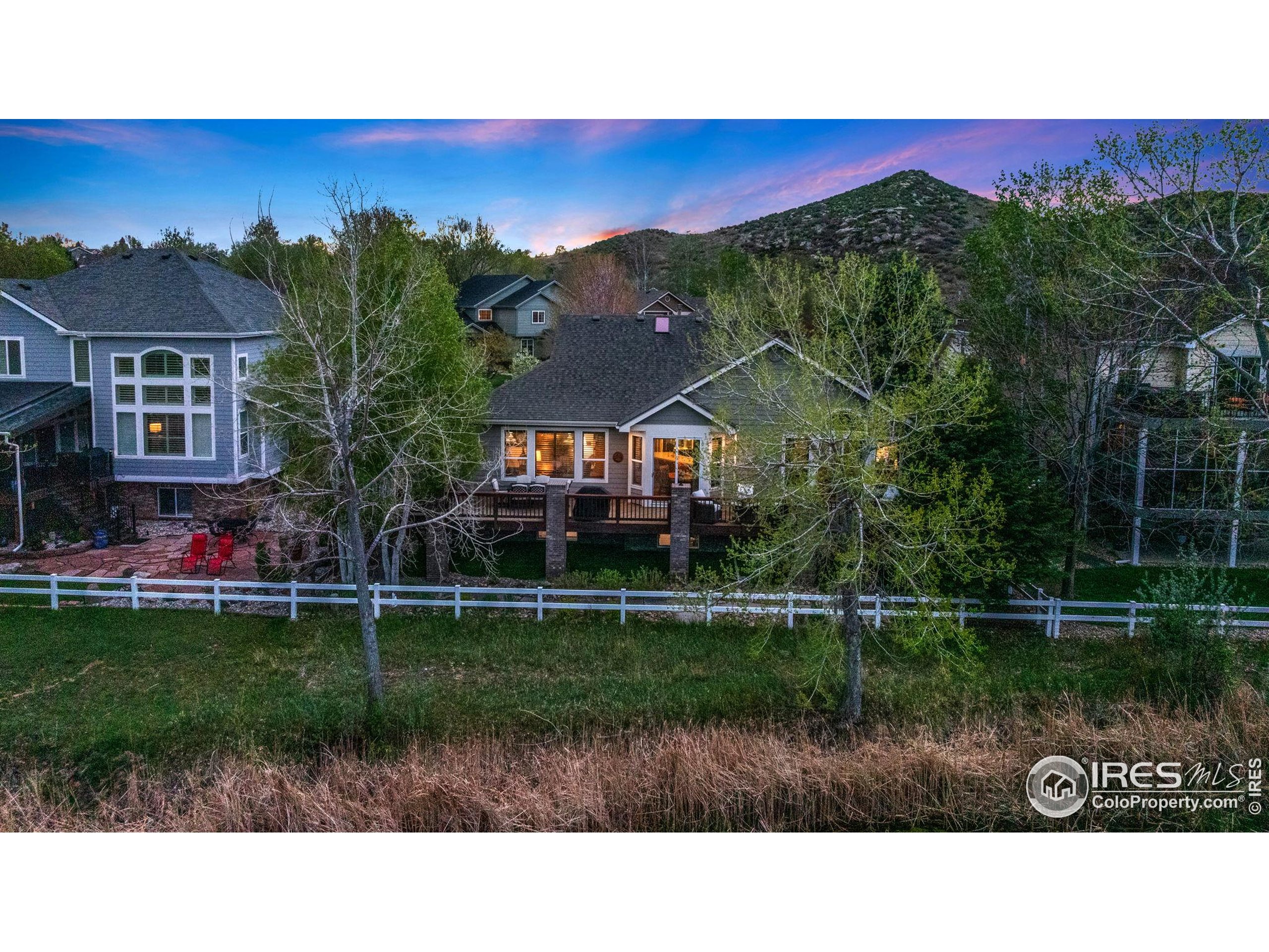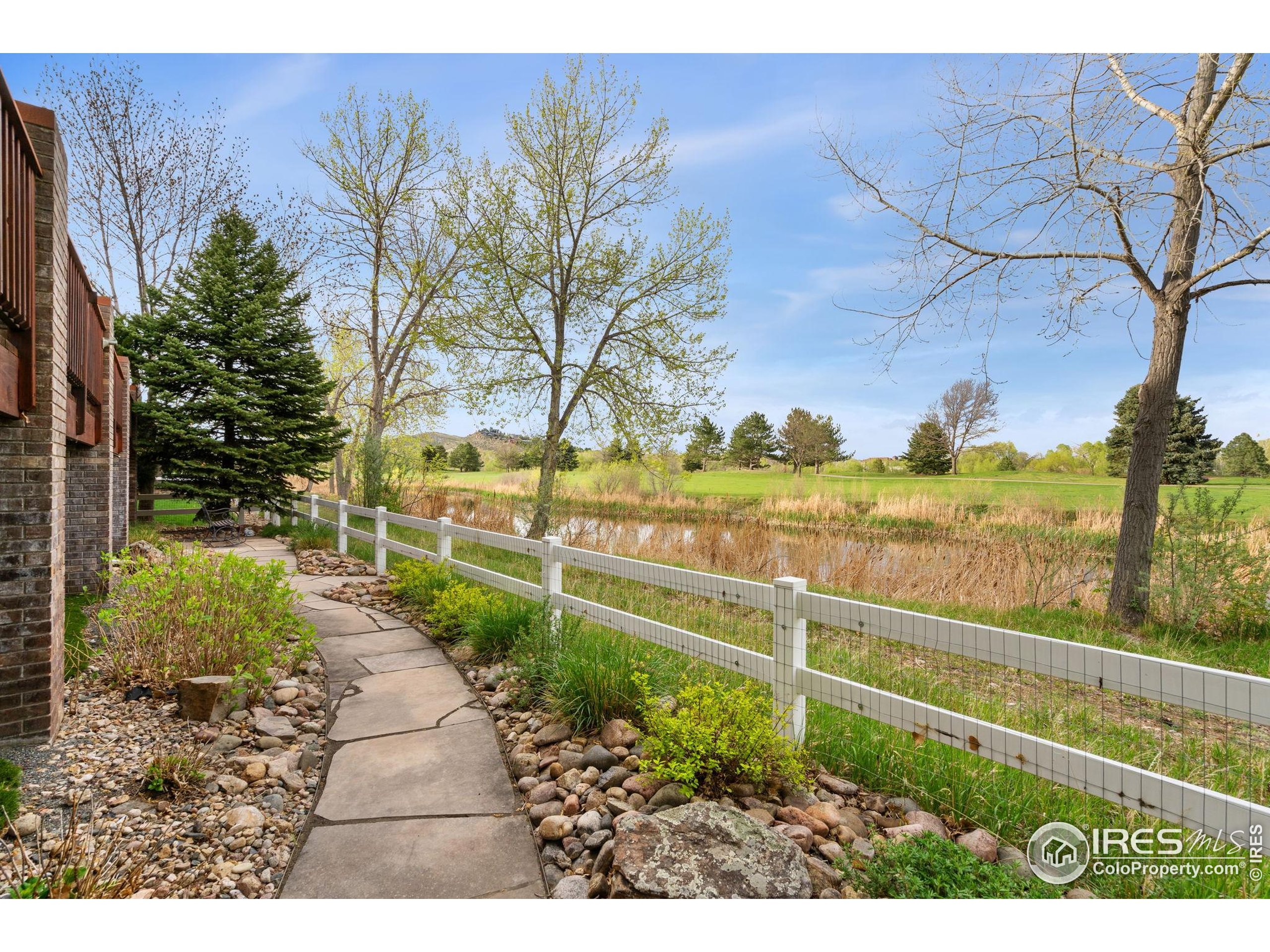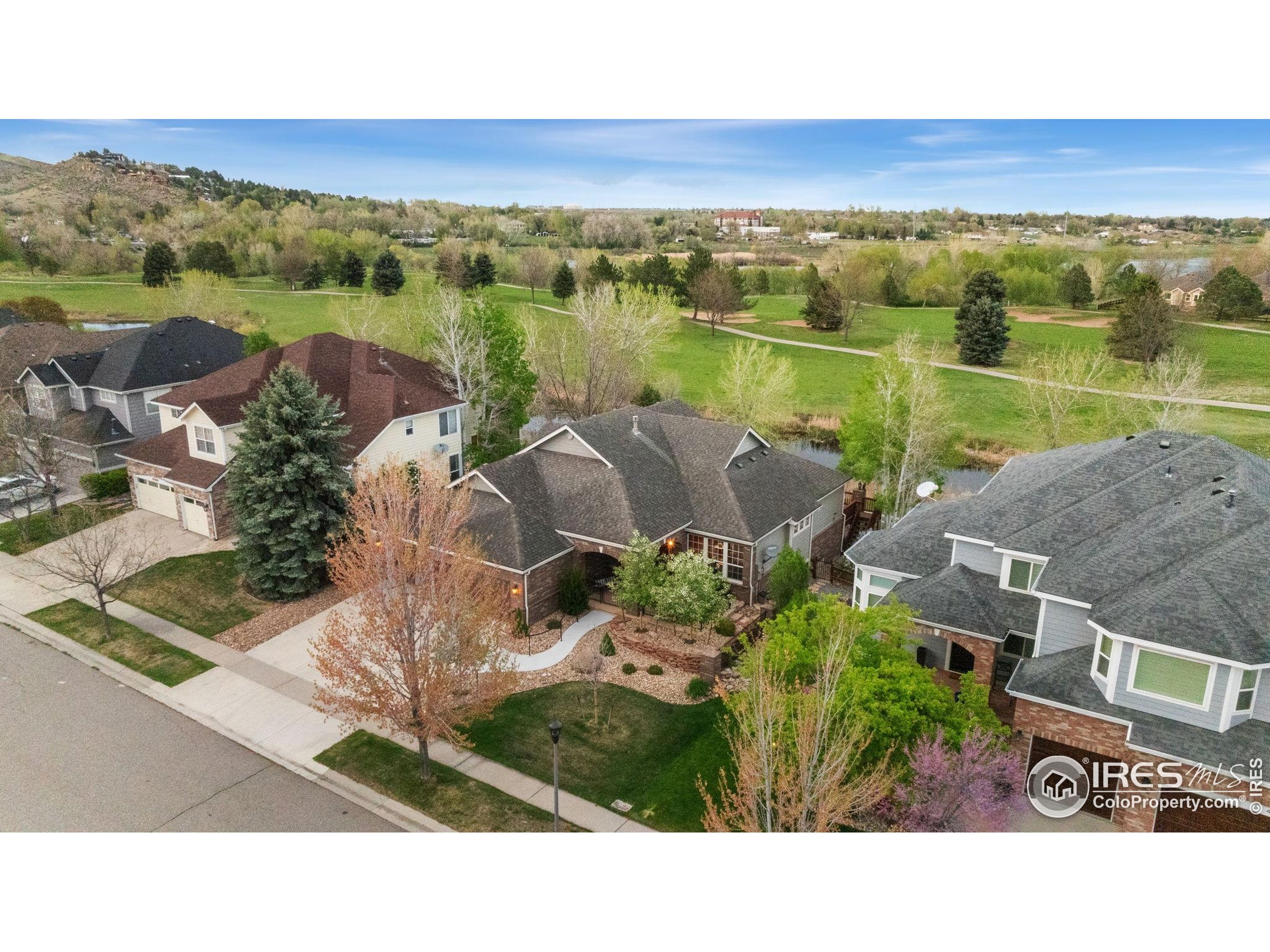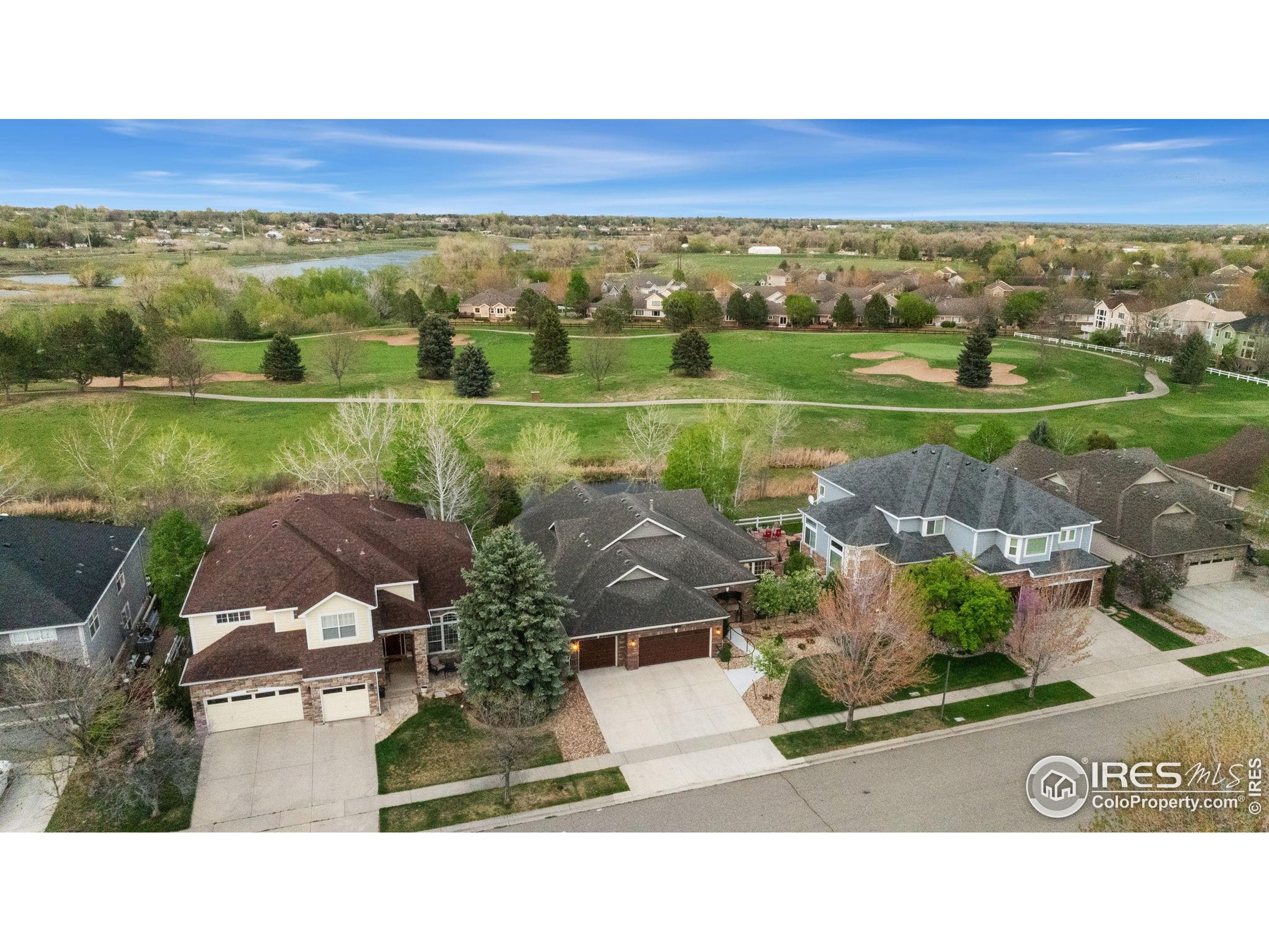 Welcome to 4283 Golf Vista Dr, a stunning and meticulously maintained ranch-style home backing to the 13th Fairway of the Mariana Butte Golf Course. This beautifully appointed 4-bedroom, 3-bathroom residence with a spacious 3-car garage offers the perfect blend of luxury, comfort, and exceptional golf course living. Brazilian tigerwood floors span the main level, complemented by soaring ceilings, custom iron rails, and expansive windows that fill the space with natural light. The home opens to a bright and elegant living room and formal dining room, perfect for entertaining and everyday enjoyment. The chef's kitchen features rich cherry cabinetry, marble countertops, under-cabinet lighting, and a large island with wrap-around seating. It also includes a casual eat-in area for everyday dining and opens directly to the back deck. Adjacent to the kitchen is a cozy family room with a striking leathered granite fireplace-creating a warm and inviting space for relaxation and connection. The expansive primary suite is a serene retreat with sliding doors to the back deck, dual walk-in closets, and a luxurious en-suite bathroom. This spa-like space boasts marble floors, cherry cabinets, a double vanity, a dramatic black tile accent wall, and a walk-in, low profile entry shower. The main floor also includes a second bedroom, an office, a charming 3/4 bathroom, and an updated laundry room with new cabinetry and quartz countertops. The garden-level basement is bright and inviting with tall ceilings, Berber carpet, and plenty of natural light. It features two additional bedrooms, a flex room, a spacious rec room and game room, a second fireplace, and a fully equipped wet bar with refrigerator and built-in wine rack. A private sauna and pool table adds to the home's luxurious amenities. Outside, enjoy beautiful landscaping and peaceful fairway views from the back deck. This is Colorado living at its finest in one of Loveland's most sought-after golf course communities.
