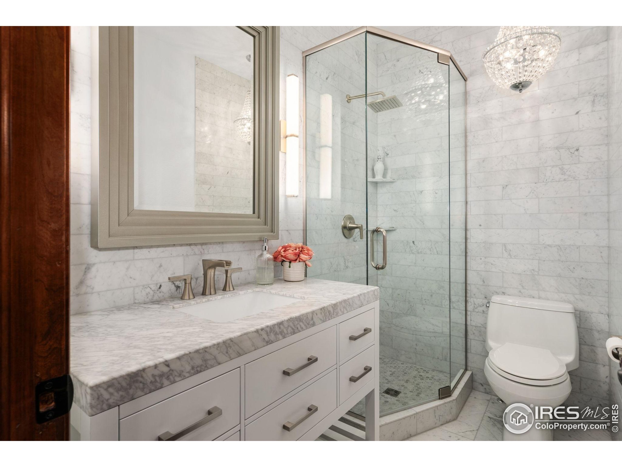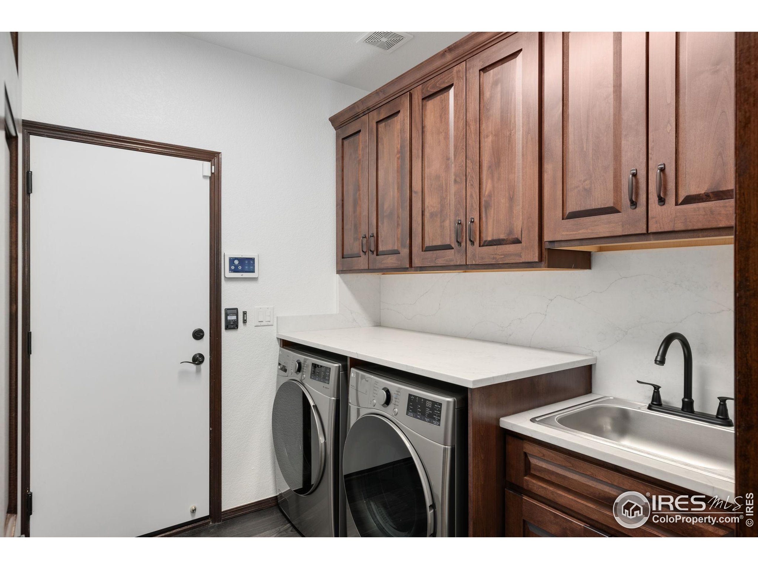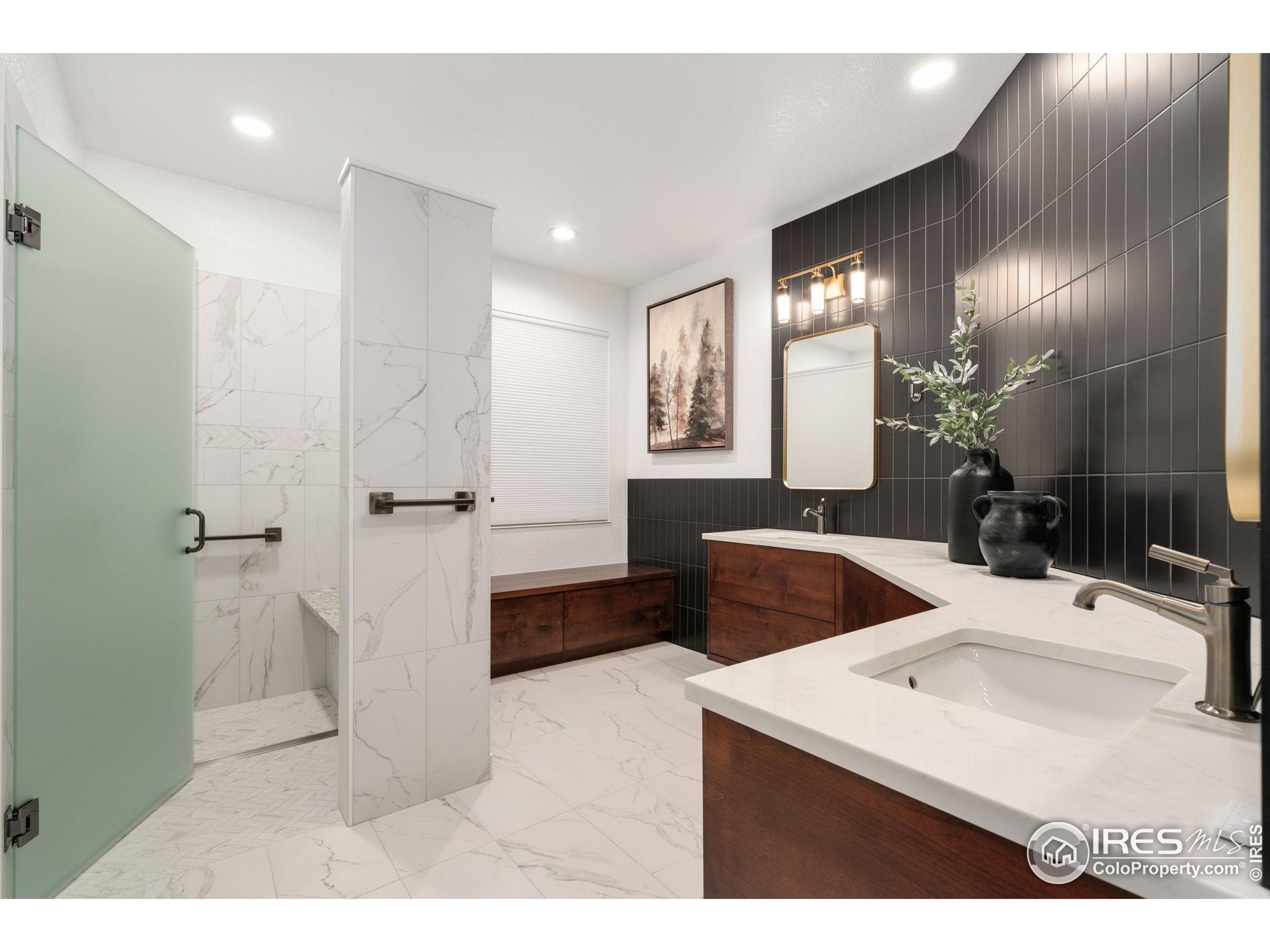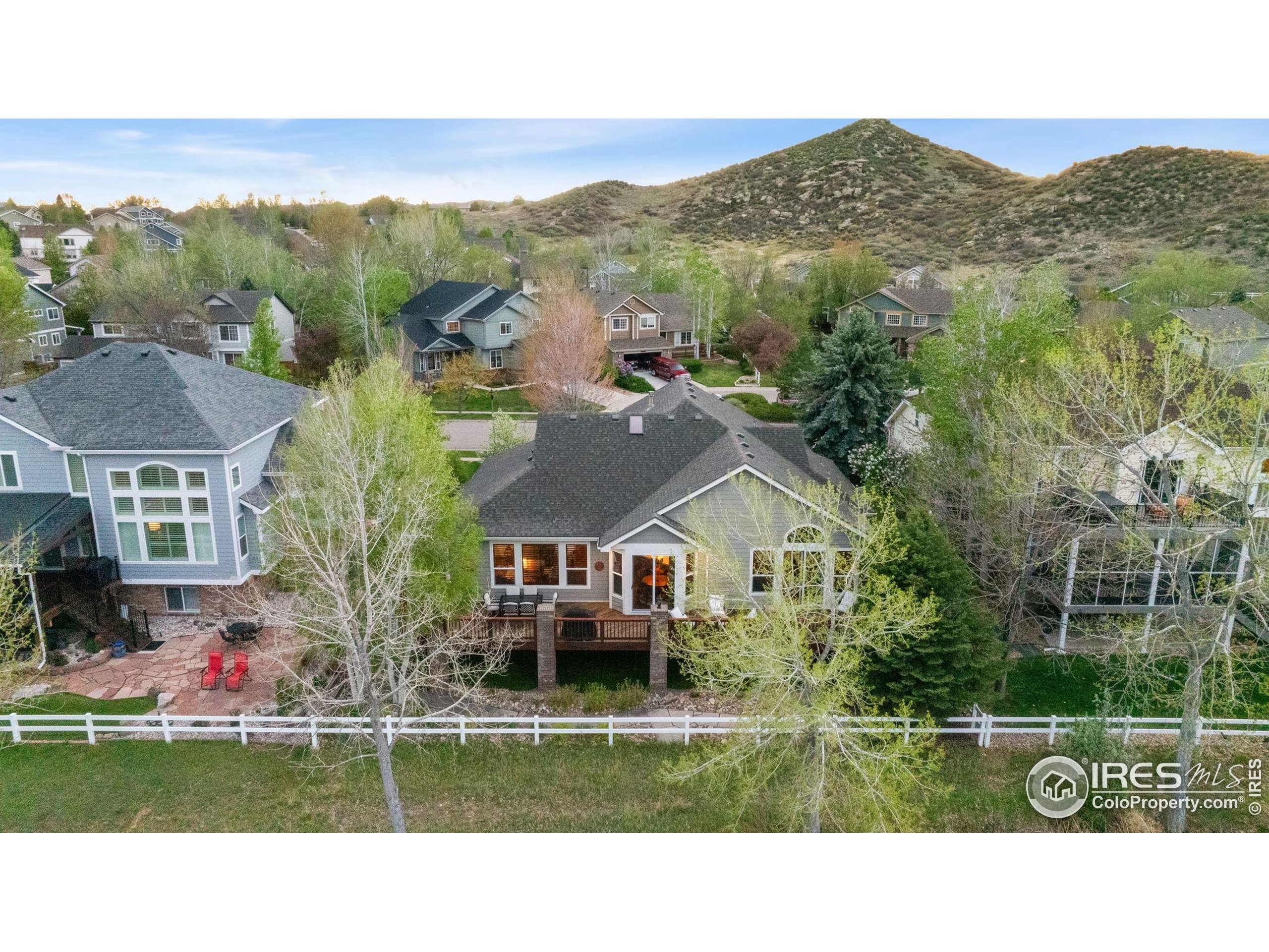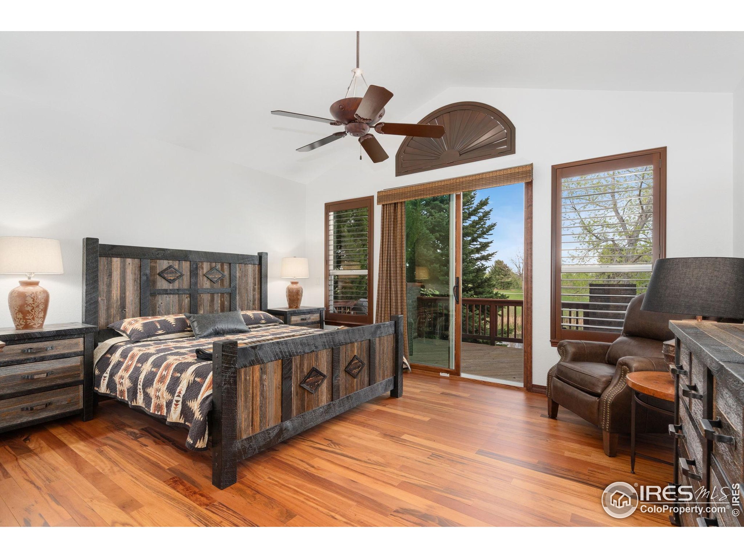 Welcome to 4283 Golf Vista Dr, a stunning and meticulously maintained ranch-style home backing to the 13th Fairway of the Mariana Butte Golf Course. This beautifully appointed 4-bedroom, 3-bathroom residence with a spacious 3-car garage offers the perfect blend of luxury, comfort, and exceptional golf course living. Brazilian tigerwood floors span the main level, complemented by soaring ceilings, custom iron rails, and expansive windows that fill the space with natural light. The home opens to a bright and elegant living room and formal dining room, perfect for entertaining and everyday enjoyment. The chef's kitchen features rich cherry cabinetry, marble countertops, under-cabinet lighting, and a large island with wrap-around seating. It also includes a casual eat-in area for everyday dining and opens directly to the back deck. Adjacent to the kitchen is a cozy family room with a striking leathered granite fireplace-creating a warm and inviting space for relaxation and connection. The expansive primary suite is a serene retreat with sliding doors to the back deck, dual walk-in closets, and a luxurious en-suite bathroom. This spa-like space boasts marble floors, cherry cabinets, a double vanity, a dramatic black tile accent wall, and a walk-in, low profile entry shower. The main floor also includes a second bedroom, an office, a charming 3/4 bathroom, and an updated laundry room with new cabinetry and quartz countertops. The garden-level basement is bright and inviting with tall ceilings, Berber carpet, and plenty of natural light. It features two additional bedrooms, a flex room, a spacious rec room and game room, a second fireplace, and a fully equipped wet bar with refrigerator and built-in wine rack. A private sauna and pool table adds to the home's luxurious amenities. Outside, enjoy beautiful landscaping and peaceful fairway views from the back deck. This is Colorado living at its finest in one of Loveland's most sought-after golf course communities.