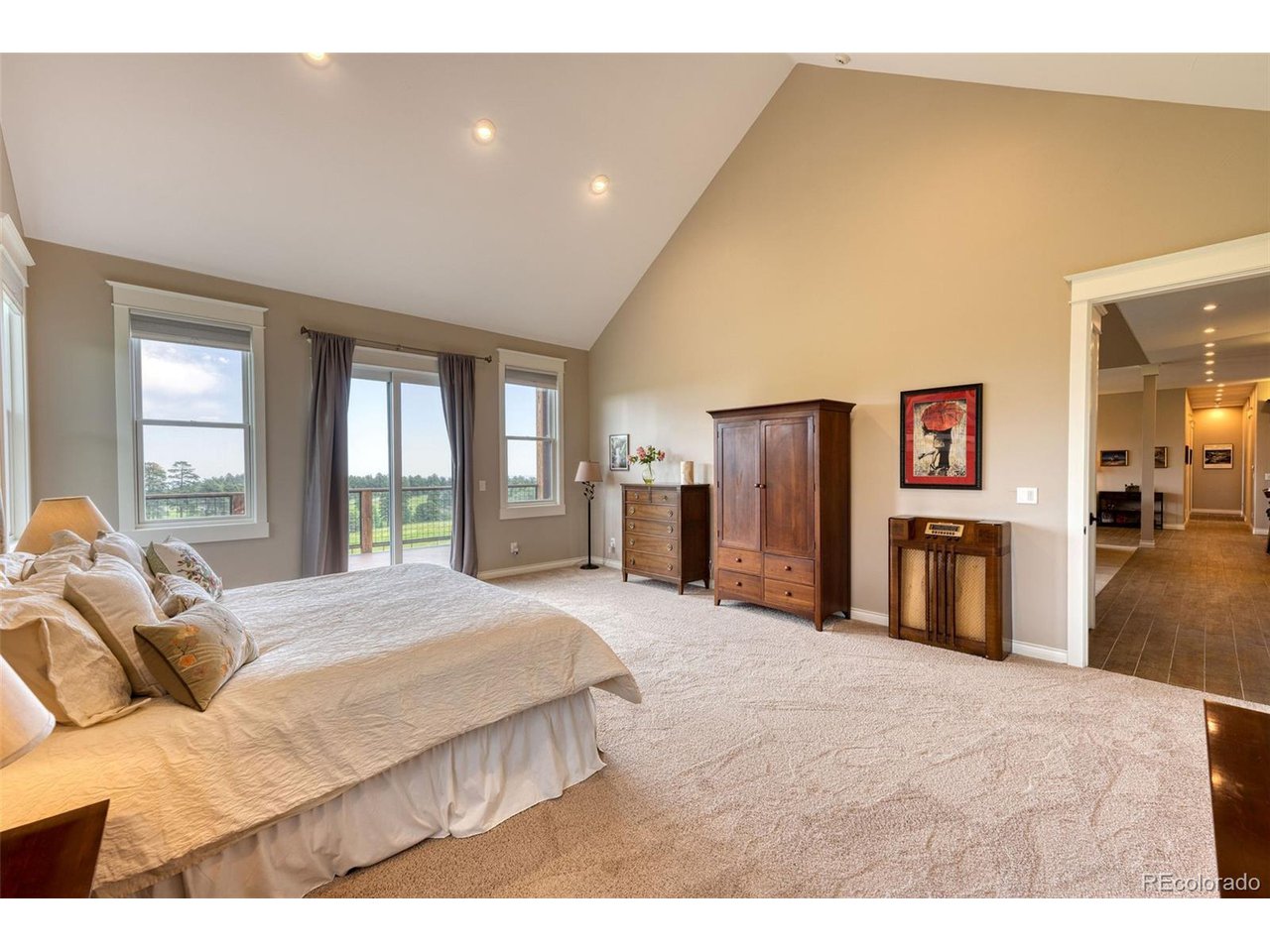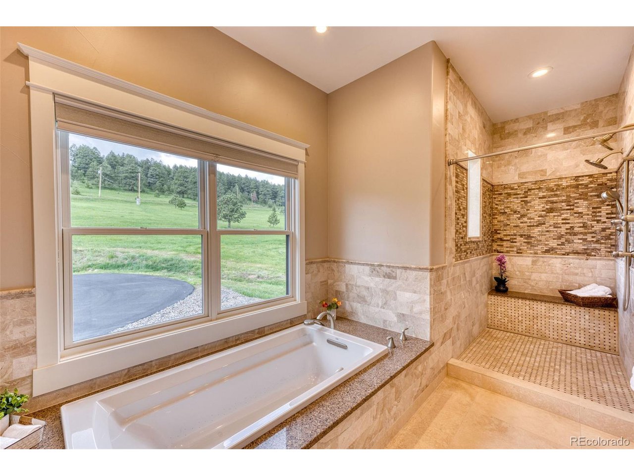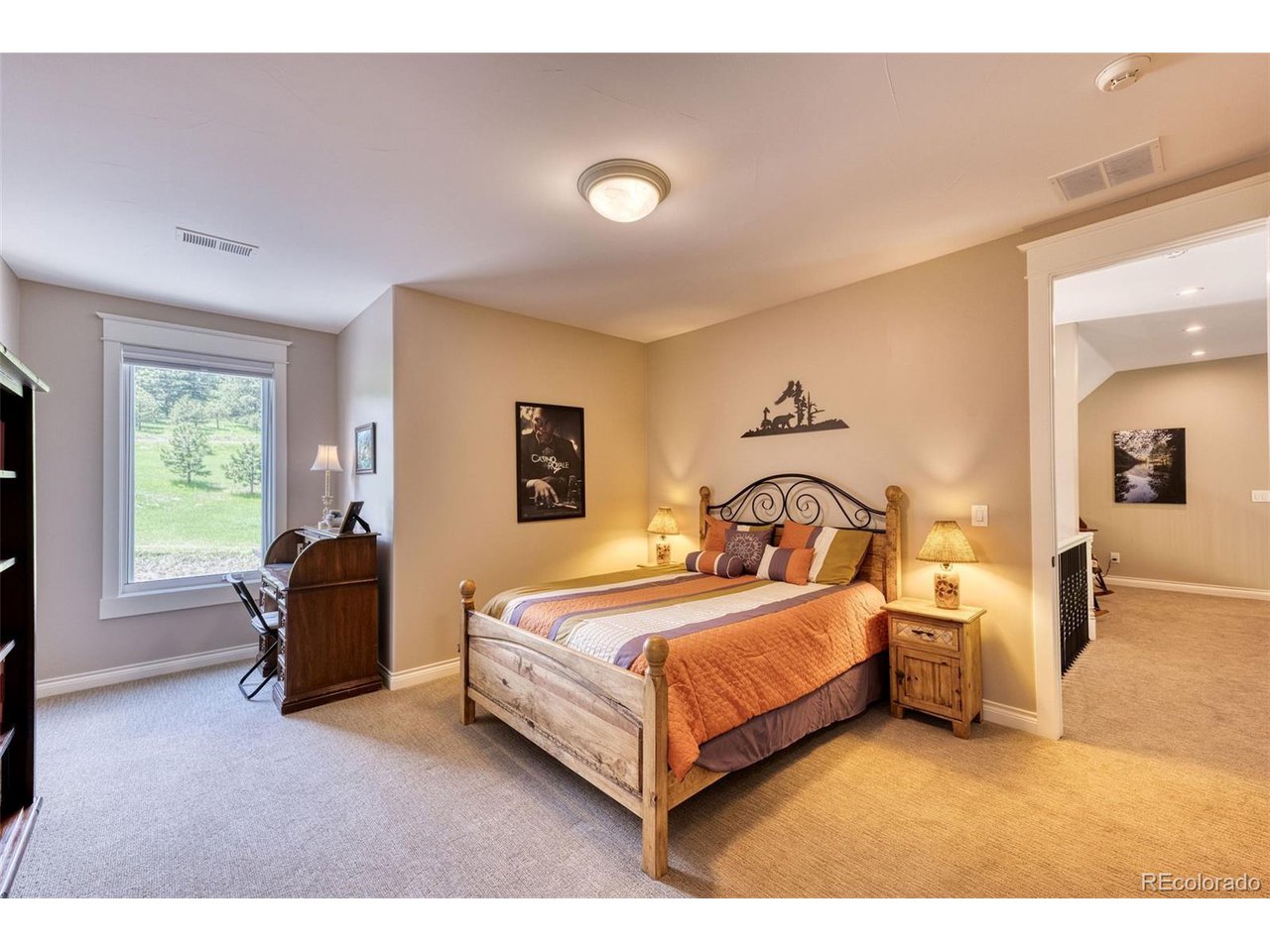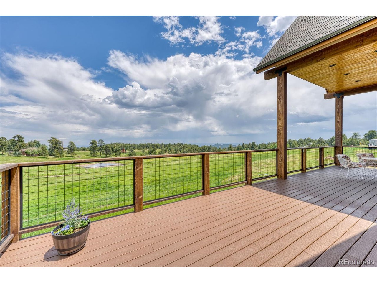 Mountain, meadow and city views. Additional Dwelling Unit or Mother in law suite above garage with private entrance. Situated at 8,200 ft, this home overlooks the twinkly city lights of Denver and surrounding cities in a beautiful mountain meadow which is home to abundant flora and fauna year-round. Built in 2018 by SonPointe Homes Builders, no detail was spared in it's construction. Every room features 10 ft ceilings and doors with molding details which gives the home a true, custom, high quality feel. Kitchen offers a large walk-in custom butlers pantry, custom cabinetry, granite counters and large kitchen island, great for entertaining guests or accommodating large gatherings. Vaulted ceilings in the spacious living area with stunning views of mountains, city and quaint neighboring pond. Large deck with plenty of room for your own personal touches. Windows are doors were all done using Sierra Pacific windows and doors with Low E glass. Step into your own private oasis with the primary suites vaulted ceilings, his and hers walk-in closets with custom organization, large soaking tub, dual sinks, and heated multi-head shower with detailed custom tile. Floors in all six bathrooms have programable heat thermostats. Tankless water heater, 120,000 btu propane furnace with 3.5T air conditioner. Enjoy the 35 foot deep 4 car heated garage for your cars and toys with an additional 50' RV pedestal with full 50A service, water and waste dump, 50 x 100 pad. Above the garage is an 950 sqft ADU with kitchenette, dining area, custom shelving, and cozy pellet stove. This flex space would be excellent for a mother in-law suite, guest house, office with private entrance. Every bedroom has it's own bathroom with plenty of closet space. Loft above living area includes cat walk with seating area and/or library. Upstairs bedroom would be great for another private office or crafting room with a huge walk-in closet and full bathroom. Huge unfinished walk-out basement.