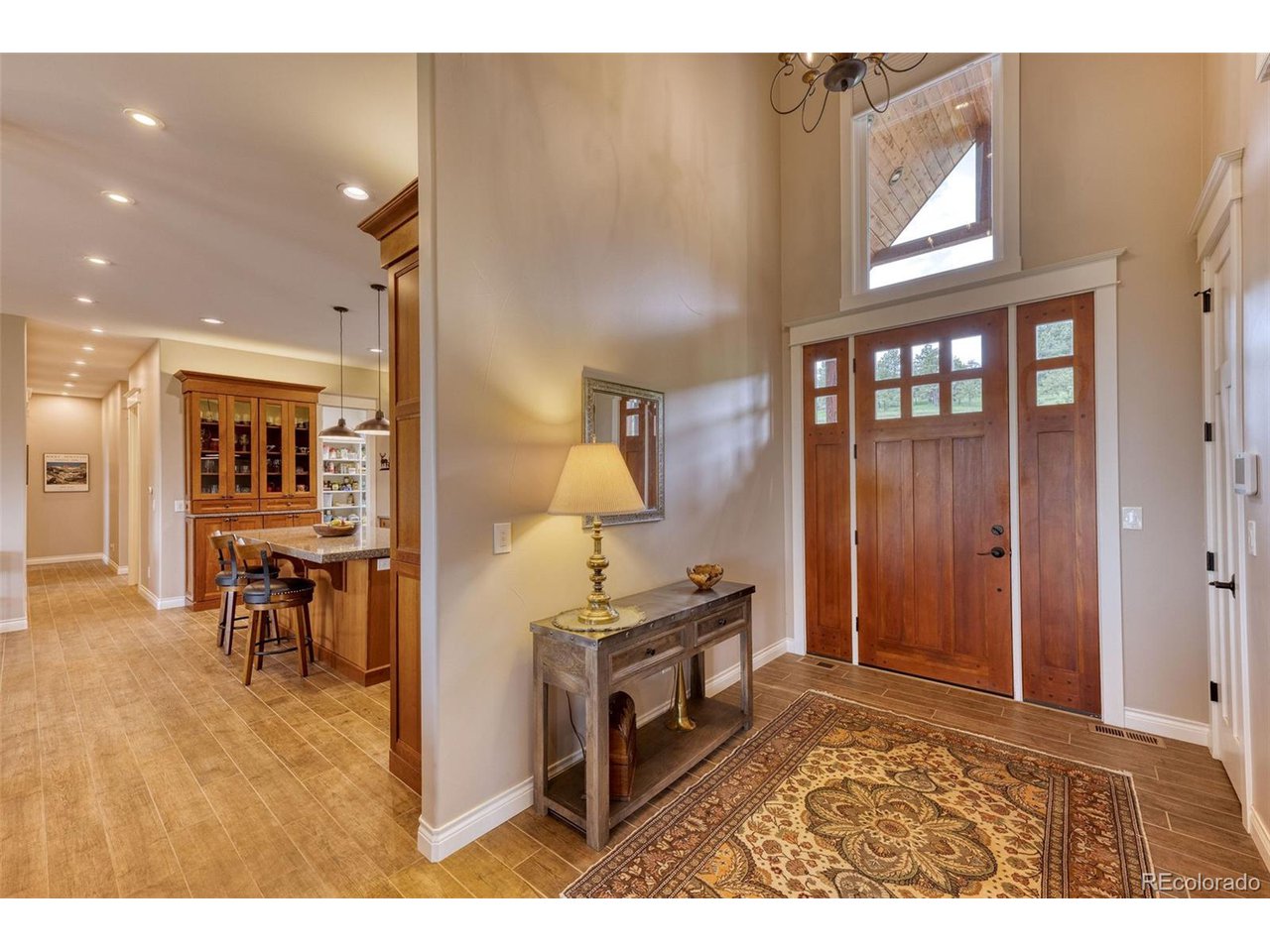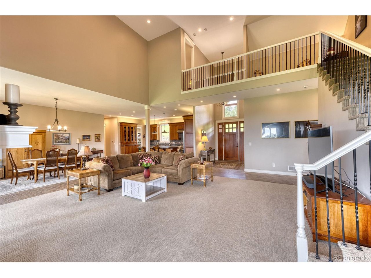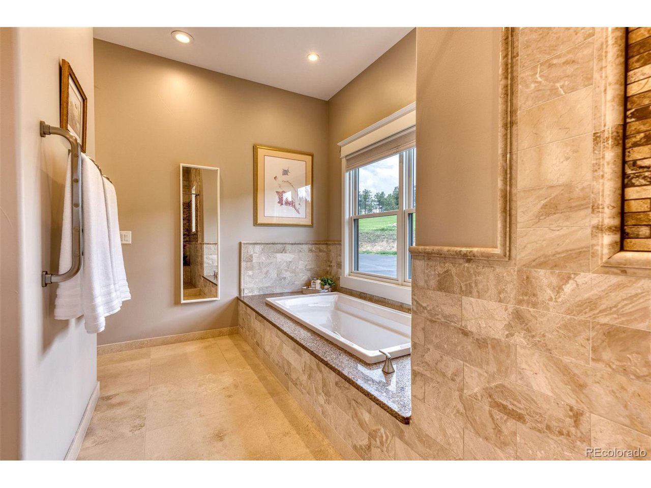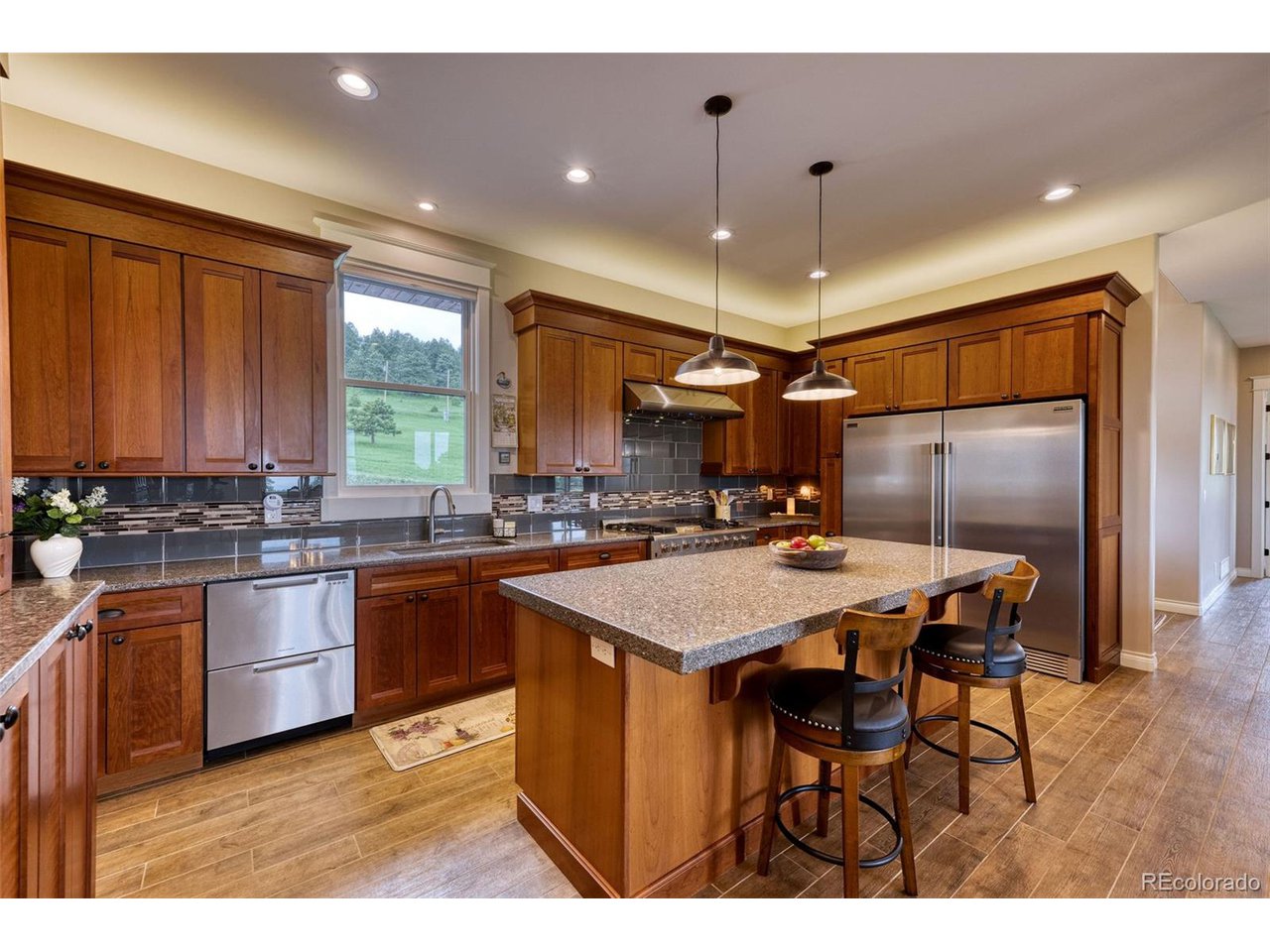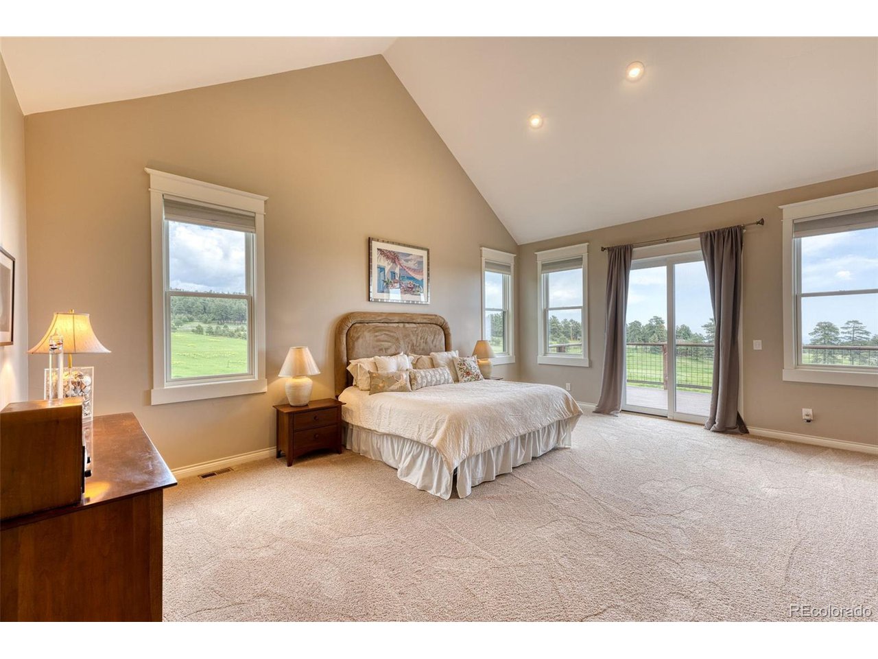 Mountain, meadow and city views. Additional Dwelling Unit or Mother in law suite above garage with private entrance. Situated at 8,200 ft, this home overlooks the twinkly city lights of Denver and surrounding cities in a beautiful mountain meadow which is home to abundant flora and fauna year-round. Built in 2018 by SonPointe Homes Builders, no detail was spared in it's construction. Every room features 10 ft ceilings and doors with molding details which gives the home a true, custom, high quality feel. Kitchen offers a large walk-in custom butlers pantry, custom cabinetry, granite counters and large kitchen island, great for entertaining guests or accommodating large gatherings. Vaulted ceilings in the spacious living area with stunning views of mountains, city and quaint neighboring pond. Large deck with plenty of room for your own personal touches. Windows are doors were all done using Sierra Pacific windows and doors with Low E glass. Step into your own private oasis with the primary suites vaulted ceilings, his and hers walk-in closets with custom organization, large soaking tub, dual sinks, and heated multi-head shower with detailed custom tile. Floors in all six bathrooms have programable heat thermostats. Tankless water heater, 120,000 btu propane furnace with 3.5T air conditioner. Enjoy the 35 foot deep 4 car heated garage for your cars and toys with an additional 50' RV pedestal with full 50A service, water and waste dump, 50 x 100 pad. Above the garage is an 950 sqft ADU with kitchenette, dining area, custom shelving, and cozy pellet stove. This flex space would be excellent for a mother in-law suite, guest house, office with private entrance. Every bedroom has it's own bathroom with plenty of closet space. Loft above living area includes cat walk with seating area and/or library. Upstairs bedroom would be great for another private office or crafting room with a huge walk-in closet and full bathroom. Huge unfinished walk-out basement.