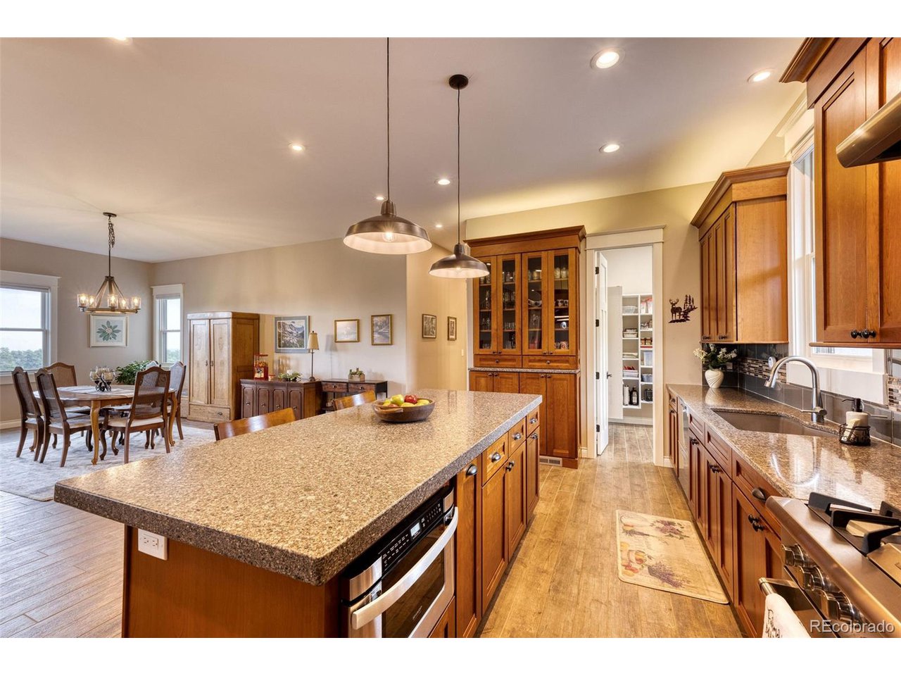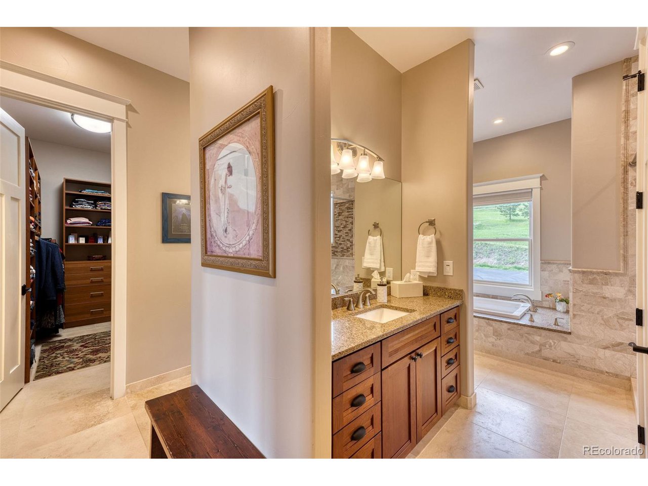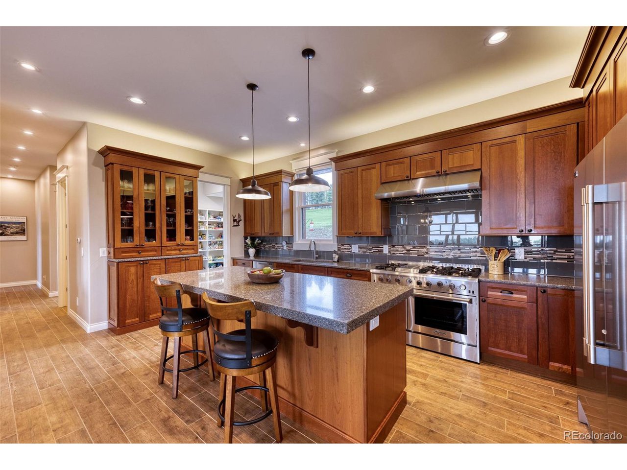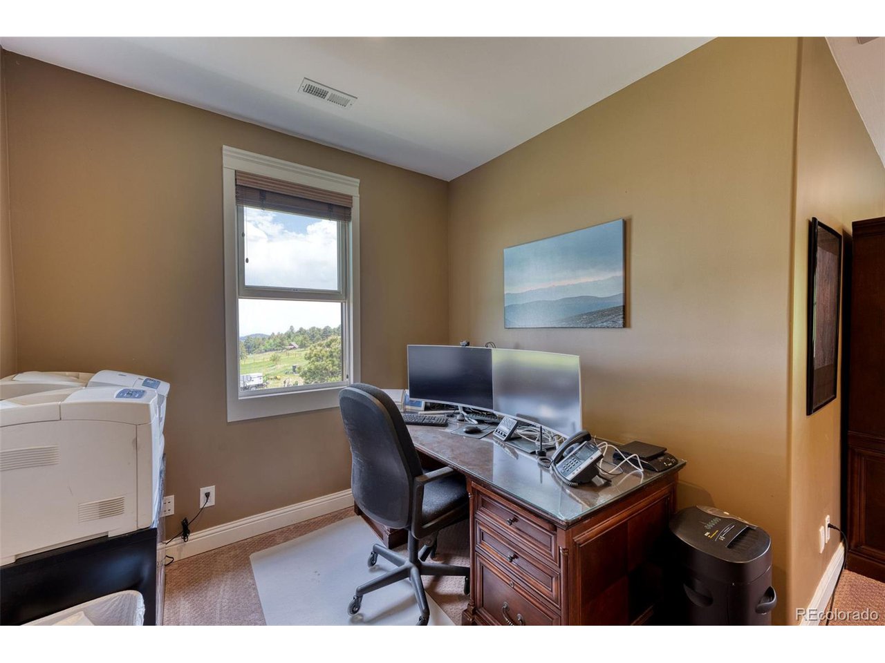 Mountain, meadow and city views. Additional Dwelling Unit or Mother in law suite above garage with private entrance. Situated at 8,200 ft, this home overlooks the twinkly city lights of Denver and surrounding cities in a beautiful mountain meadow which is home to abundant flora and fauna year-round. Built in 2018 by SonPointe Homes Builders, no detail was spared in it's construction. Every room features 10 ft ceilings and doors with molding details which gives the home a true, custom, high quality feel. Kitchen offers a large walk-in custom butlers pantry, custom cabinetry, granite counters and large kitchen island, great for entertaining guests or accommodating large gatherings. Vaulted ceilings in the spacious living area with stunning views of mountains, city and quaint neighboring pond. Large deck with plenty of room for your own personal touches. Windows are doors were all done using Sierra Pacific windows and doors with Low E glass. Step into your own private oasis with the primary suites vaulted ceilings, his and hers walk-in closets with custom organization, large soaking tub, dual sinks, and heated multi-head shower with detailed custom tile. Floors in all six bathrooms have programable heat thermostats. Tankless water heater, 120,000 btu propane furnace with 3.5T air conditioner. Enjoy the 35 foot deep 4 car heated garage for your cars and toys with an additional 50' RV pedestal with full 50A service, water and waste dump, 50 x 100 pad. Above the garage is an 950 sqft ADU with kitchenette, dining area, custom shelving, and cozy pellet stove. This flex space would be excellent for a mother in-law suite, guest house, office with private entrance. Every bedroom has it's own bathroom with plenty of closet space. Loft above living area includes cat walk with seating area and/or library. Upstairs bedroom would be great for another private office or crafting room with a huge walk-in closet and full bathroom. Huge unfinished walk-out basement.