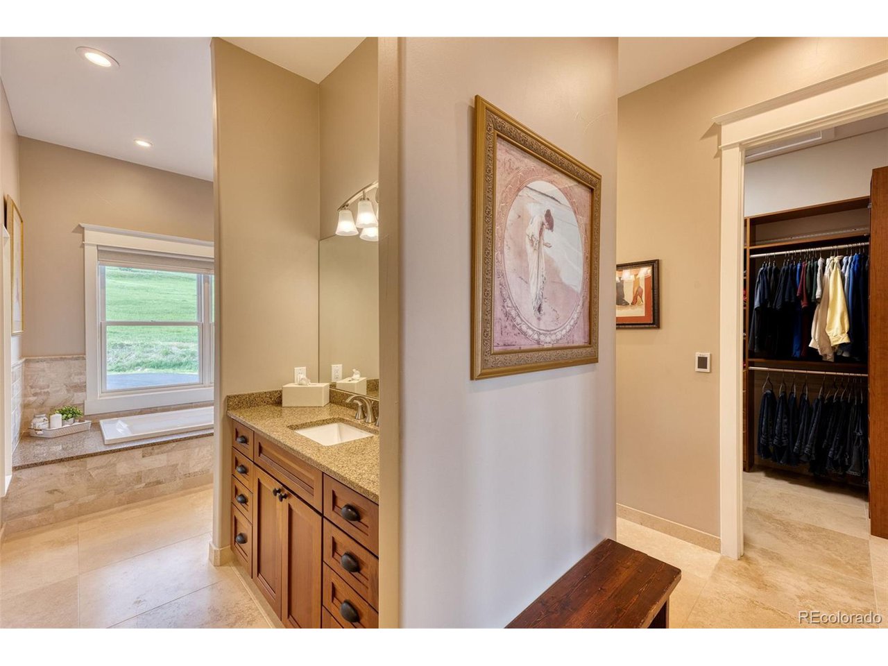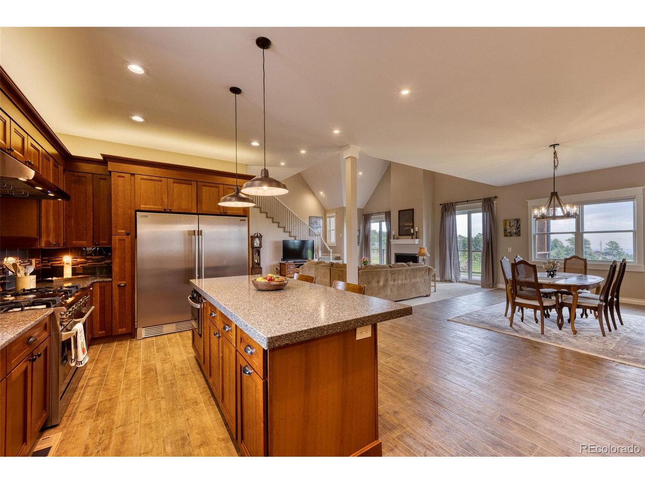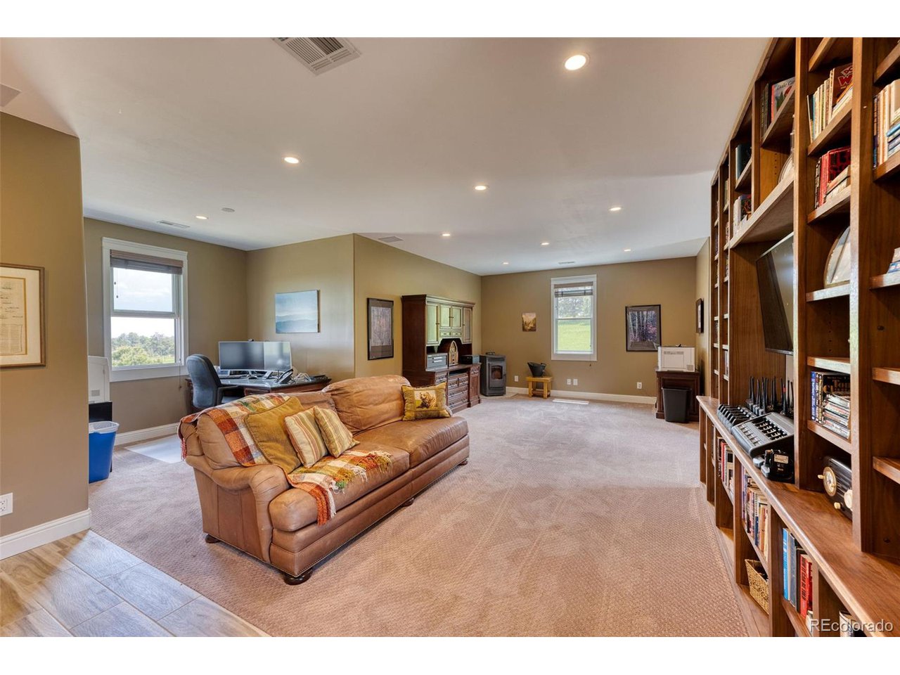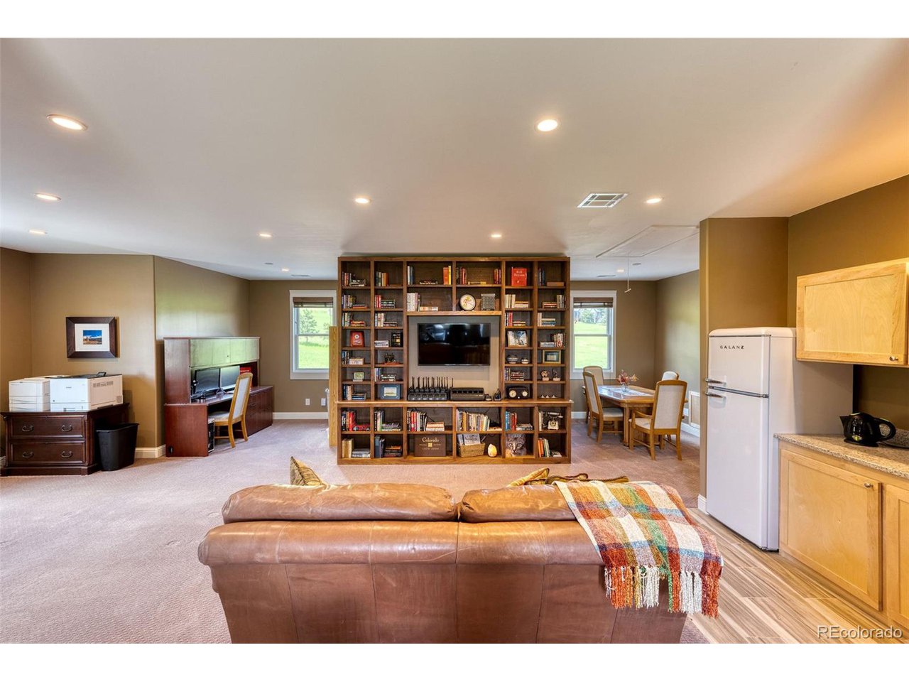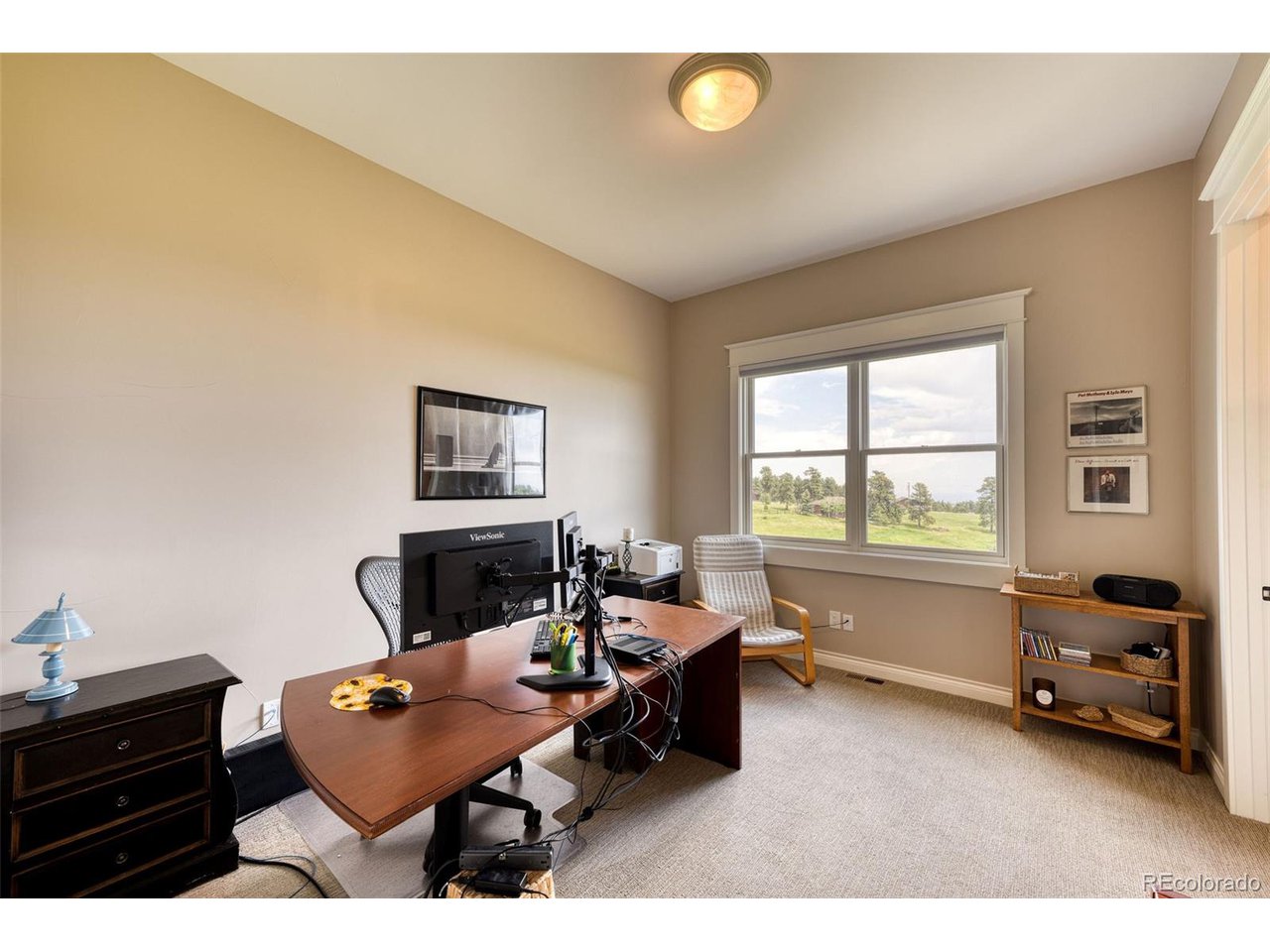 Mountain, meadow and city views. Additional Dwelling Unit or Mother in law suite above garage with private entrance. Situated at 8,200 ft, this home overlooks the twinkly city lights of Denver and surrounding cities in a beautiful mountain meadow which is home to abundant flora and fauna year-round. Built in 2018 by SonPointe Homes Builders, no detail was spared in it's construction. Every room features 10 ft ceilings and doors with molding details which gives the home a true, custom, high quality feel. Kitchen offers a large walk-in custom butlers pantry, custom cabinetry, granite counters and large kitchen island, great for entertaining guests or accommodating large gatherings. Vaulted ceilings in the spacious living area with stunning views of mountains, city and quaint neighboring pond. Large deck with plenty of room for your own personal touches. Windows are doors were all done using Sierra Pacific windows and doors with Low E glass. Step into your own private oasis with the primary suites vaulted ceilings, his and hers walk-in closets with custom organization, large soaking tub, dual sinks, and heated multi-head shower with detailed custom tile. Floors in all six bathrooms have programable heat thermostats. Tankless water heater, 120,000 btu propane furnace with 3.5T air conditioner. Enjoy the 35 foot deep 4 car heated garage for your cars and toys with an additional 50' RV pedestal with full 50A service, water and waste dump, 50 x 100 pad. Above the garage is an 950 sqft ADU with kitchenette, dining area, custom shelving, and cozy pellet stove. This flex space would be excellent for a mother in-law suite, guest house, office with private entrance. Every bedroom has it's own bathroom with plenty of closet space. Loft above living area includes cat walk with seating area and/or library. Upstairs bedroom would be great for another private office or crafting room with a huge walk-in closet and full bathroom. Huge unfinished walk-out basement.