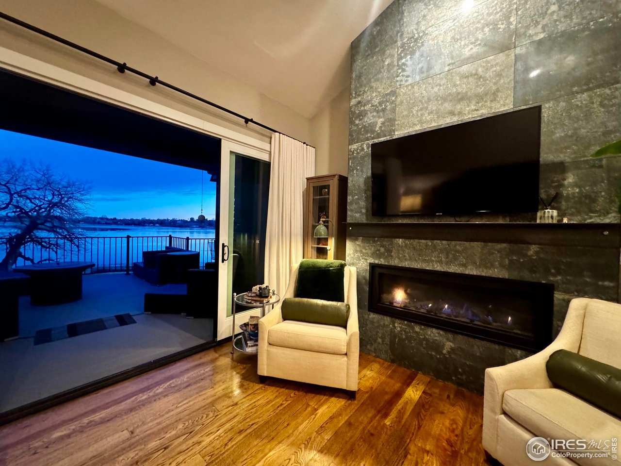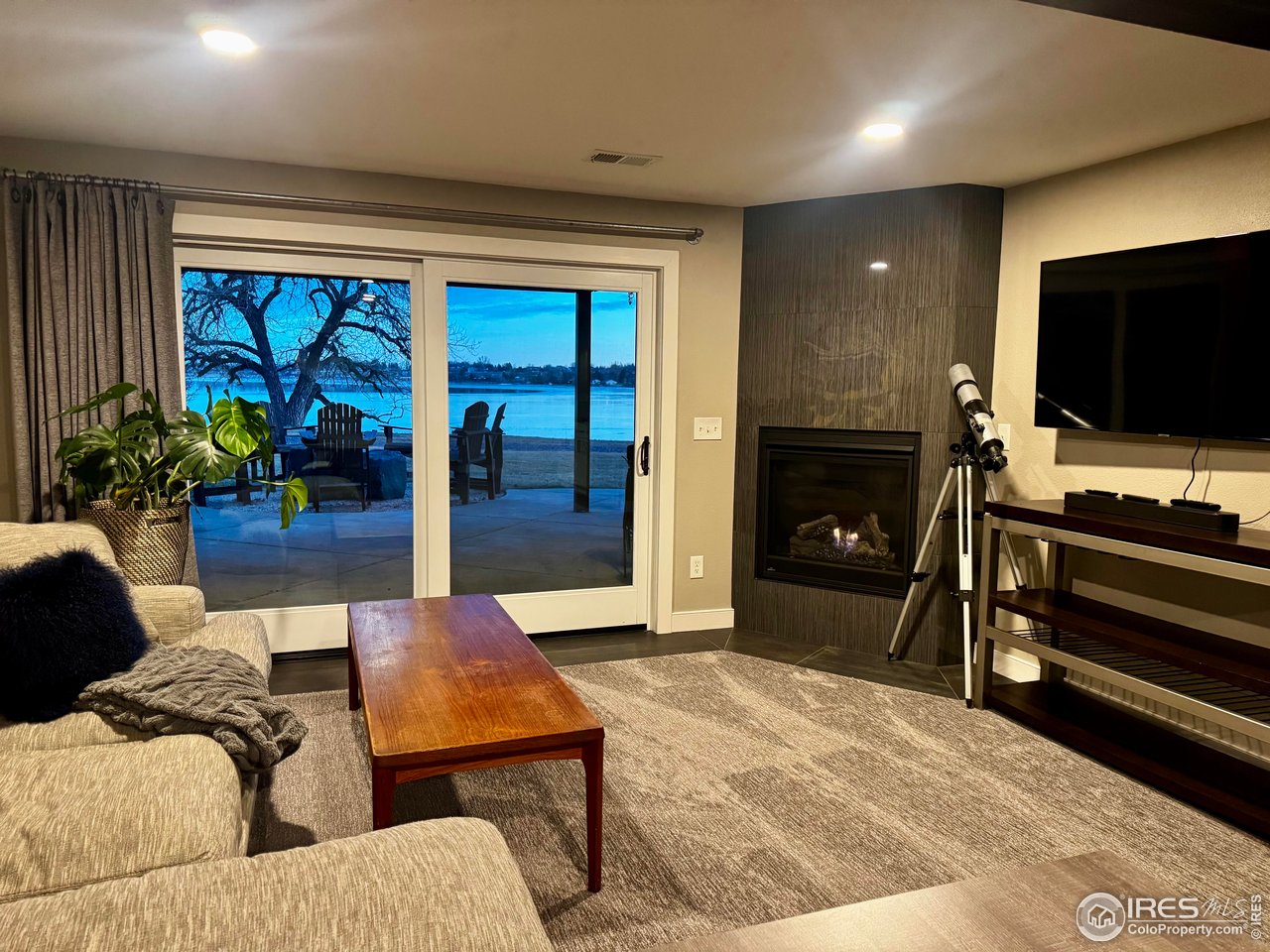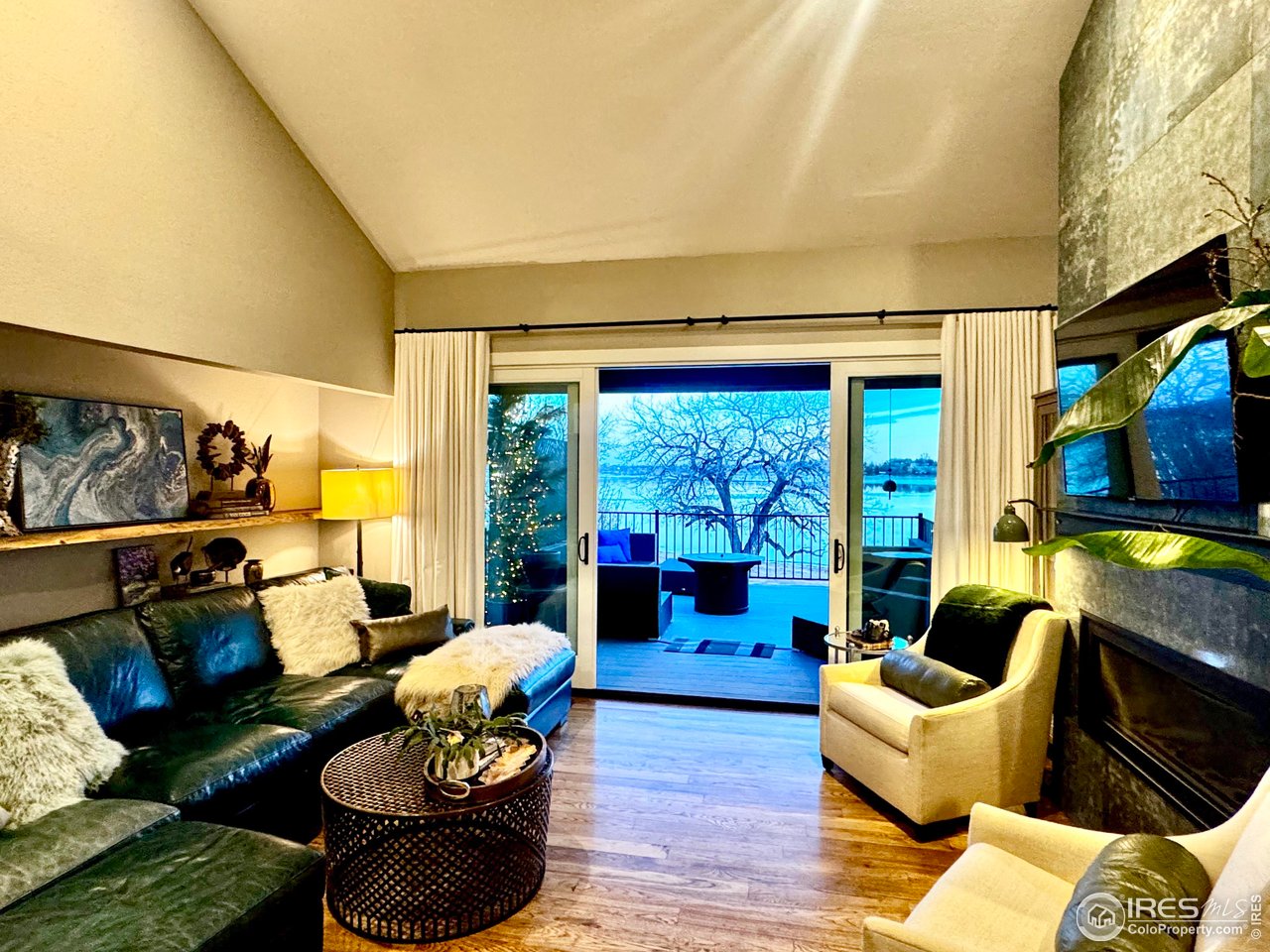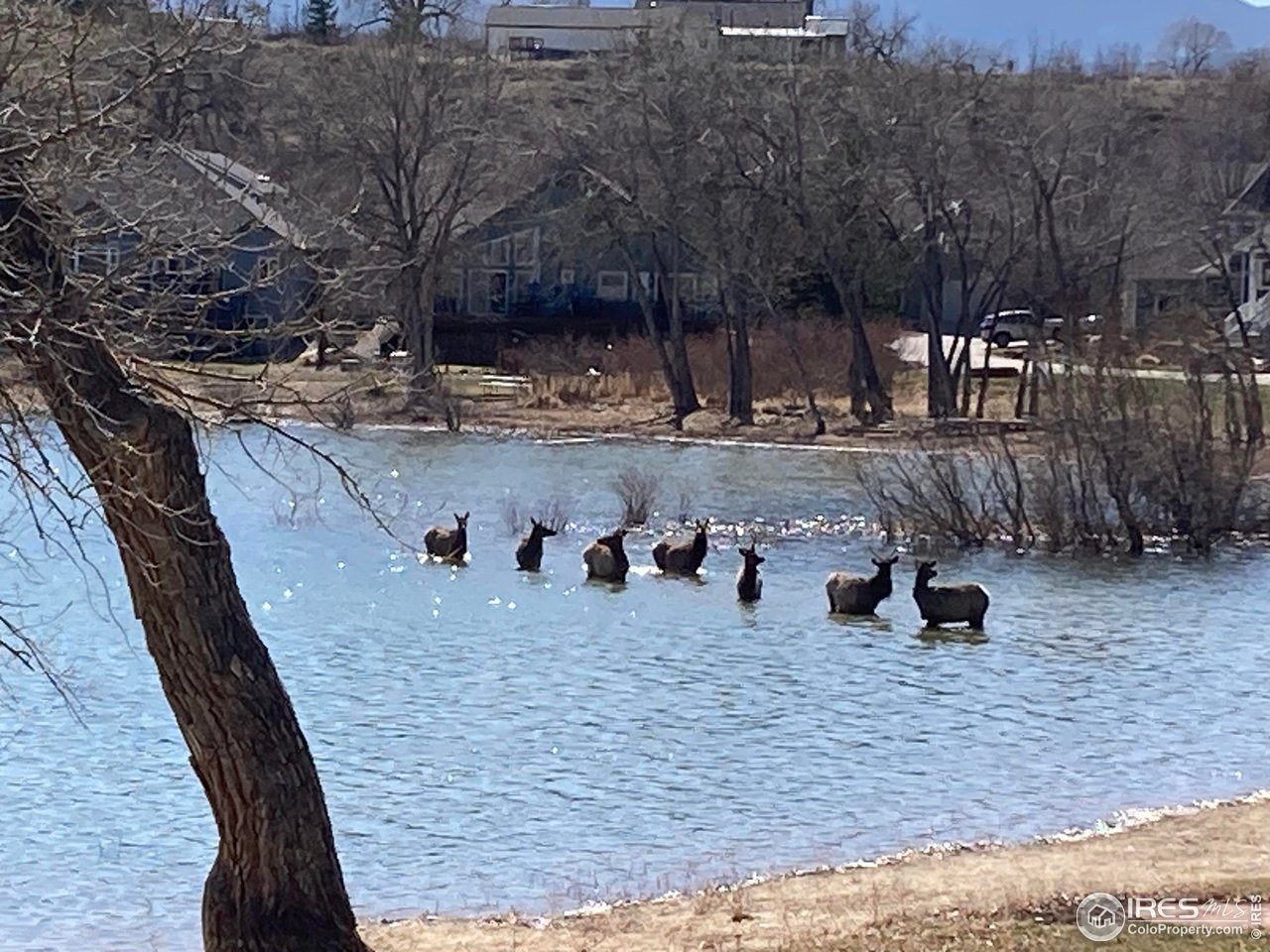 Perfectly positioned on the shores of Boedecker Reservoir, this home is a professionally designed, fully renovated lakefront, Patio Home retreat. Refined craftsmanship, and an unmatched connection to nature-just minutes from all of Loveland's amenities. This home truly lives like an indoor/outdoor lake house.The light-filled main level features vaulted ceilings in the great room and primary suite capturing stunning lake views. The great room is anchored by a gas fireplace and flows seamlessly into the dining area and professionally designed chef's dream kitchen, where incredible updates maximize both style and storage. 3 sets of oversized sliding doors open to the wraparound deck, with updated railings that preserve sightlines and bring the outdoors in. The main-level owner's suite is a peaceful sanctuary with vaulted ceilings, deck access, and water views. A walk-in closet with a live-edge sliding door adjoins the luxury 5-piece primary bath, complete with a marble shower and a spa-like soaking tub. A 2nd bedroom, full bath, and mudroom (with laundry hookups) complete the main level. The finished walk-out basement continues the home's professionally designed feel, featuring a large rec room with a 2nd gas fireplace and a wet bar with live-edge counter. Sliding doors open to the backyard, creating effortless indoor/outdoor living. 2 additional bedrooms, a stylish 3/4 bath, and a laundry room complete the lower level. Outside, enjoy a beautiful backyard with a hot tub, gas firepit, and direct access to the walking path. Exclusive rights have been purchased to build a private boat dock behind the home. Watch wildlife from your windows or deck. Every inch of the home has been completely and professionally updated. This includes drywall, doors, windows, deck, and all hard finishes. Designed to live beautifully in all 4 seasons, this home delivers breathtaking sunrises, sunsets, and provides a rare lakefront lifestyle that feels both luxurious and connected to nature.