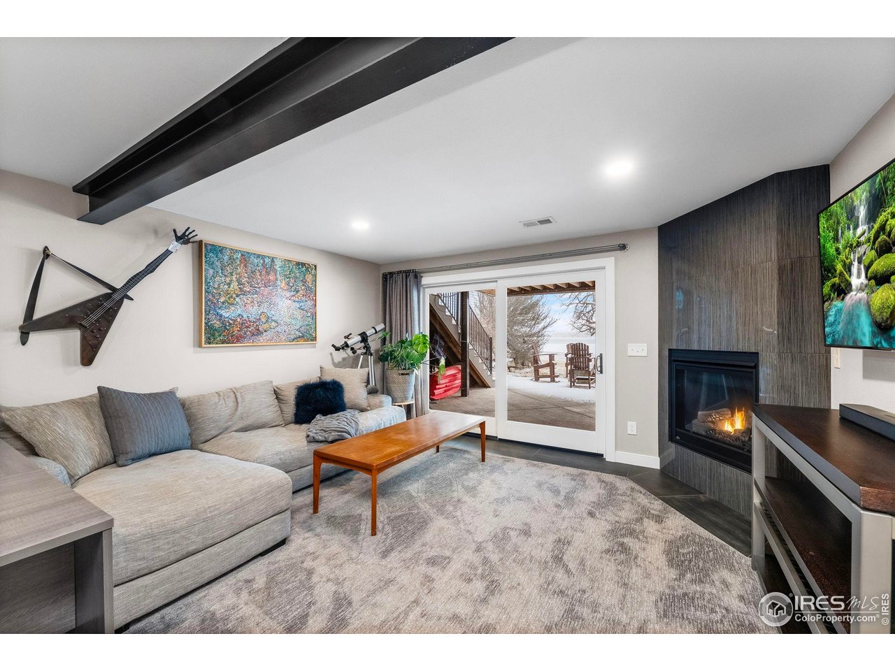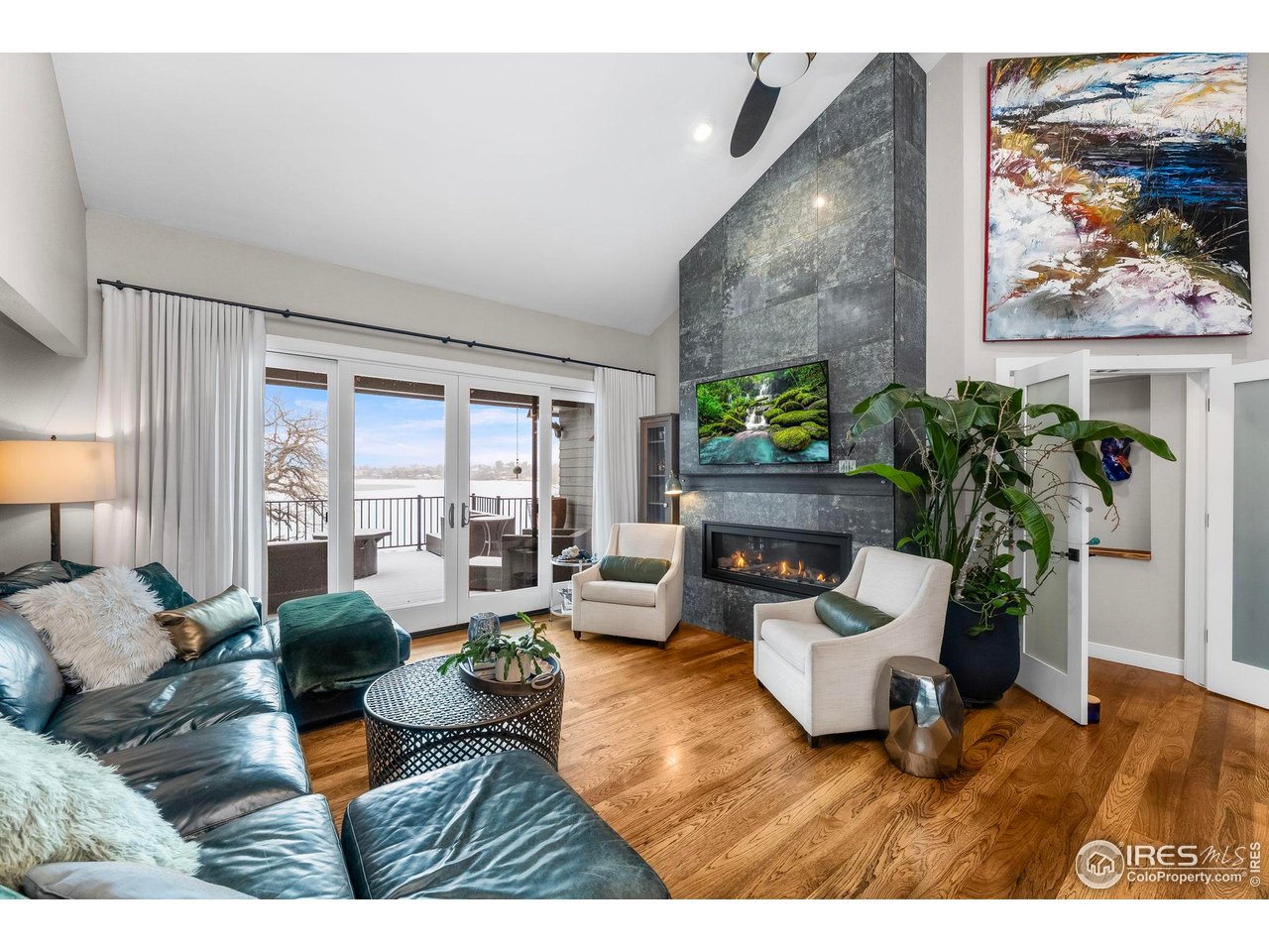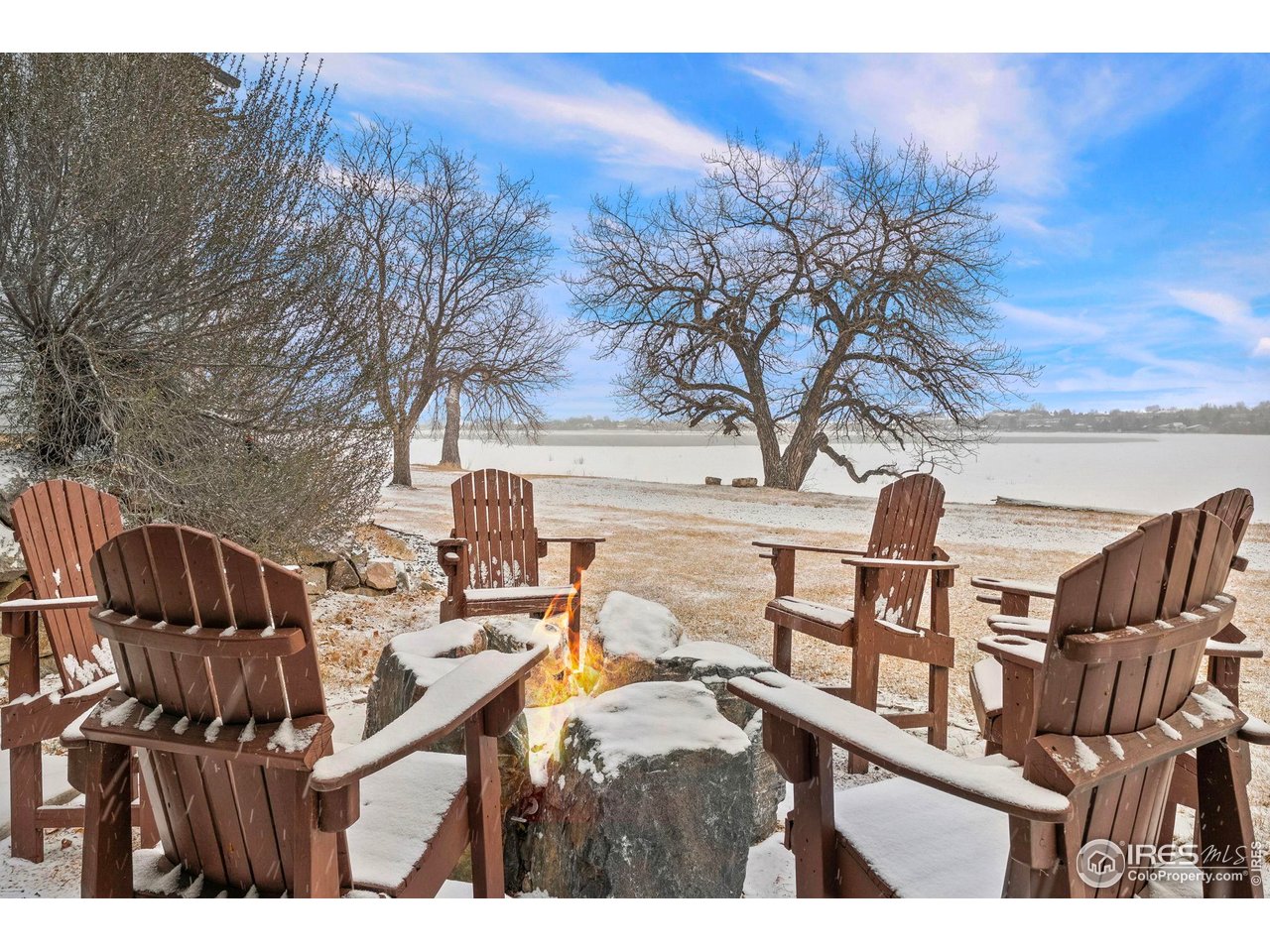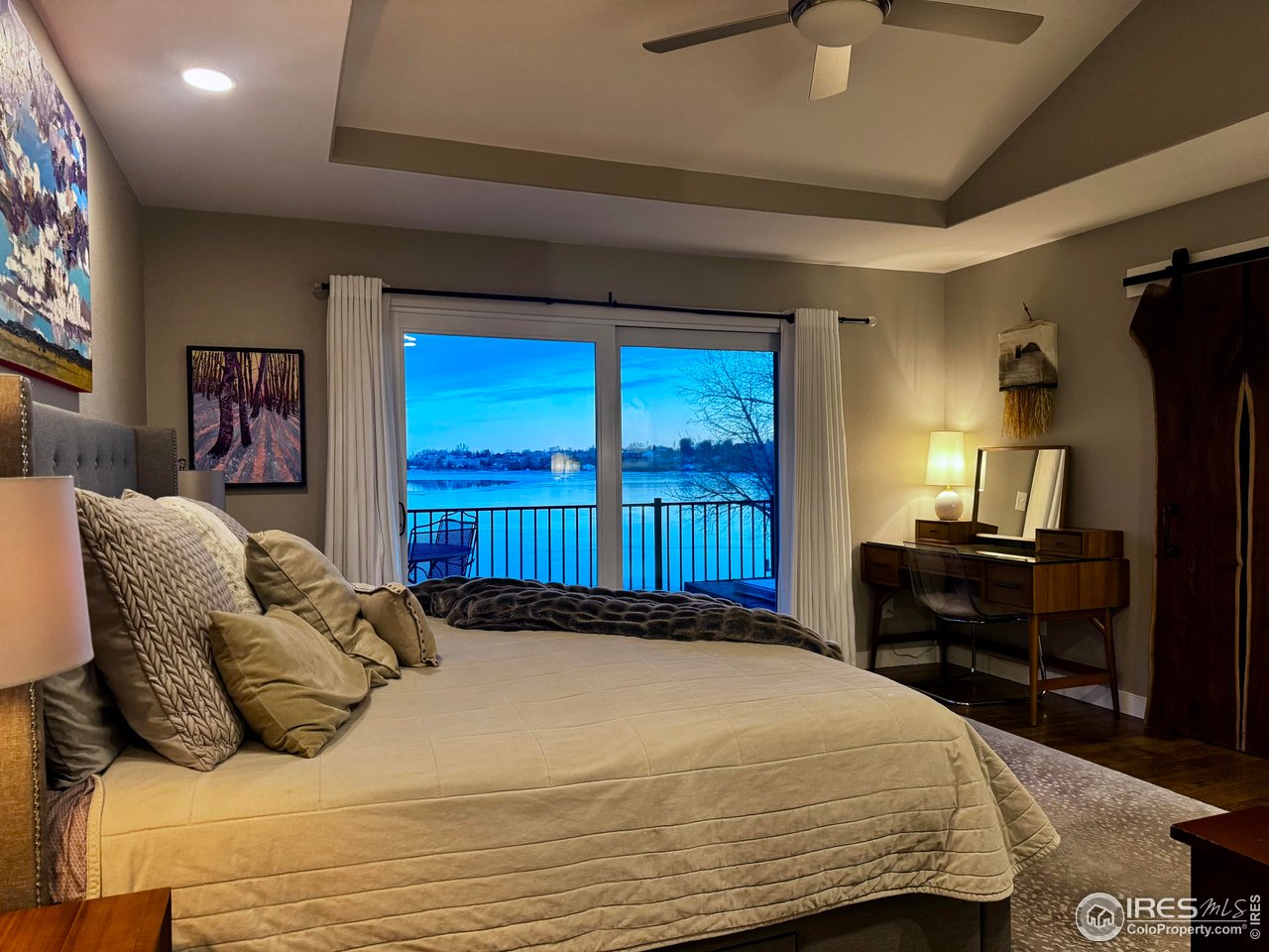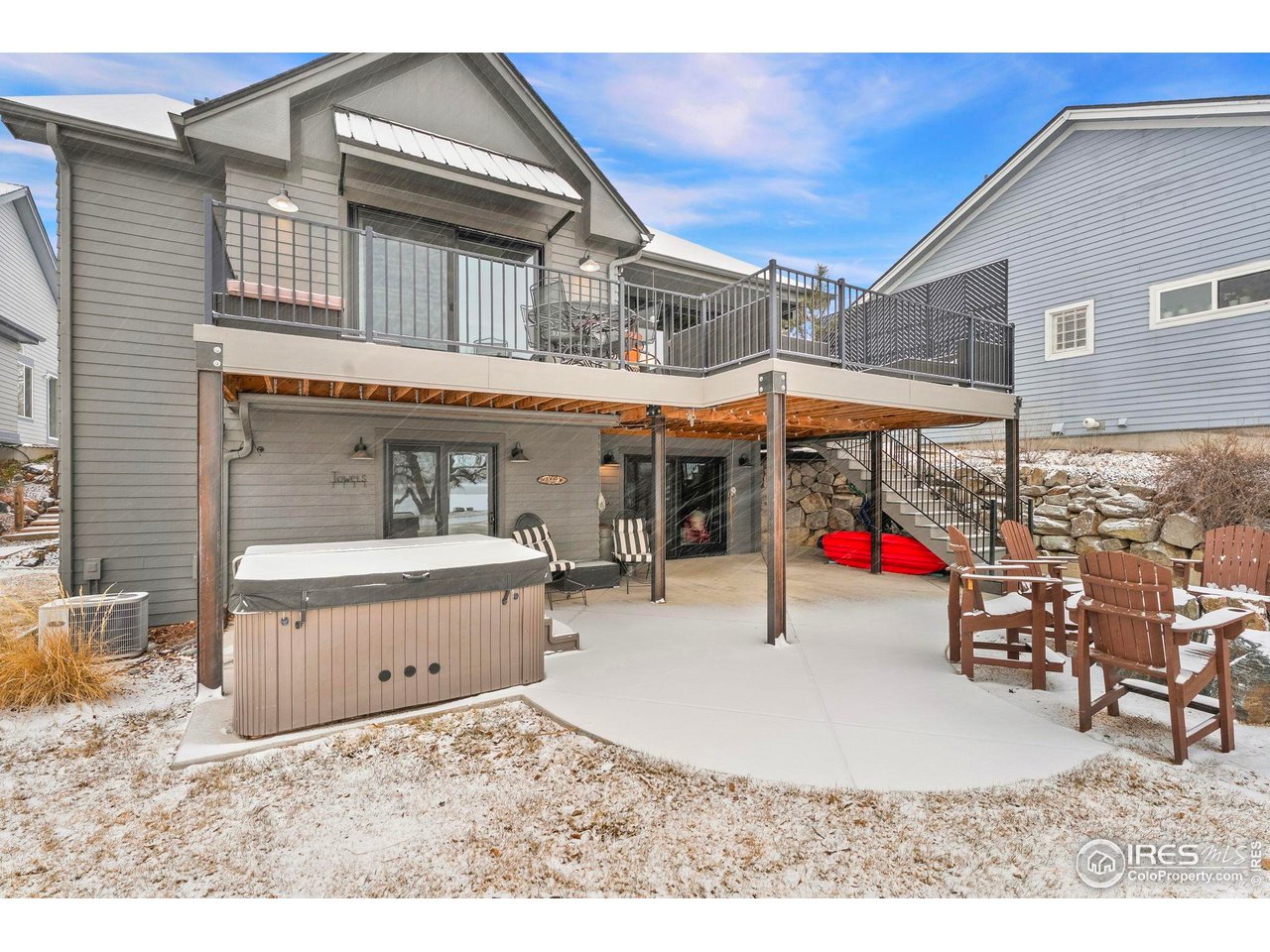Perfectly positioned on the shores of Boedecker Reservoir, this home is a professionally designed, fully renovated lakefront, Patio Home retreat. Refined craftsmanship, and an unmatched connection to nature-just minutes from all of Loveland's amenities. This home truly lives like an indoor/outdoor lake house.The light-filled main level features vaulted ceilings in the great room and primary suite capturing stunning lake views. The great room is anchored by a gas fireplace and flows seamlessly into the dining area and professionally designed chef's dream kitchen, where incredible updates maximize both style and storage. 3 sets of oversized sliding doors open to the wraparound deck, with updated railings that preserve sightlines and bring the outdoors in. The main-level owner's suite is a peaceful sanctuary with vaulted ceilings, deck access, and water views. A walk-in closet with a live-edge sliding door adjoins the luxury 5-piece primary bath, complete with a marble shower and a spa-like soaking tub. A 2nd bedroom, full bath, and mudroom (with laundry hookups) complete the main level. The finished walk-out basement continues the home's professionally designed feel, featuring a large rec room with a 2nd gas fireplace and a wet bar with live-edge counter. Sliding doors open to the backyard, creating effortless indoor/outdoor living. 2 additional bedrooms, a stylish 3/4 bath, and a laundry room complete the lower level. Outside, enjoy a beautiful backyard with a hot tub, gas firepit, and direct access to the walking path. Exclusive rights have been purchased to build a private boat dock behind the home. Watch wildlife from your windows or deck. Every inch of the home has been completely and professionally updated. This includes drywall, doors, windows, deck, and all hard finishes. Designed to live beautifully in all 4 seasons, this home delivers breathtaking sunrises, sunsets, and provides a rare lakefront lifestyle that feels both luxurious and connected to nature.