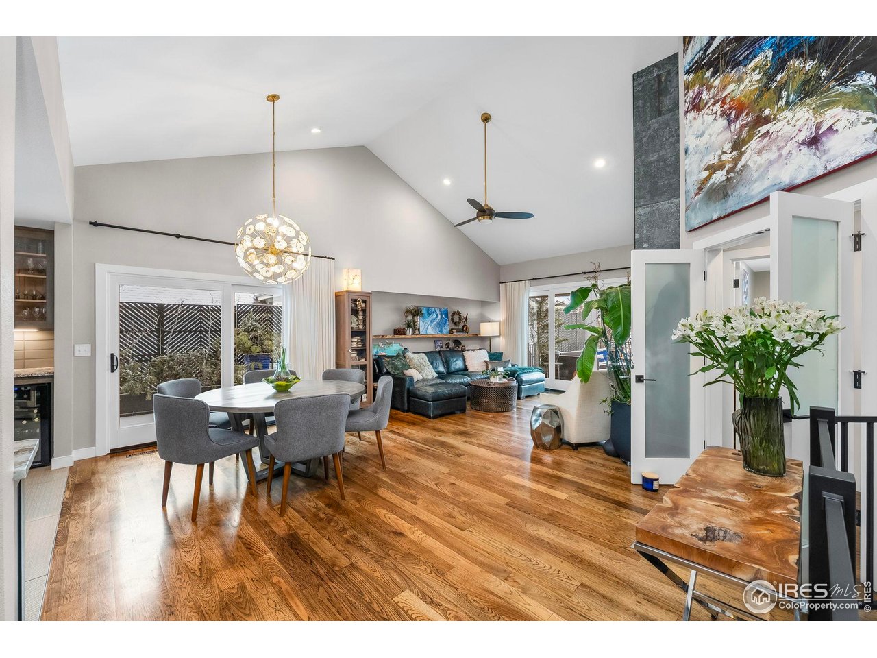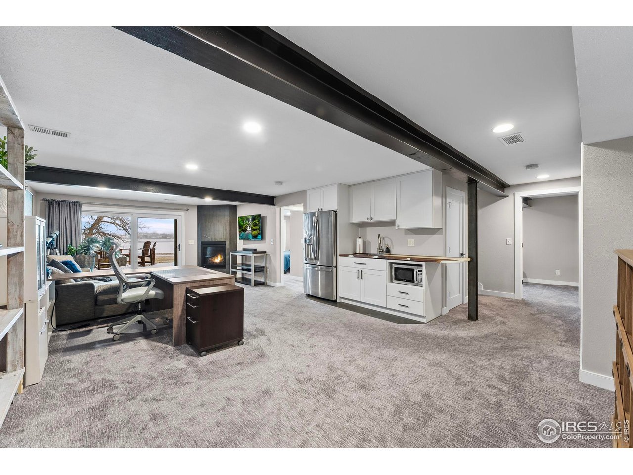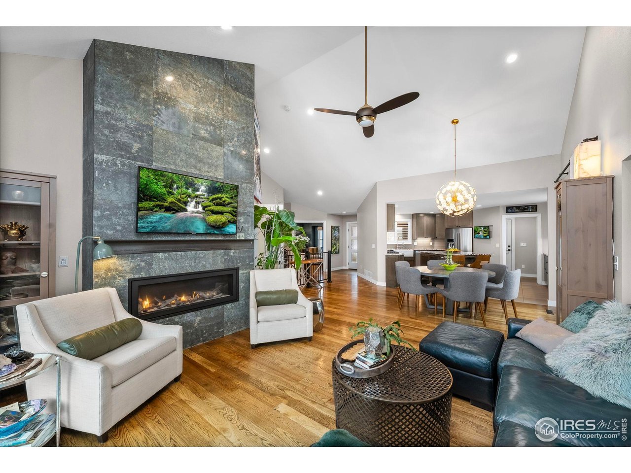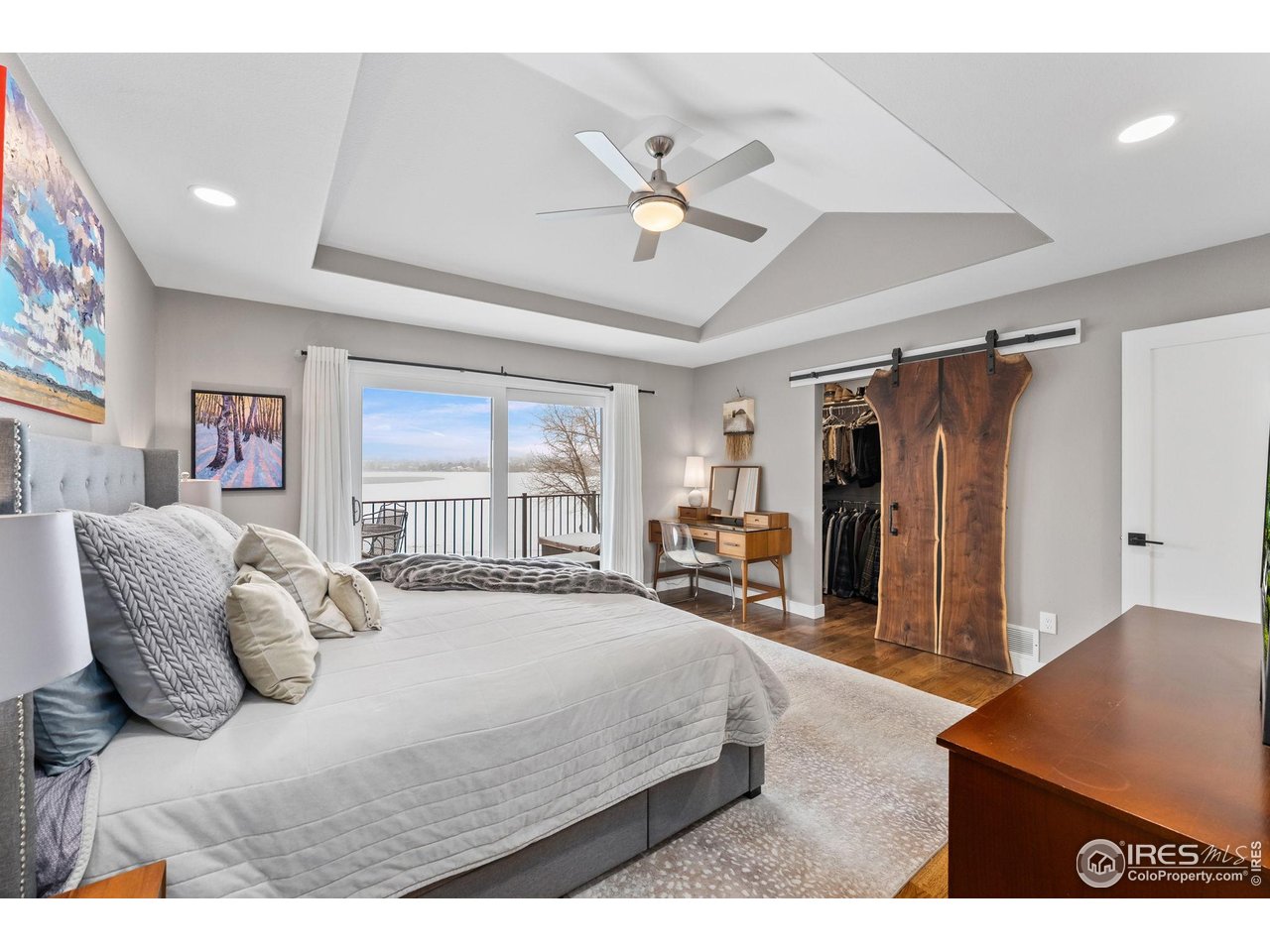 Perfectly positioned on the shores of Boedecker Reservoir, this home is a professionally designed, fully renovated lakefront, Patio Home retreat. Refined craftsmanship, and an unmatched connection to nature-just minutes from all of Loveland's amenities. This home truly lives like an indoor/outdoor lake house.The light-filled main level features vaulted ceilings in the great room and primary suite capturing stunning lake views. The great room is anchored by a gas fireplace and flows seamlessly into the dining area and professionally designed chef's dream kitchen, where incredible updates maximize both style and storage. 3 sets of oversized sliding doors open to the wraparound deck, with updated railings that preserve sightlines and bring the outdoors in. The main-level owner's suite is a peaceful sanctuary with vaulted ceilings, deck access, and water views. A walk-in closet with a live-edge sliding door adjoins the luxury 5-piece primary bath, complete with a marble shower and a spa-like soaking tub. A 2nd bedroom, full bath, and mudroom (with laundry hookups) complete the main level. The finished walk-out basement continues the home's professionally designed feel, featuring a large rec room with a 2nd gas fireplace and a wet bar with live-edge counter. Sliding doors open to the backyard, creating effortless indoor/outdoor living. 2 additional bedrooms, a stylish 3/4 bath, and a laundry room complete the lower level. Outside, enjoy a beautiful backyard with a hot tub, gas firepit, and direct access to the walking path. Exclusive rights have been purchased to build a private boat dock behind the home. Watch wildlife from your windows or deck. Every inch of the home has been completely and professionally updated. This includes drywall, doors, windows, deck, and all hard finishes. Designed to live beautifully in all 4 seasons, this home delivers breathtaking sunrises, sunsets, and provides a rare lakefront lifestyle that feels both luxurious and connected to nature.