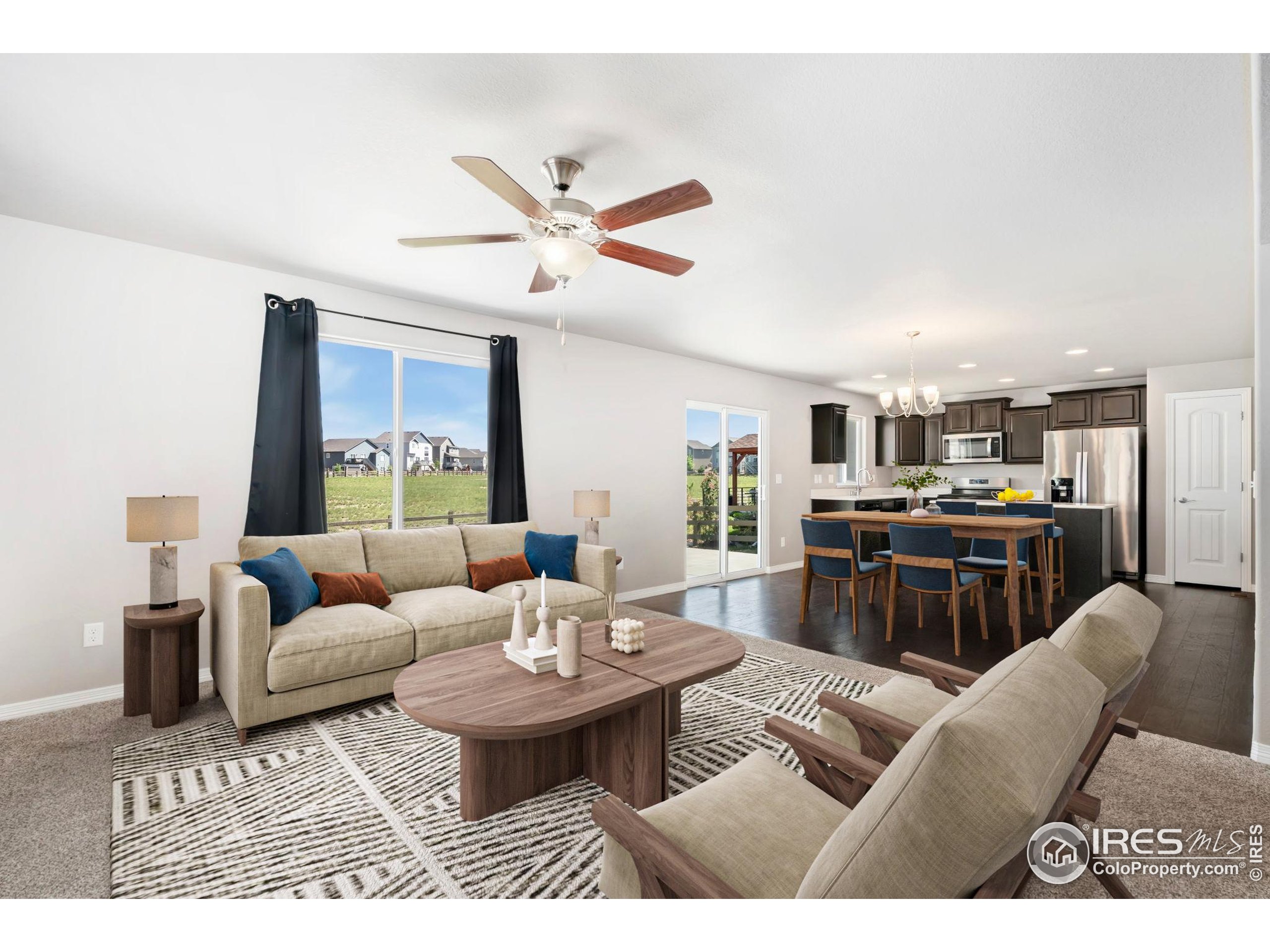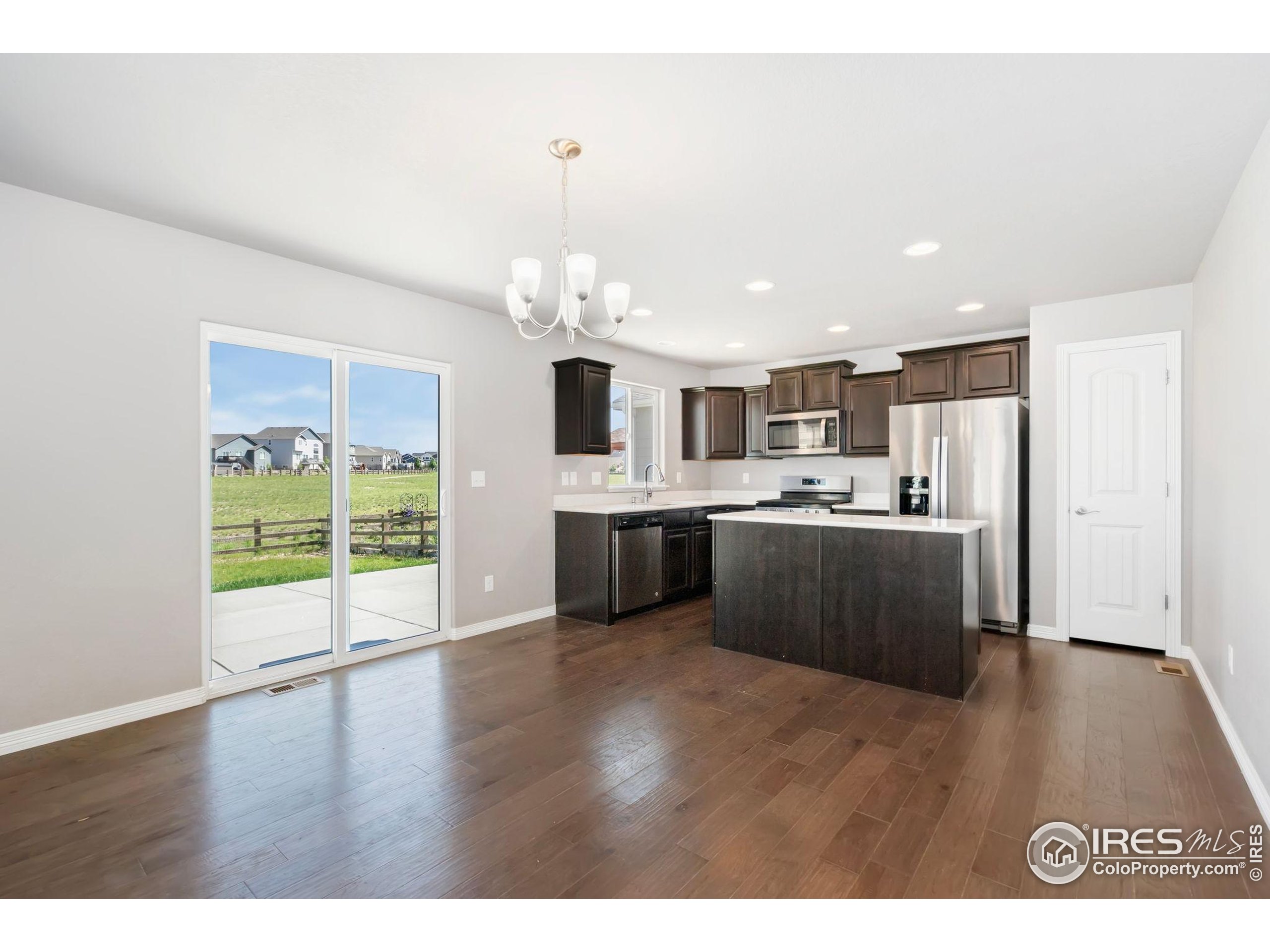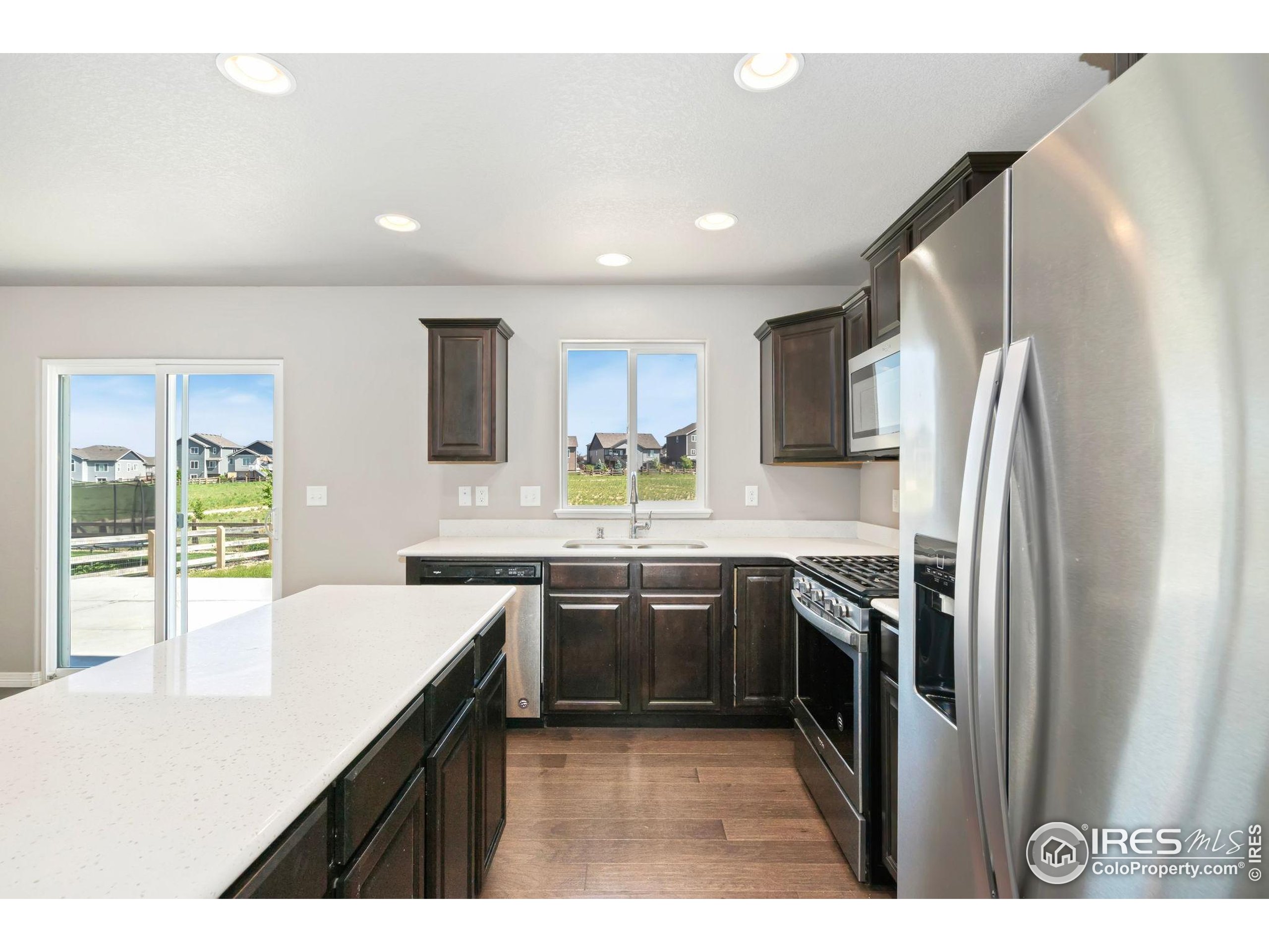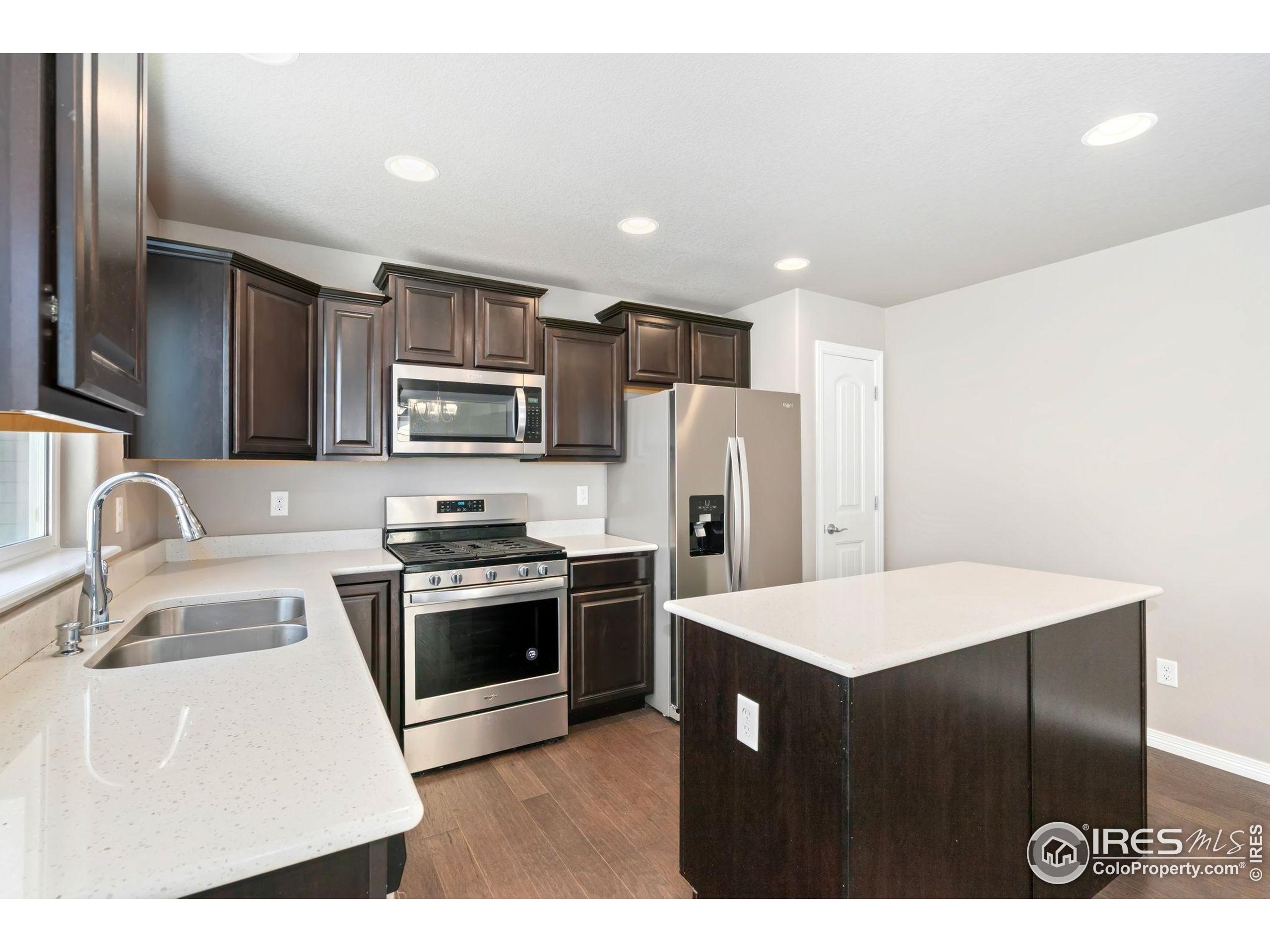 Welcome to 5562 Bristow Road in the charming community of Timnath. This beautifully maintained 4-bedroom, 2.5-bathroom home offers a bright and open two-story floor plan, perfect for modern living. The main level features a spacious kitchen, dining area, and living room, all designed for seamless flow and entertaining. The kitchen is outfitted with sleek quartz countertops, stainless steel appliances and hardwood flooring, creating a stylish and functional heart of the home. Large windows throughout the house fill the space with natural light, enhancing the home's warm and inviting atmosphere. A convenient half bathroom is also located on the main floor. Upstairs, the expansive primary suite offers a walk-in closet and a full en-suite bathroom, while three additional bedrooms share another full bathroom. The laundry room is thoughtfully located on the upper level for added convenience. The full, unfinished basement offers excellent storage space and potential for future expansion. Outside, the backyard backs to open space and scenic trails, providing privacy and access to nature right out your door. This home is in excellent condition and ideally located in a peaceful neighborhood with quick access to local amenities.