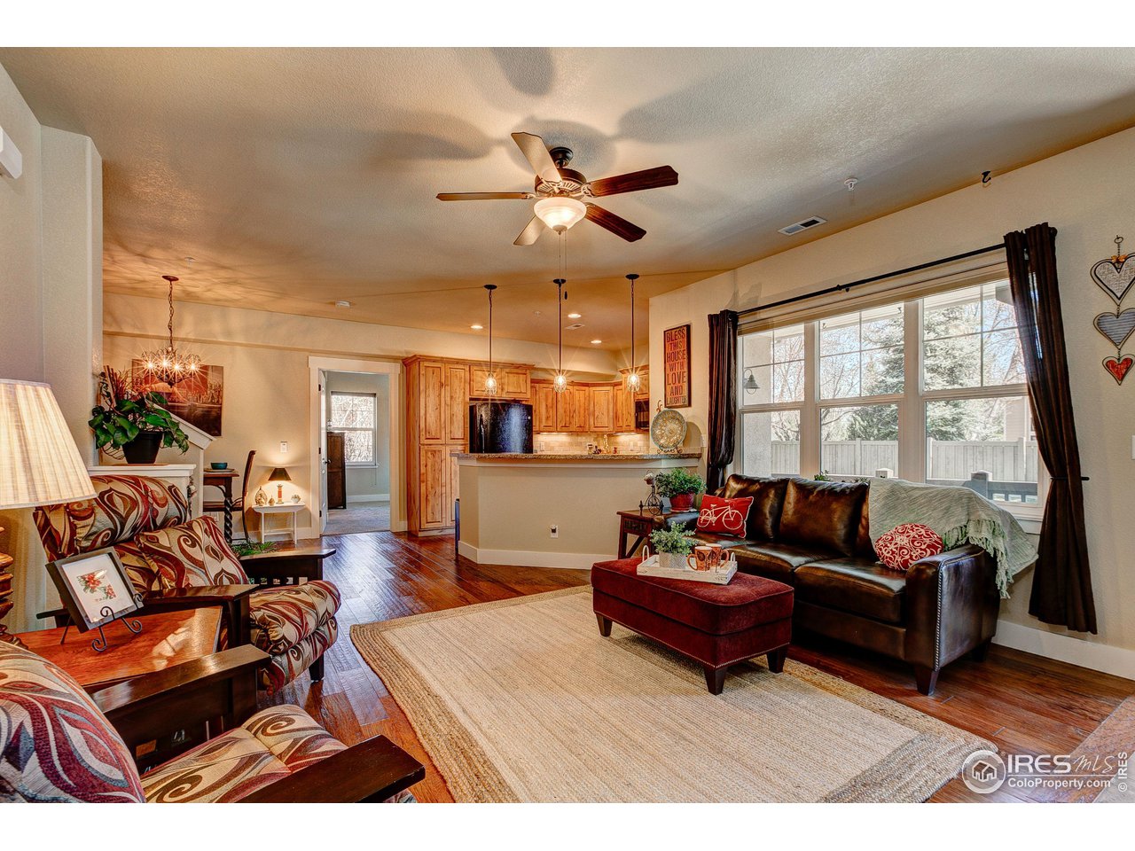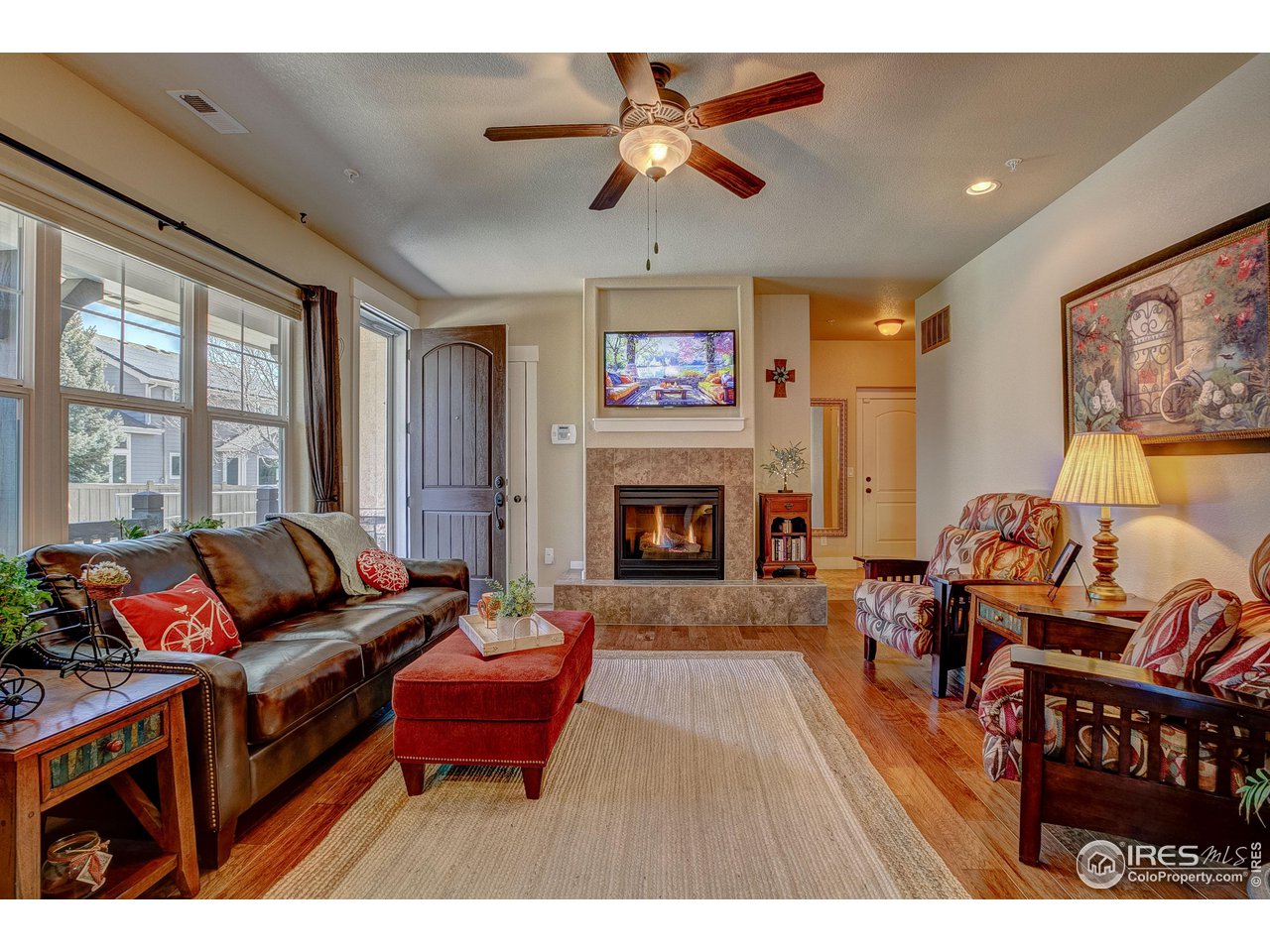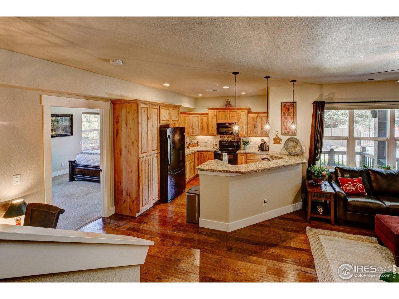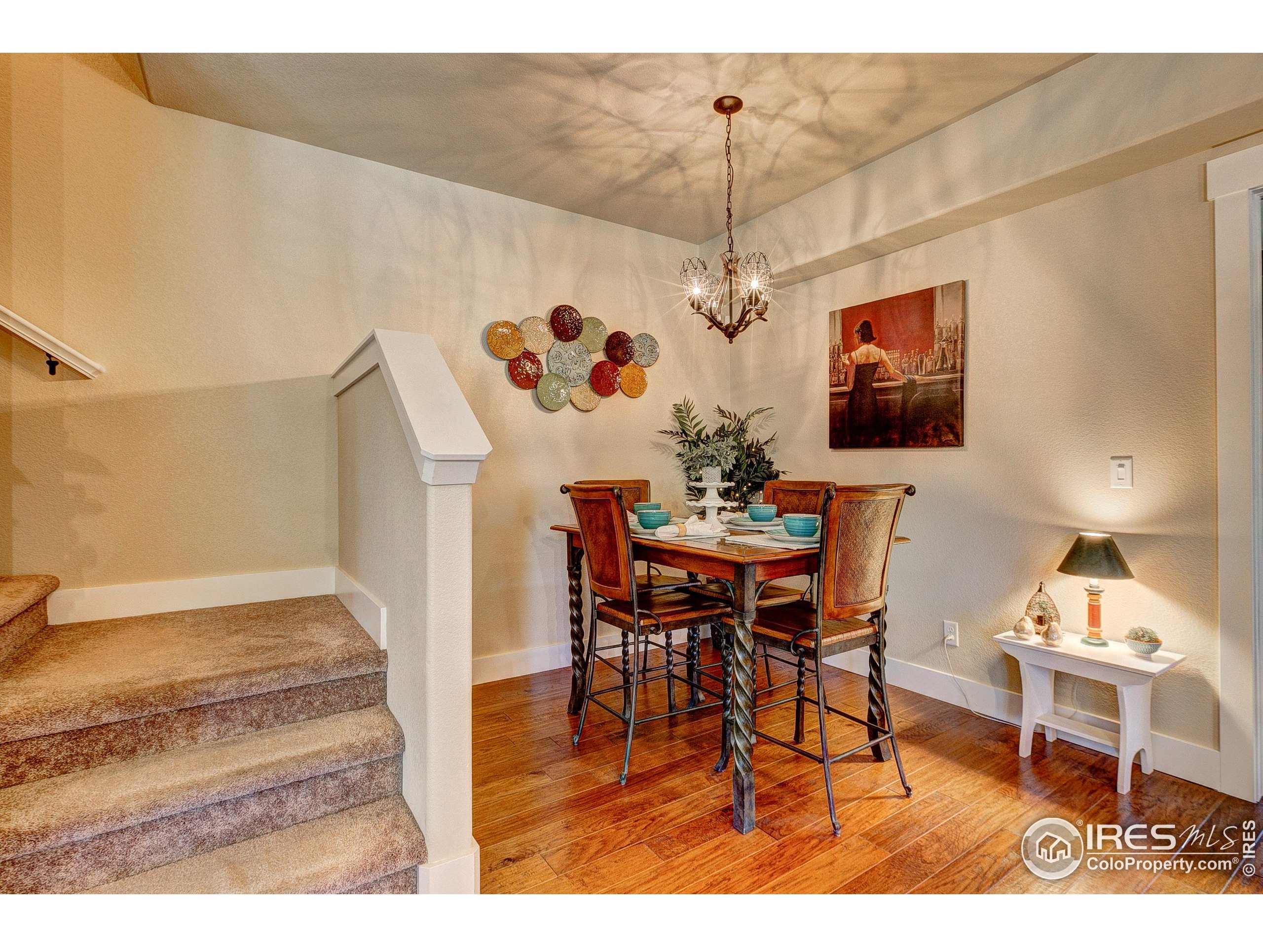 Exquisite! Impeccably maintained, luxury condo in one of SE Ft. Collins' most prestigious neighborhoods! Quality built and loaded with upgraded features, located in the most desired location within the development. Tucked away for privacy with large grassy area and mature landscaping. This lovely condo boasts main level living with access front and back without stairs! Stunning hardwood floors throughout the kitchen, living and dining areas as well as the upstairs loft, hallway and craft room! The kitchen features "city scape" cabinets, granite counters, full stone back splash, under cabinet lighting, Copper sink, double oven and access door to the patio. The 2 car garage has direct access to the living space without out stairs. The large laundry/mud room area can be used as a pocket office or craft area. Check out the size of main level powder bath! Storage cabinet and granite counter. The main level primary is full of natural light with multiple windows, coffered ceiling and ceiling fan. The attached primary bath has an elevated, 2 sink cabinet, walk-in shower w/bench and 2 shower heads and attached closet. Upstairs has a loft area, 2 large bedrooms with Jack and Jill bath between. The bathroom has a linen closet, 2 medicine cabinets and a separate room for tub/shower and toilet. The basement is completely finished by the builder as a HUGE living space! There is a rough-in for an additional bath at the bottom of the stairway. The large egress windows allow for 2 additional bedrooms if desired. The furnace is newer and radon mitigation is installed. No pets have ever lived in this pristine home. Perfect for your lock and leave lifestyle, or plenty of room for the kids with quick access to schools. Pool membership is optional.
