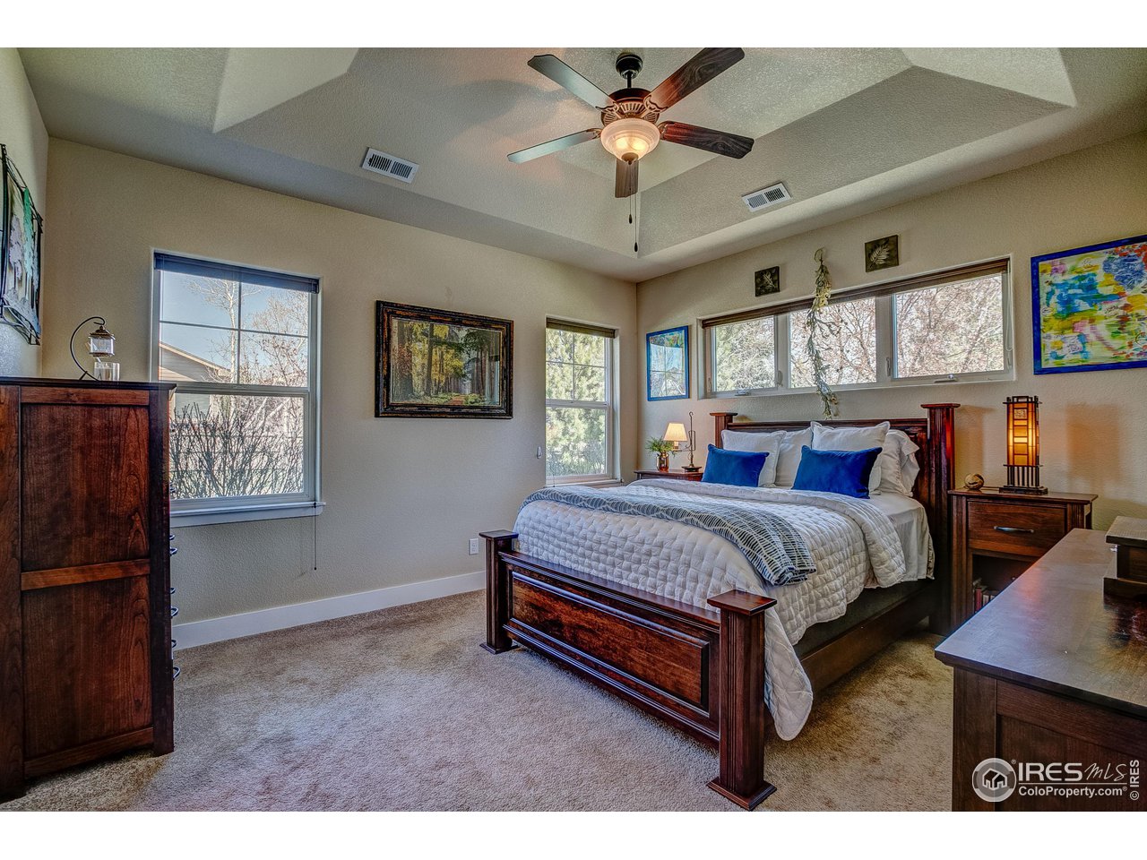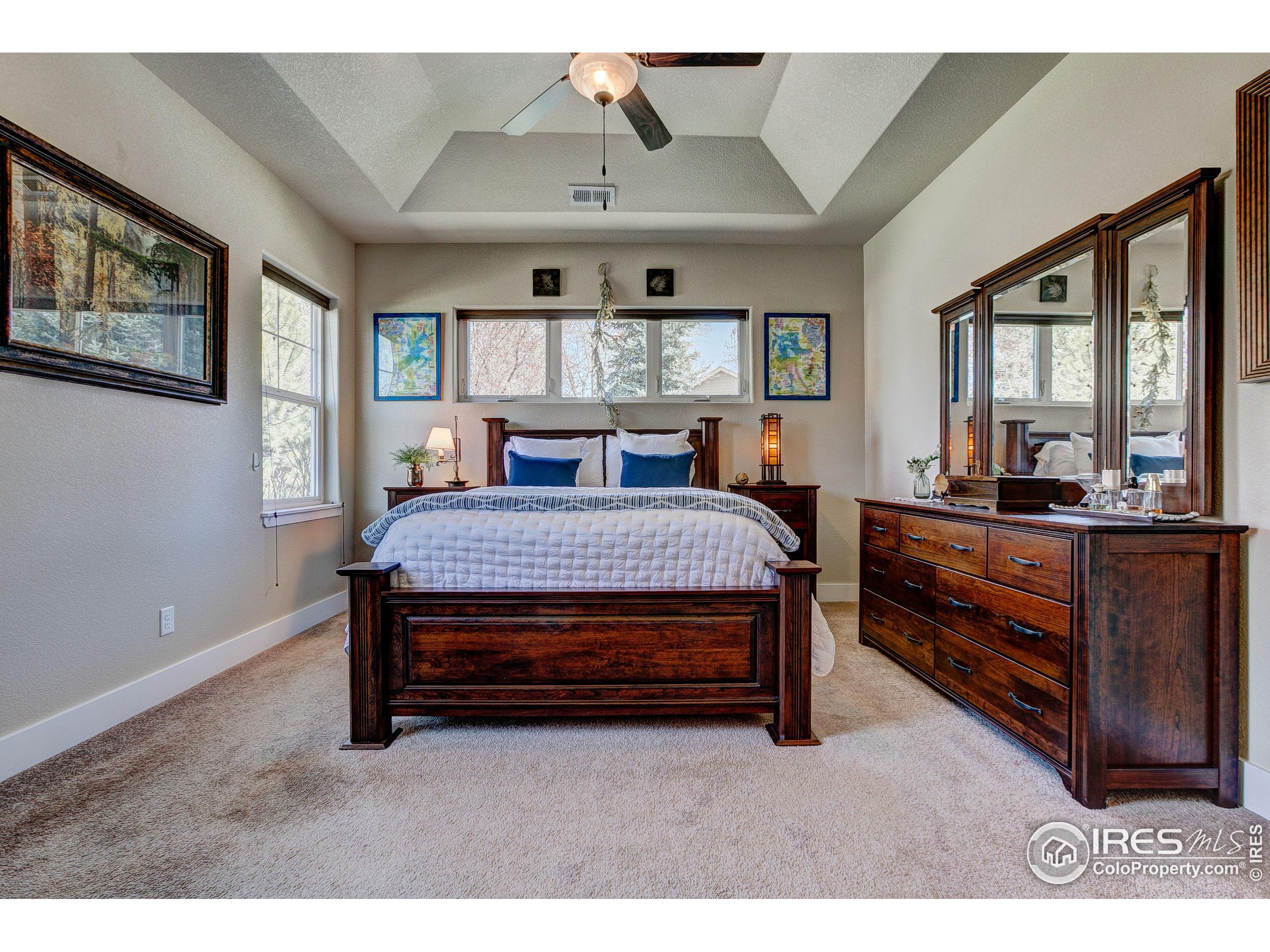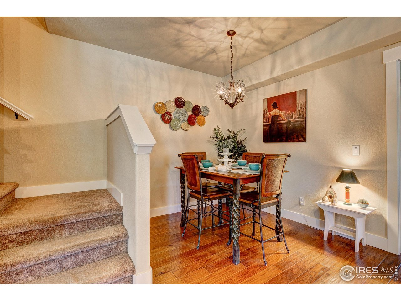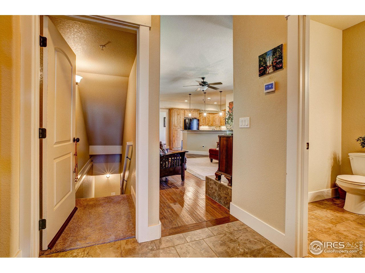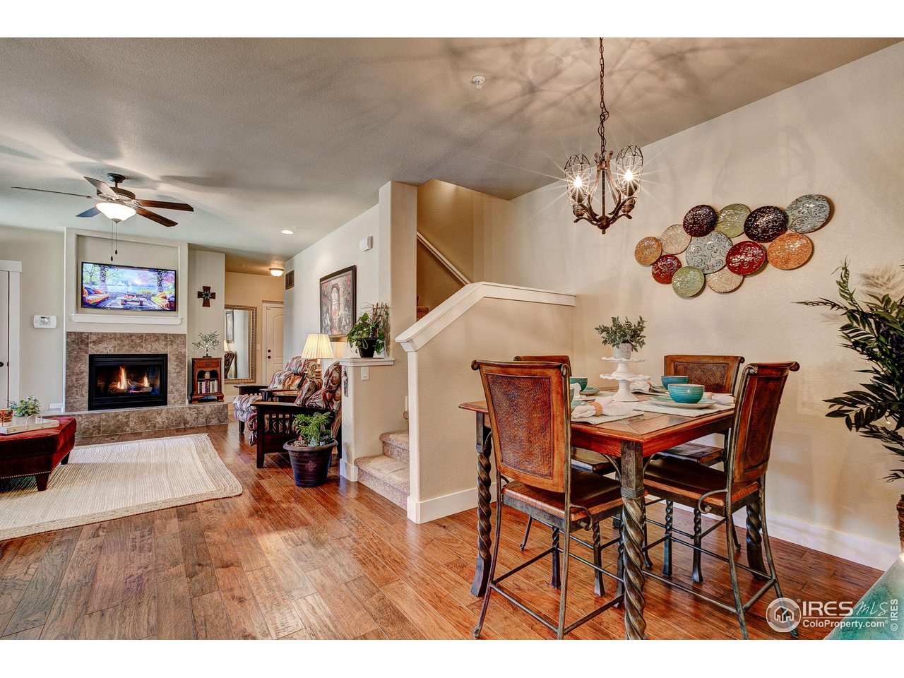 Exquisite! Impeccably maintained, luxury condo in one of SE Ft. Collins' most prestigious neighborhoods! Quality built and loaded with upgraded features, located in the most desired location within the development. Tucked away for privacy with large grassy area and mature landscaping. This lovely condo boasts main level living with access front and back without stairs! Stunning hardwood floors throughout the kitchen, living and dining areas as well as the upstairs loft, hallway and craft room! The kitchen features "city scape" cabinets, granite counters, full stone back splash, under cabinet lighting, Copper sink, double oven and access door to the patio. The 2 car garage has direct access to the living space without out stairs. The large laundry/mud room area can be used as a pocket office or craft area. Check out the size of main level powder bath! Storage cabinet and granite counter. The main level primary is full of natural light with multiple windows, coffered ceiling and ceiling fan. The attached primary bath has an elevated, 2 sink cabinet, walk-in shower w/bench and 2 shower heads and attached closet. Upstairs has a loft area, 2 large bedrooms with Jack and Jill bath between. The bathroom has a linen closet, 2 medicine cabinets and a separate room for tub/shower and toilet. The basement is completely finished by the builder as a HUGE living space! There is a rough-in for an additional bath at the bottom of the stairway. The large egress windows allow for 2 additional bedrooms if desired. The furnace is newer and radon mitigation is installed. No pets have ever lived in this pristine home. Perfect for your lock and leave lifestyle, or plenty of room for the kids with quick access to schools. Pool membership is optional.
