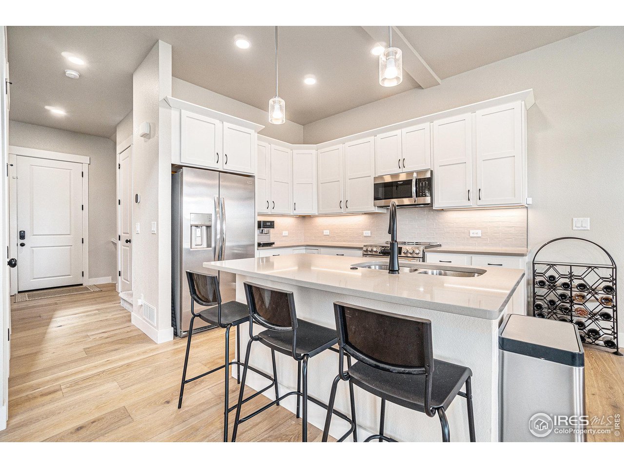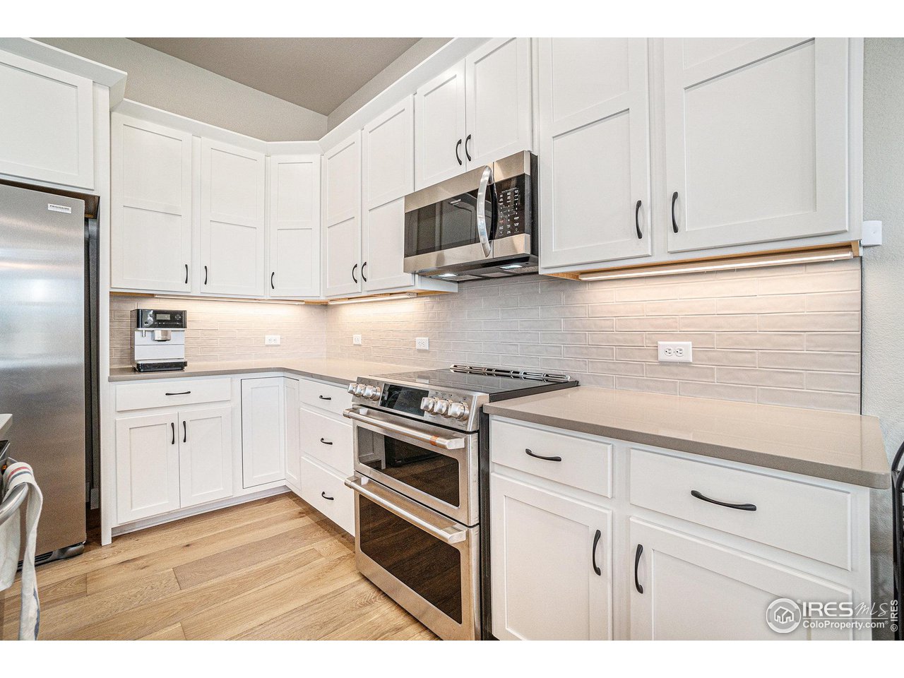 ***$25K Price Adjustment! This represents a $30K+ discount vs. new construction in Highland Meadows WITHOUT the 9 month build time!*** Gorgeously appointed end-unit luxury Townhome in desirable Highland Meadows! Walking distance to Highland Meadows Golf Course/Driving Range, Pizza Vino, Raf's Tavern and large protected natural area. Embrace low maintenance living with upscale finishes, as this unit is complete with high-end updates including new European oak wide plank flooring throughout the main level and upstairs loft area, fully updated kitchen including stainless steel appliances (and upgraded induction/double convection oven range), tile backsplash and foot pedal faucet actuator for kitchen sink. The improvements don't stop there as this meticulously cared-for home also boasts a whole house air purifier, 20a electric outlet upgrade in unfinished basement, and poly coated floor along with Tesla electric car charger in oversized 2 car garage. Aside from the interior updates, luxury ruminates throughout the home with 3 very spacious bedrooms and towering, vaulted ceilings in the main living room expanding to the 26' wide loft/bonus area on the top level. Close enough to zip right onto I-25 with enough distance to avoid any highway noise and an incredible opportunity to purchase a newer unit without the build time and add-on costs of new construction. Welcome to the confluence of elegance and affordability!