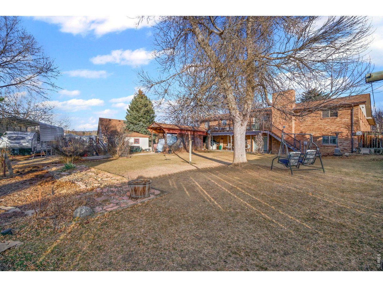 Welcome to 706 Filbert Drive in Loveland-a spacious ranch-style home on a .44-acre lot backing to expansive open space with sweeping mountain views, beautifully framing Longs Peak. Offering abundant square footage and exceptional indoor and outdoor living areas, this property combines space, flexibility, and unforgettable scenery. The main floor features beautiful bamboo wood flooring and a bright, open layout with both a living room and a separate family room-ideal for entertaining or everyday living. The kitchen flows seamlessly into the dining area, creating an inviting gathering space. The primary bedroom and two additional bedrooms are conveniently located on the main level. The fully finished walkout basement dramatically expands the home's living space, offering a large rec room, multiple office or flex areas, two non-conforming bedrooms, and a second kitchen complete with an oven, microwave, and sink. This versatile lower level provides exceptional flexibility for guests, hobbies, extended stays, or multi-generational living. Outside, the .44-acre lot includes a covered patio, deck, outdoor storage building, and a covered carport ideal for RVs, boats, or additional vehicles. A dedicated gate from the street provides convenient backyard access directly to the covered carport, making RV or boat parking simple and accessible. All of this is set against a backdrop of protected open space and panoramic mountain views. With generous square footage, flexible living areas, backyard access for recreational parking, and breathtaking views of Longs Peak, 706 Filbert Drive offers a rare blend of space, scenery, and functionality in a sought-after Loveland location.
