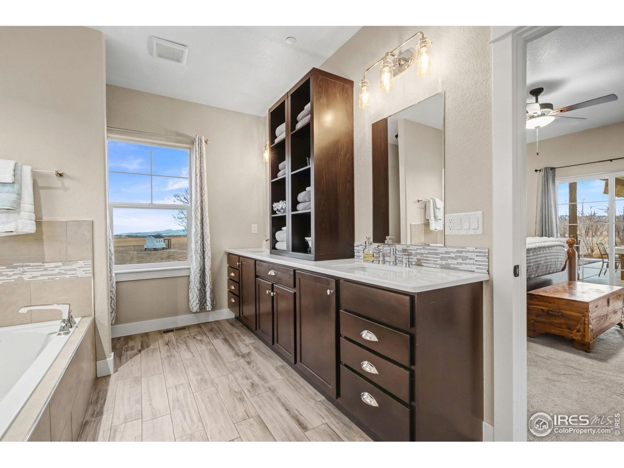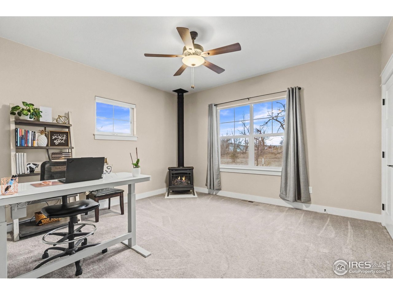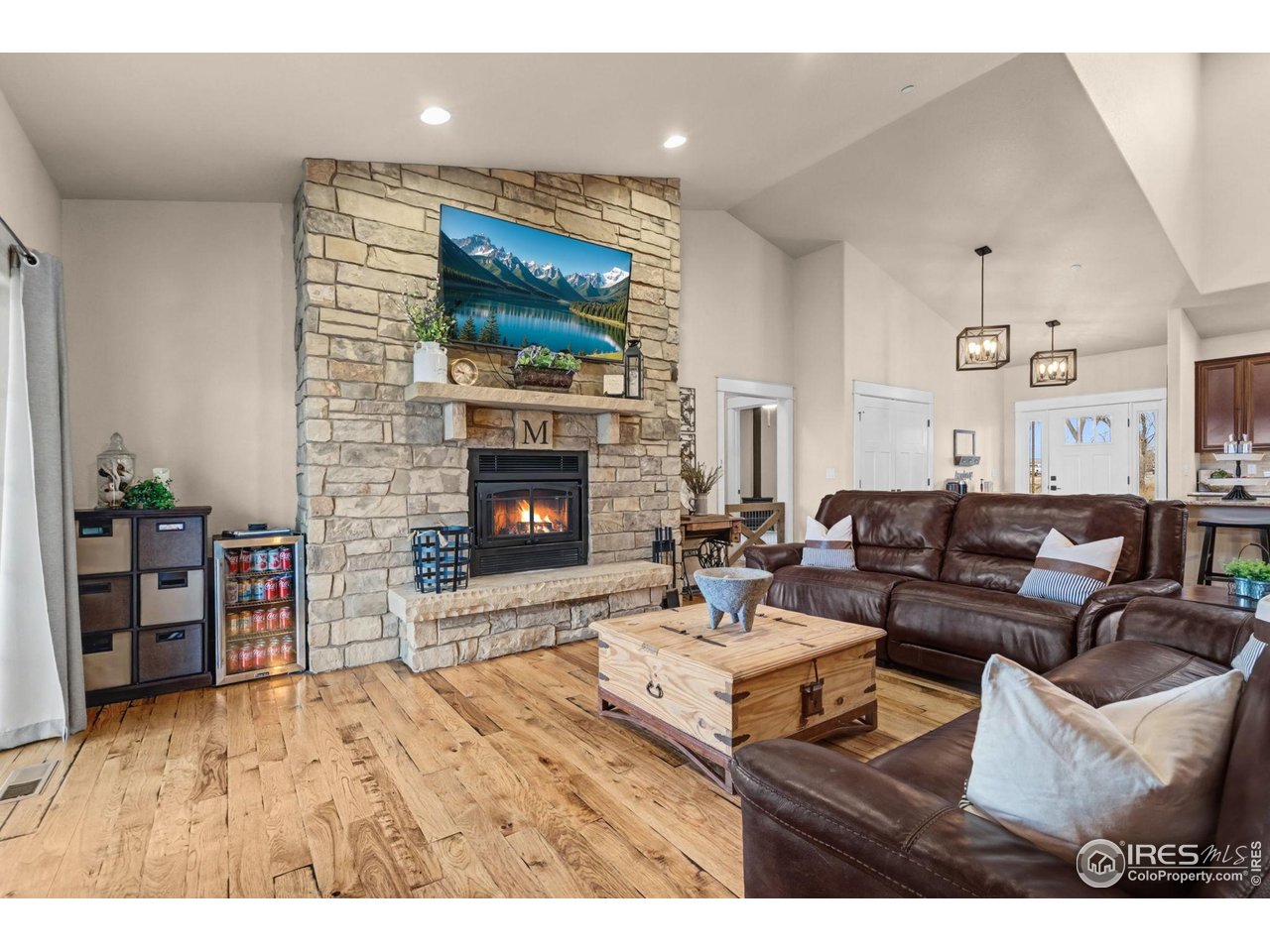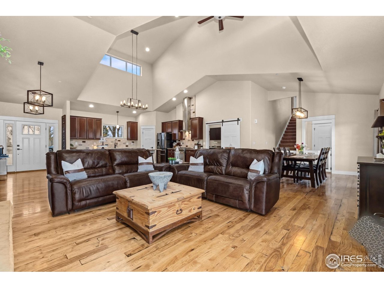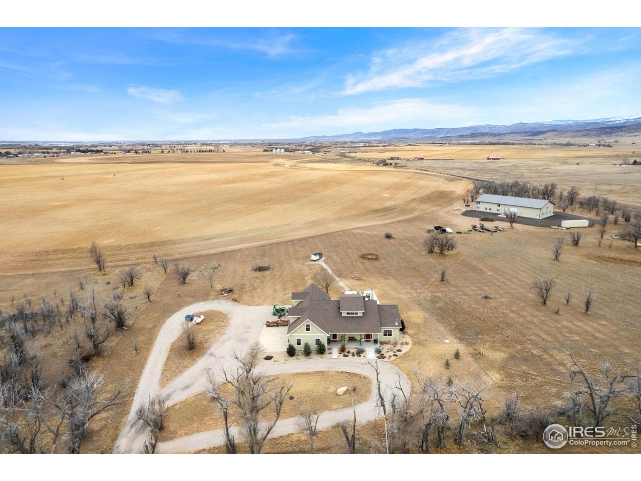 Welcome to 939 W County Road 74 in Wellington - a semi-custom home situated on 3.36 acres with expansive mountain views and a peaceful rural setting, conveniently located approximately 15 minutes from Wellington and about 20 minutes from downtown Fort Collins. The covered front porch provides a welcoming entrance into a home filled with natural light and thoughtful design. The main level features a wide-open floor plan with soaring ceilings throughout the kitchen, dining area, and family room, creating a bright and spacious atmosphere. The kitchen is well-appointed with a large island, stainless steel appliances, and a gas range, offering generous space for meal preparation and gathering. The dining area flows seamlessly from the kitchen, and the family room centers around a beautiful wood burning fireplace. A barn door off the kitchen leads to a combined mudroom and laundry room, which also offers a separate entrance from the covered front porch for added convenience. The primary bedroom is located on the main level and includes sliding glass doors that open to the covered back patio. The en-suite bathroom features a soaking tub, a large walk-in shower with built-in seating, and a spacious walk-in closet. Two additional bedrooms and a full bathroom complete the main floor. Upstairs, two additional bedrooms are connected by a Jack-and-Jill bathroom, providing flexible living arrangements. The backyard includes a large patio, partially covered, with an amazing built-in kitchen and gas fire pit. The outdoor spaces are positioned to take advantage of the surrounding mountain views and open landscape. An oversized three-car garage offers ample room for vehicles and storage. This home combines modern features, open space, and convenient access to nearby amenities in a desirable Northern Colorado location.